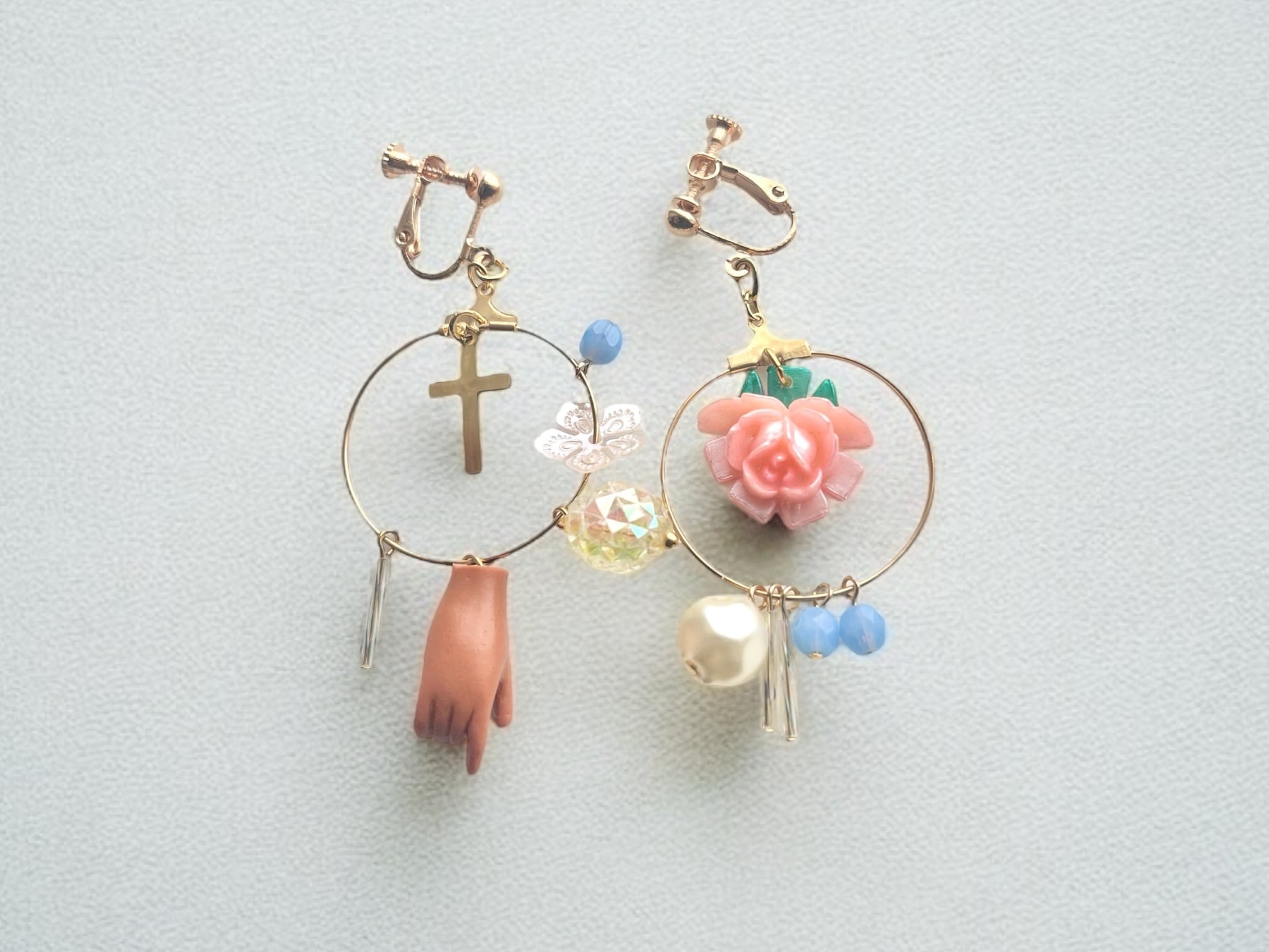バラやキラキラビーズ、お手手に十字架