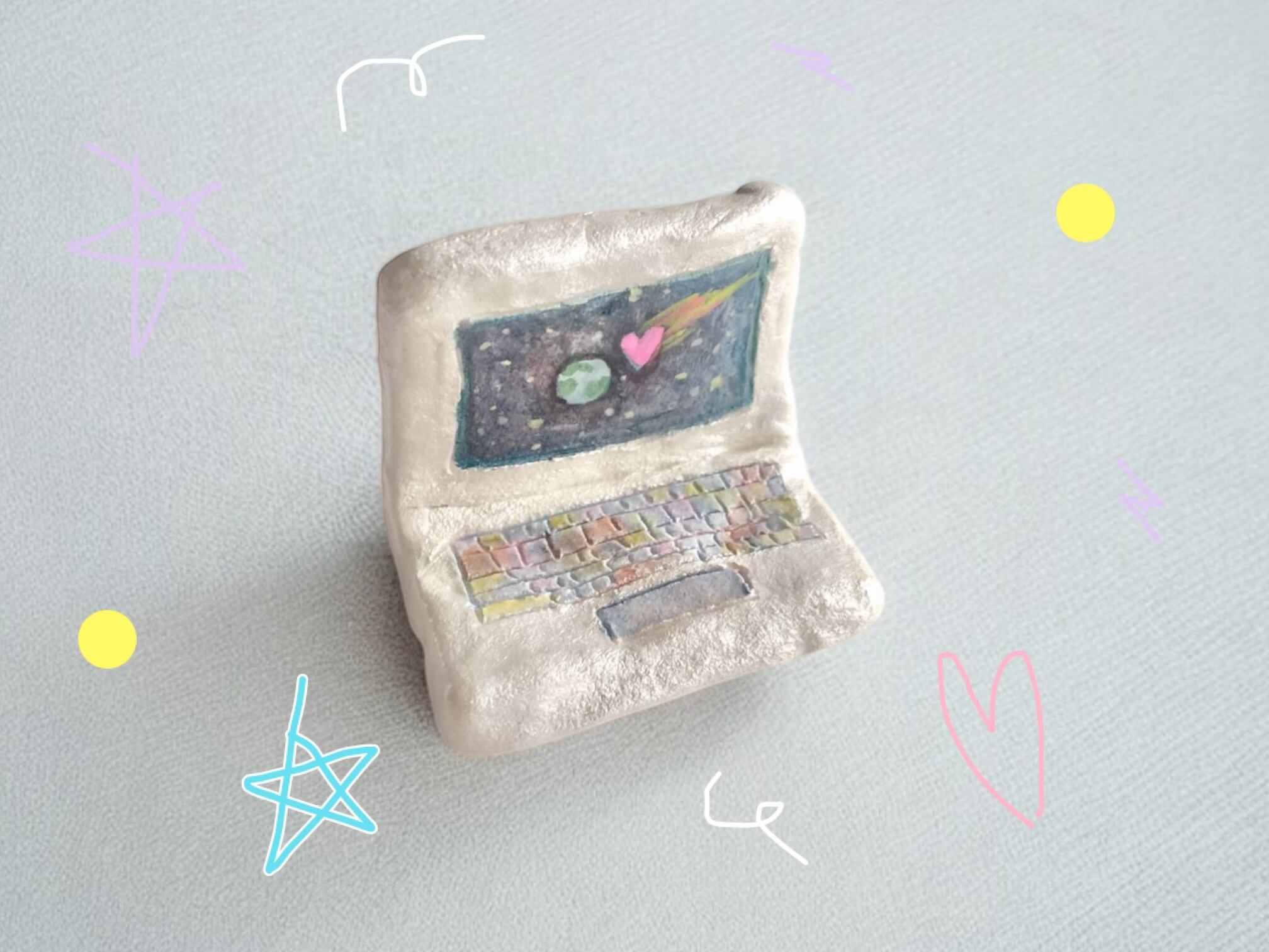 ハートの隕石が接近中のパソコンのミニチュアです。