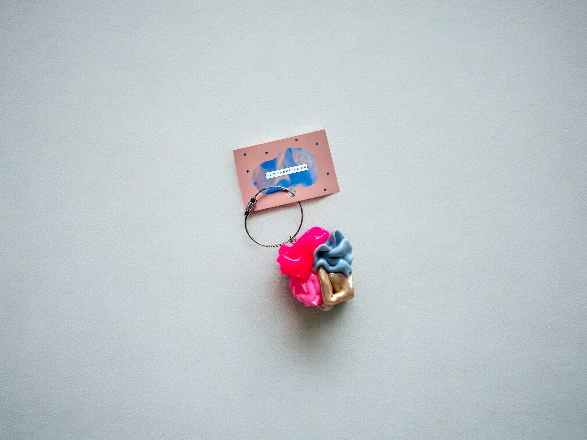 ネオンピンク、ピンク、水色、ゴールドのおしゃれな組み合わせ