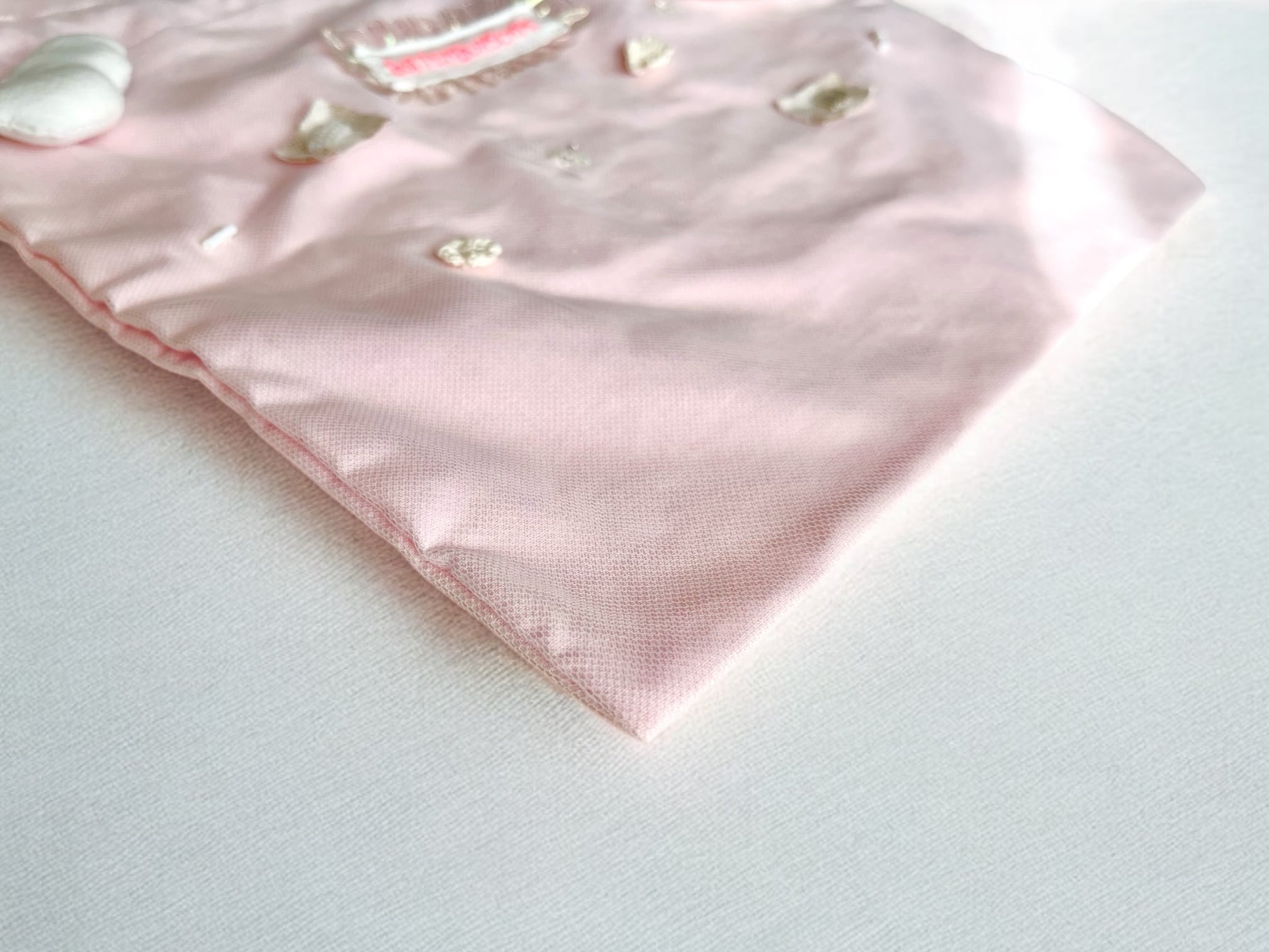 淡いピンクのkumoネーム巾着