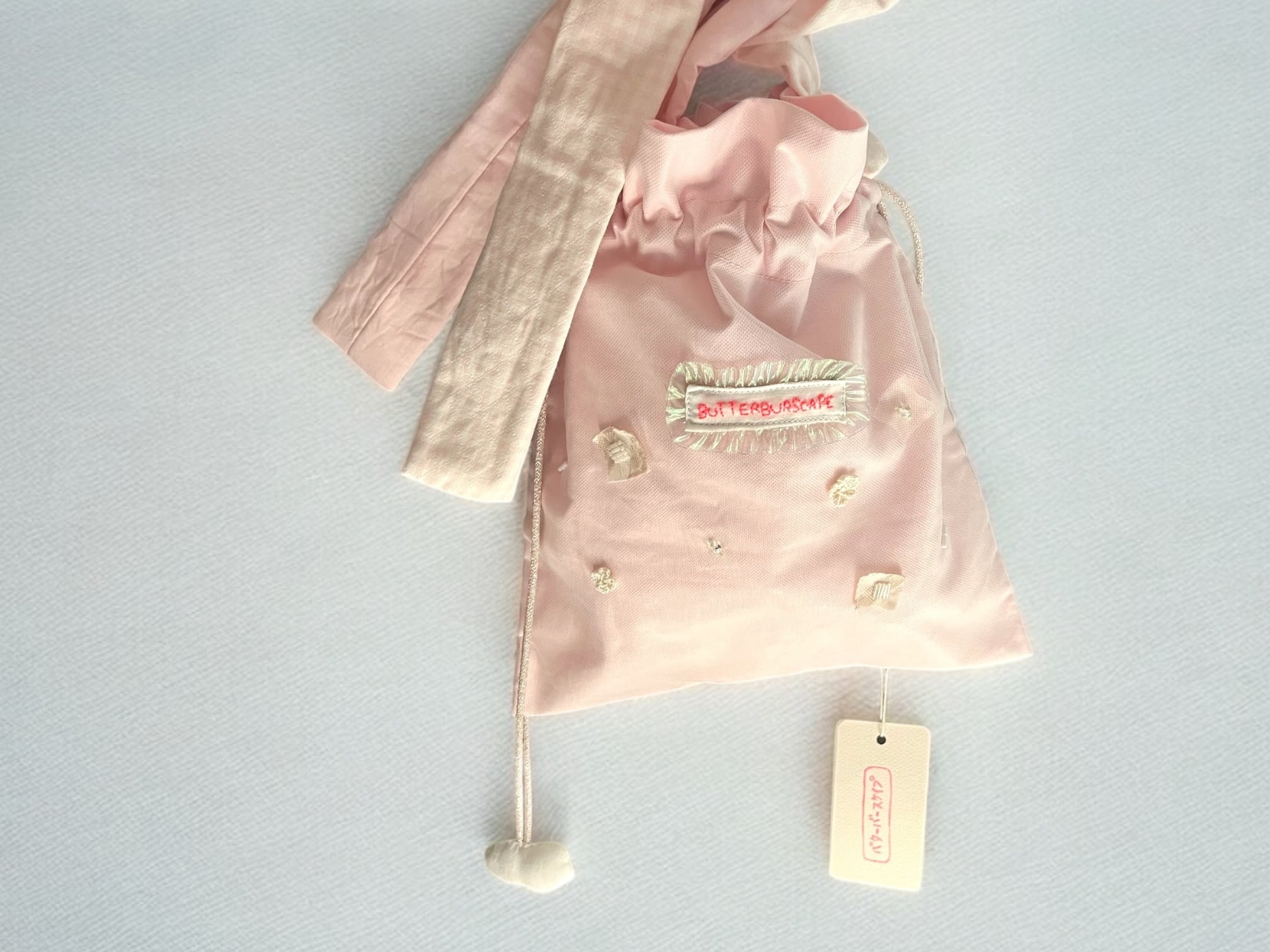 キラキラのオーロラタグにピンクのBUTTERBURSCAPE