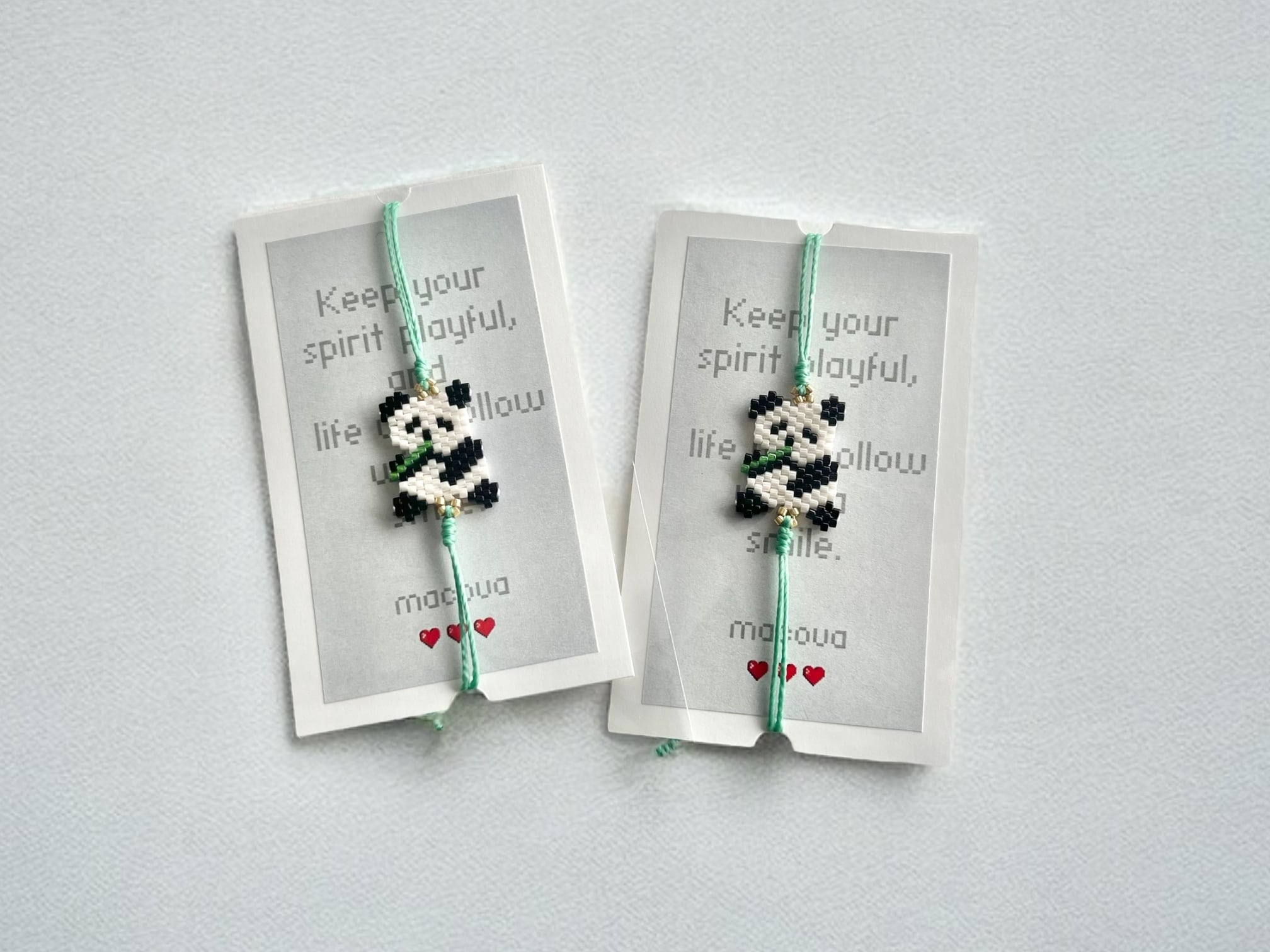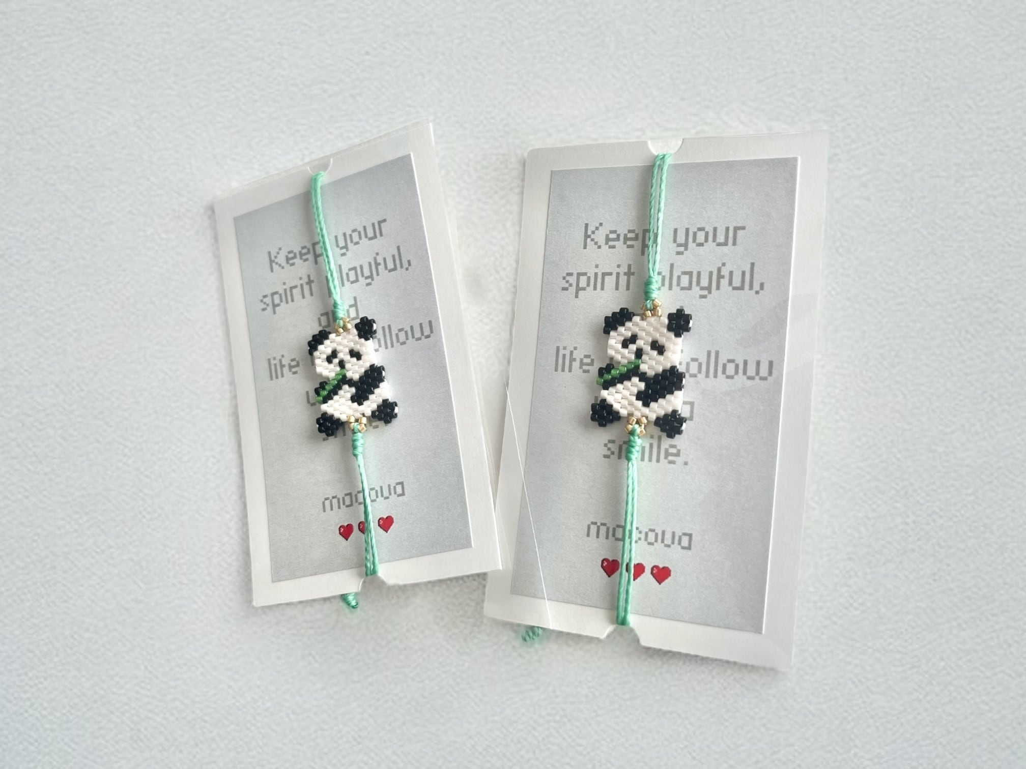 macovaさんの作る、小さなビーズのパンダのブレスレット
