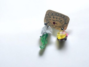きらきらしたたつのおとしごとお魚さんの組み合わせがかわいいピアスです。