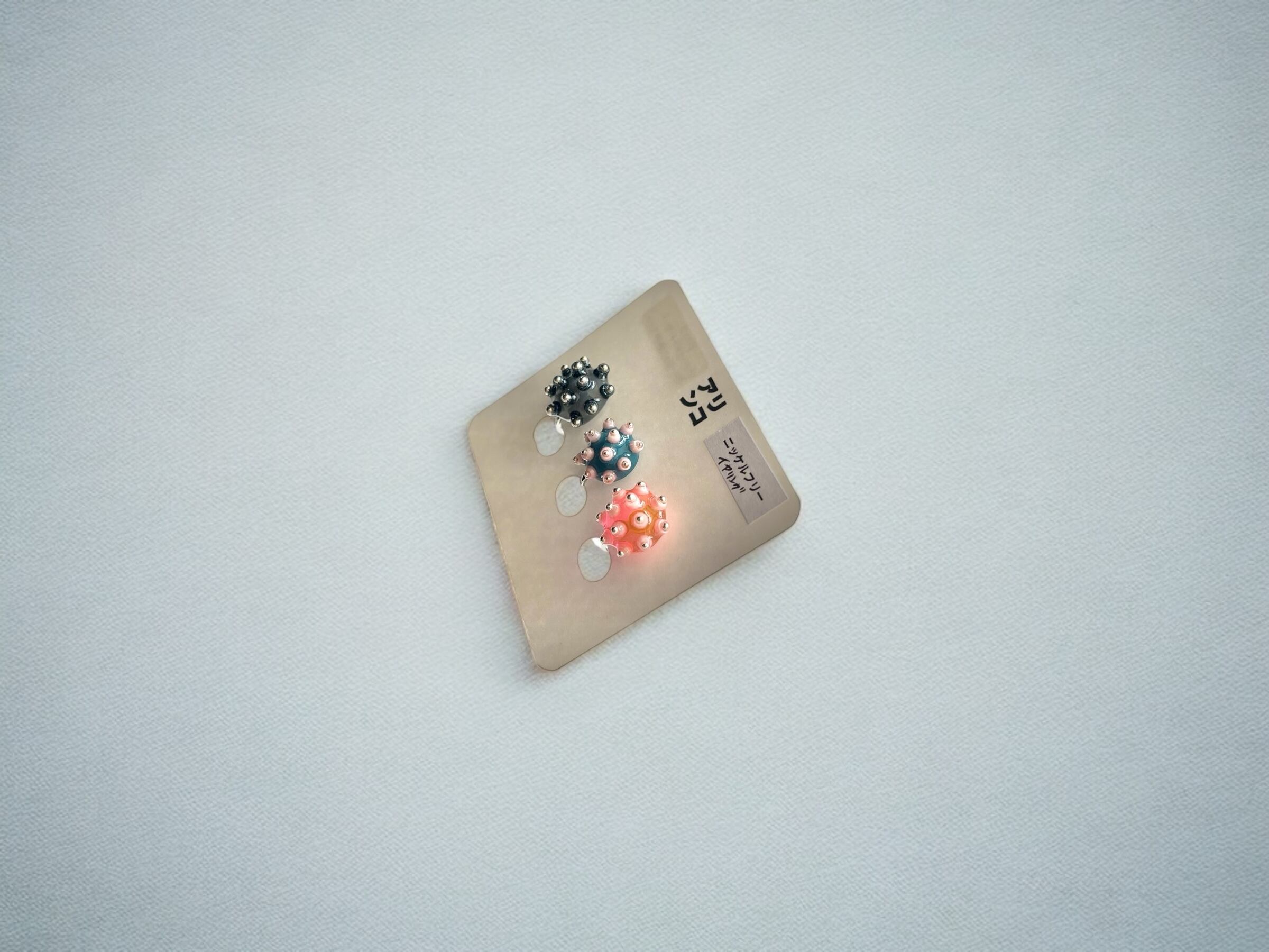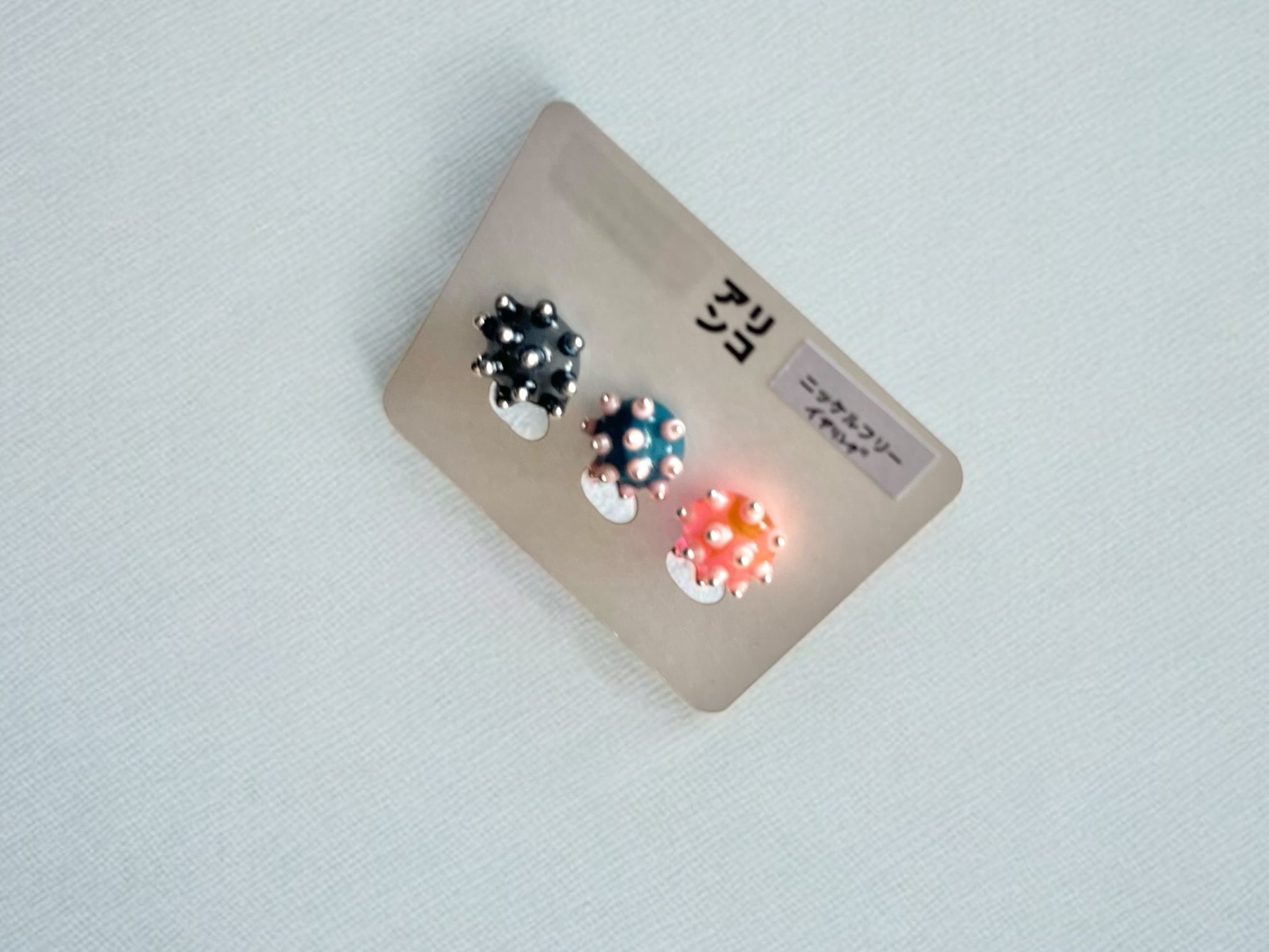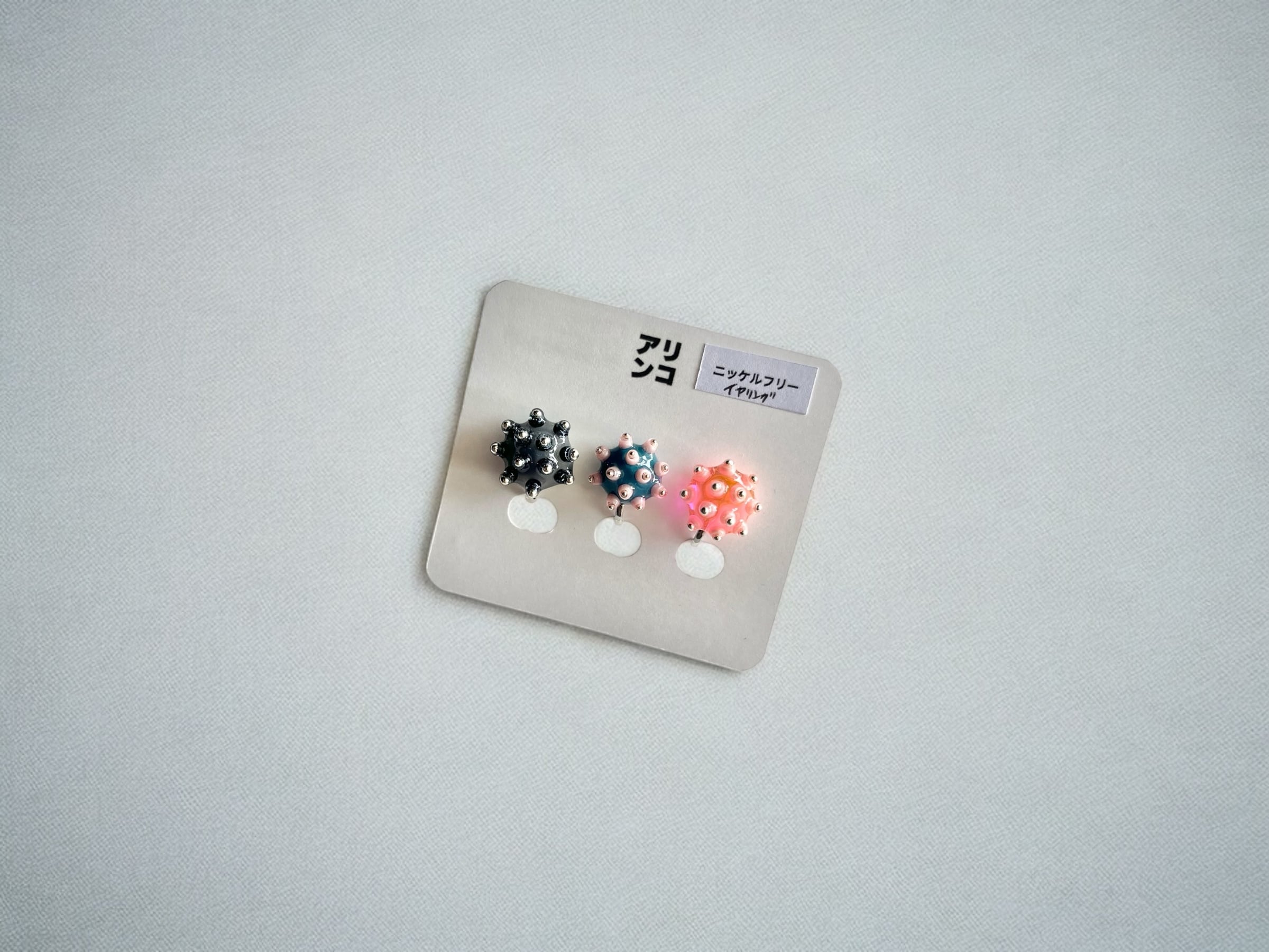 気分によって、色を組み合わせて楽しめるイガイガイヤリングのセットです。