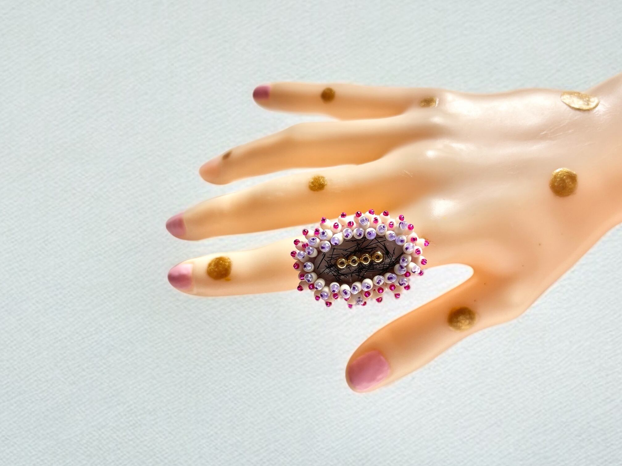 きれいなビーズの刺繍が細かくとてもおしゃれなリングです。