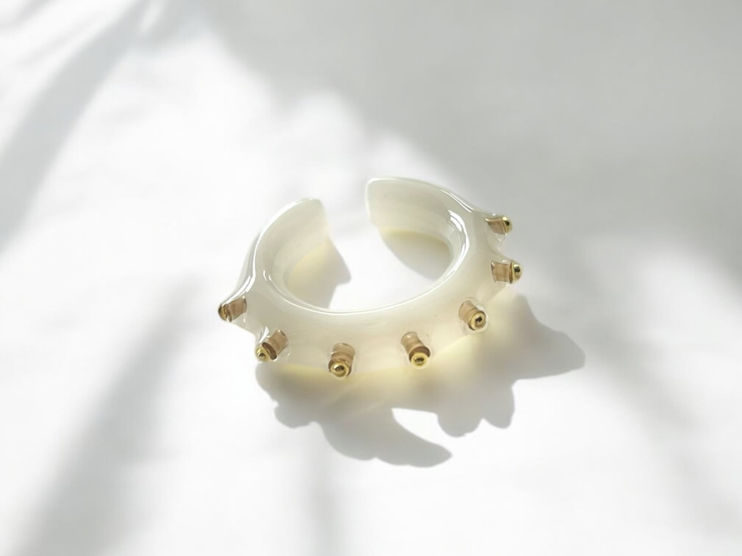 ミルキー色にイガイガの施されたイヤーカフ