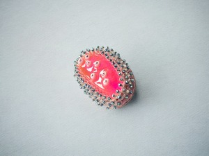 ネオンピンクのクリアカラーが目を引くもじゃ花シリーズのブローチ