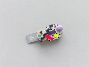 ドットパーツや丸パーツに異形のパーツの組み合わせがとてもユニークなヘアクリップ