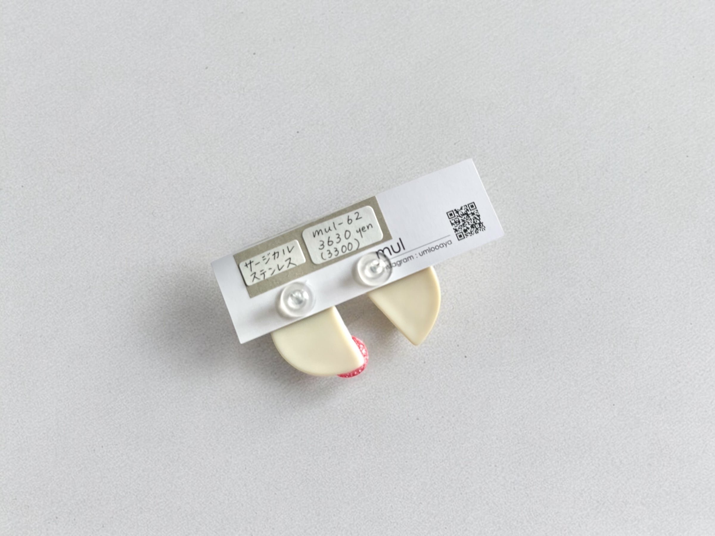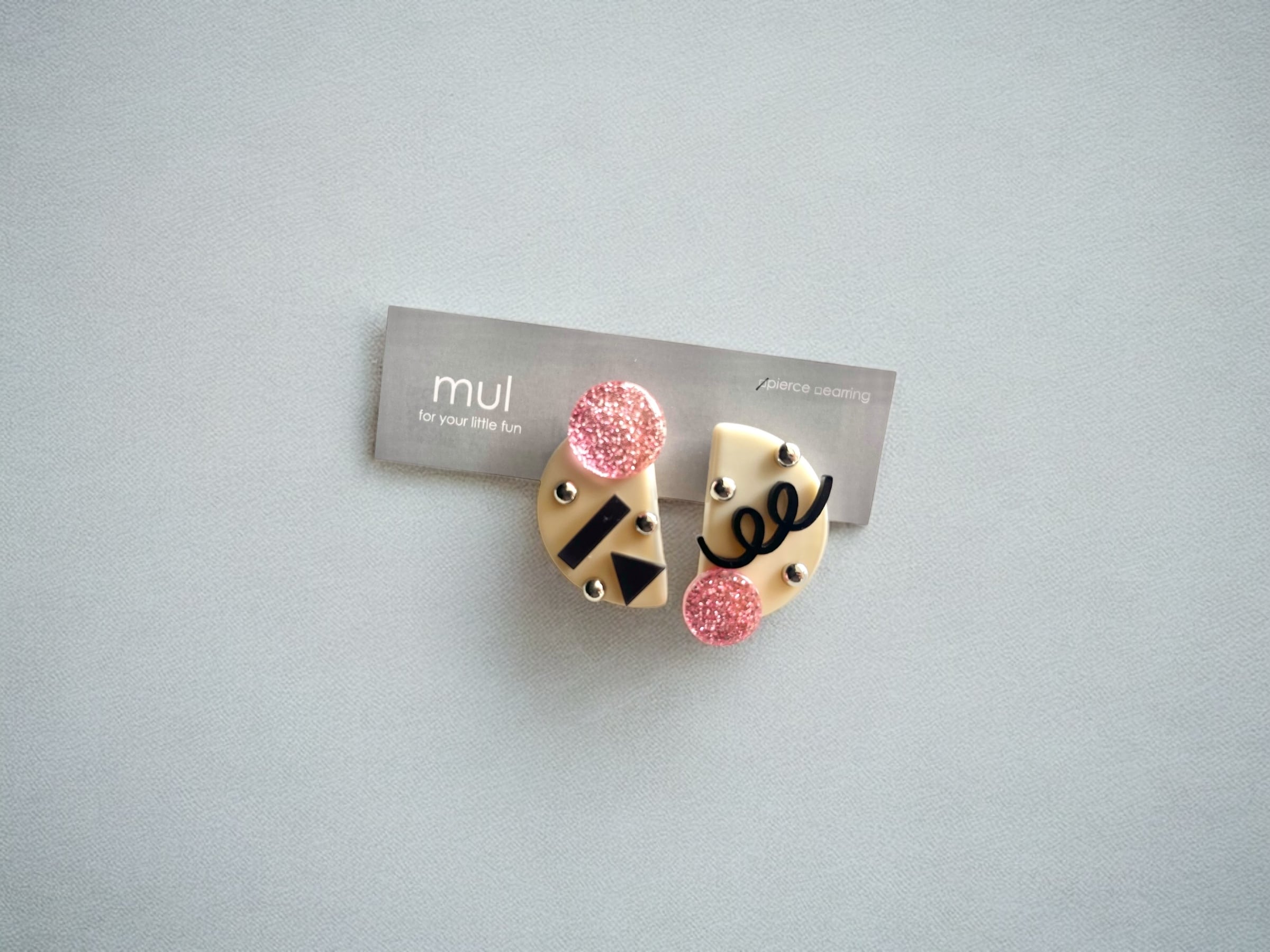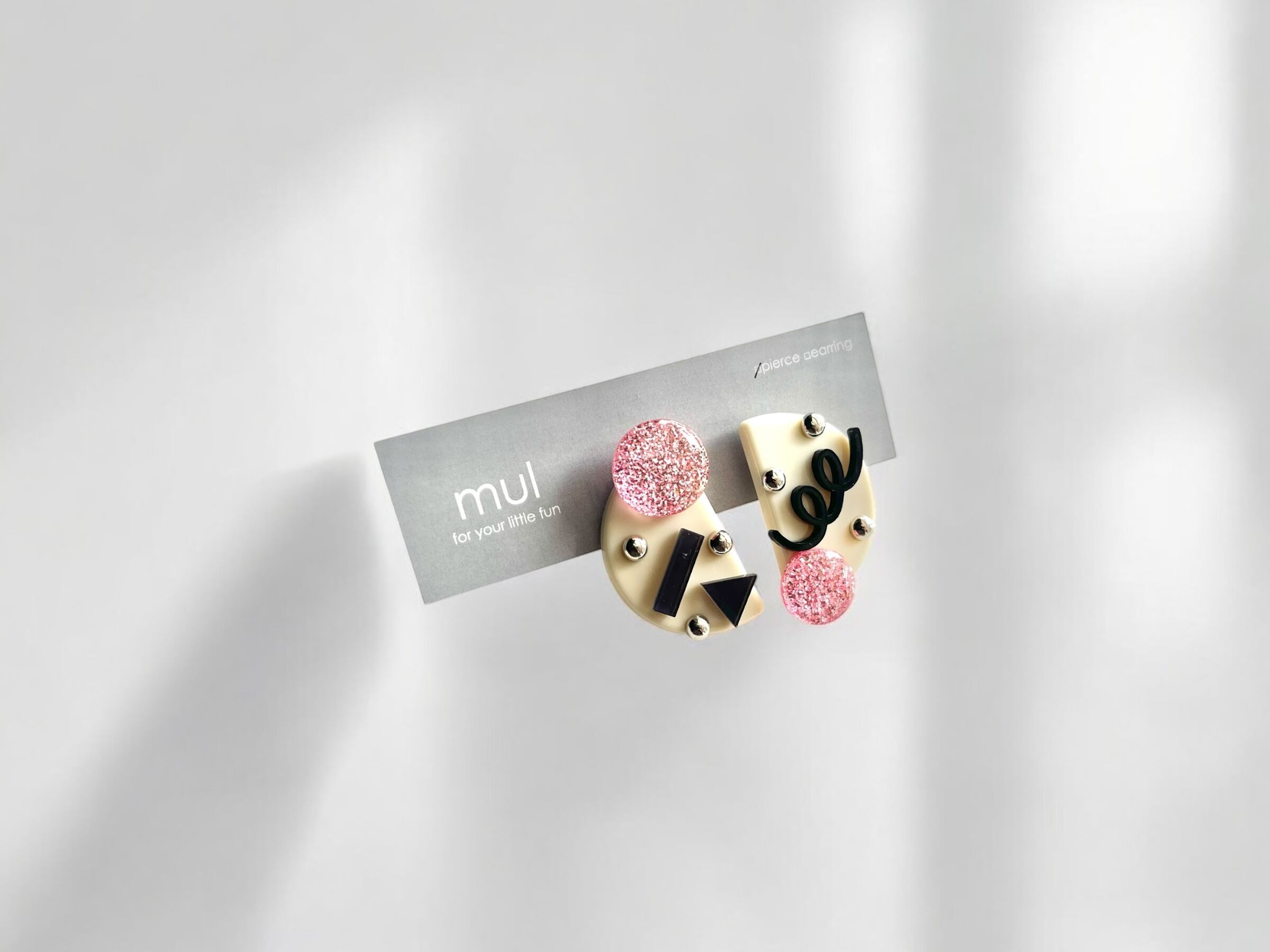 アイボリーの半月にピンクグリッターのまる