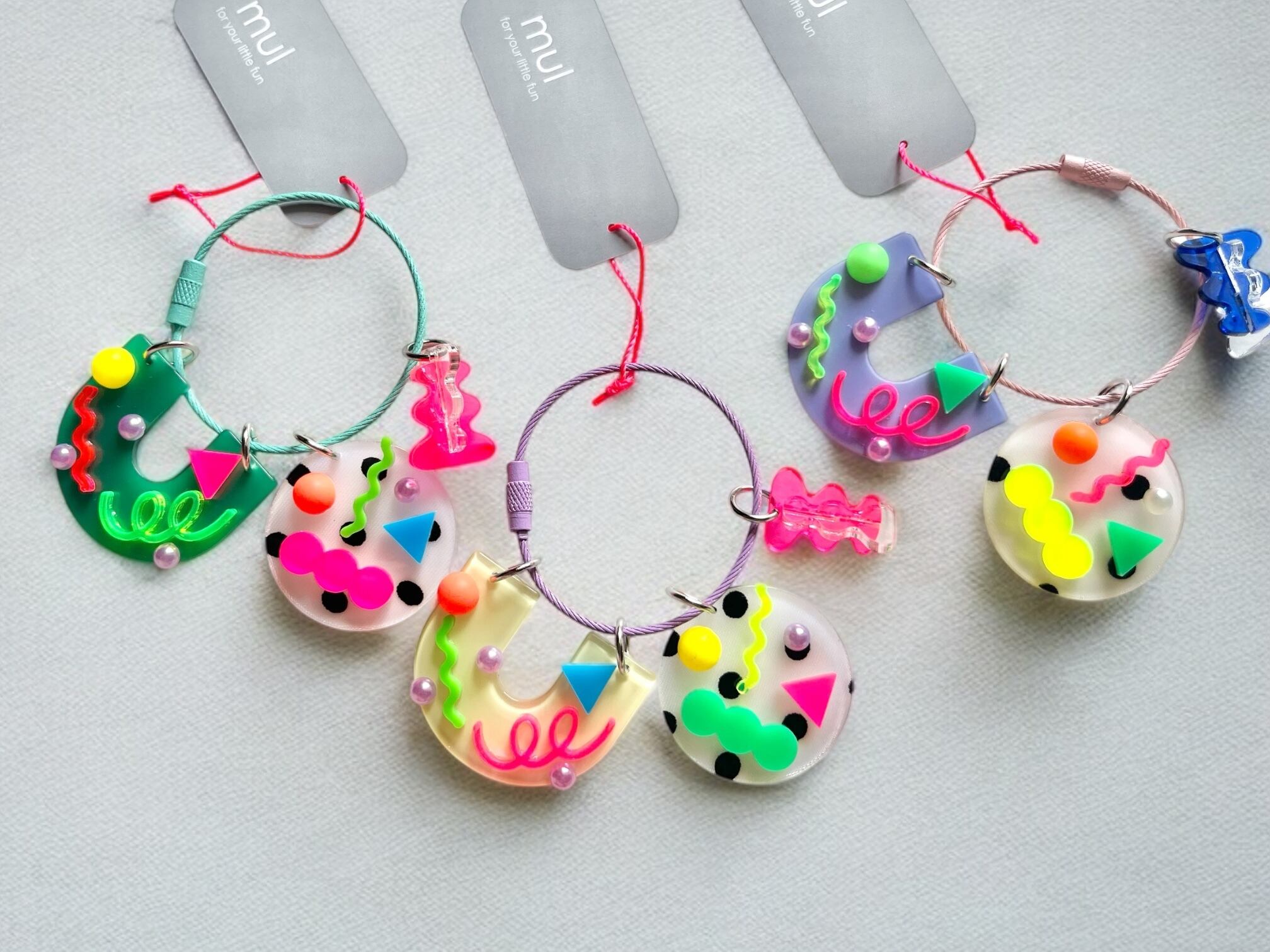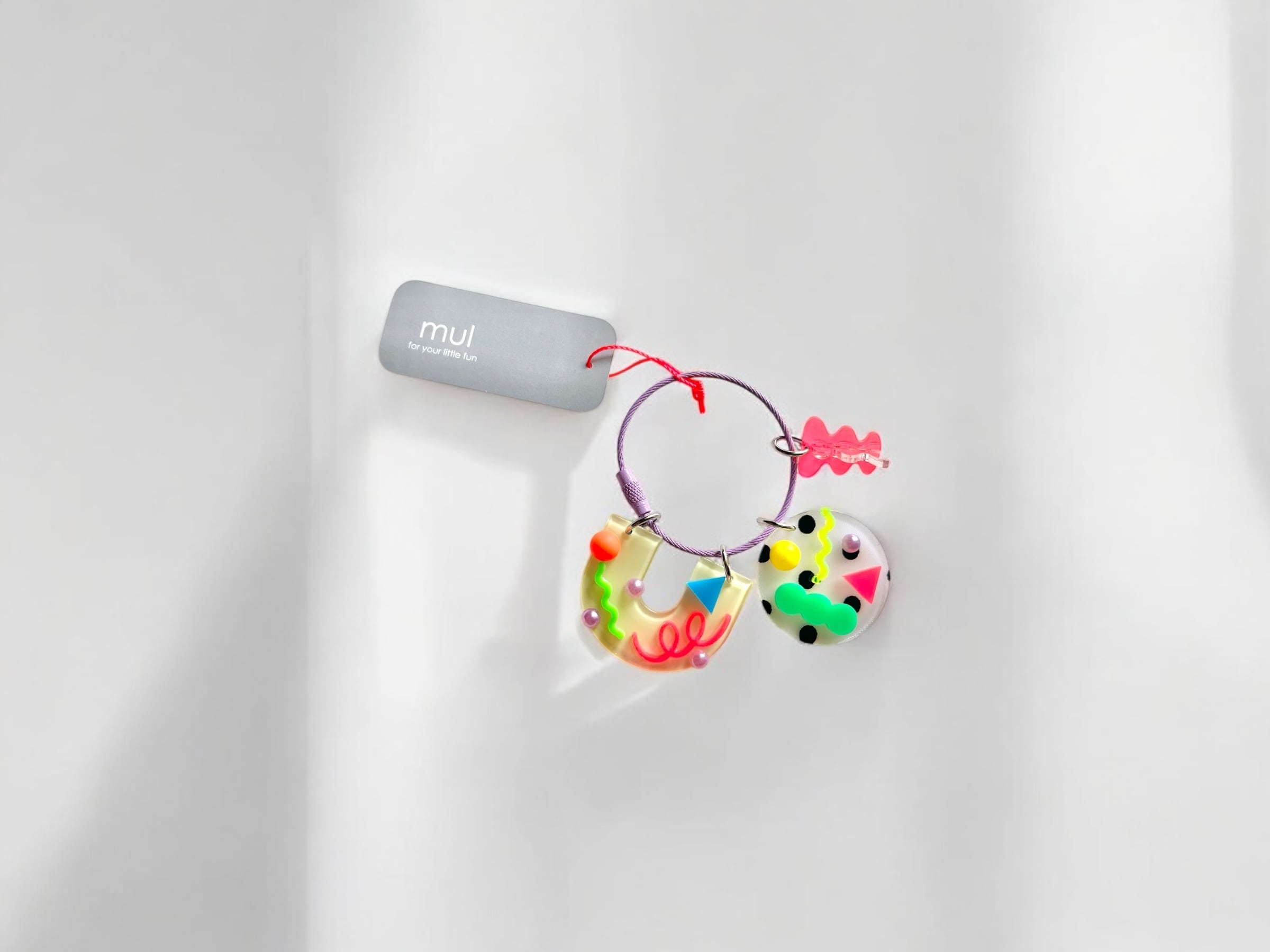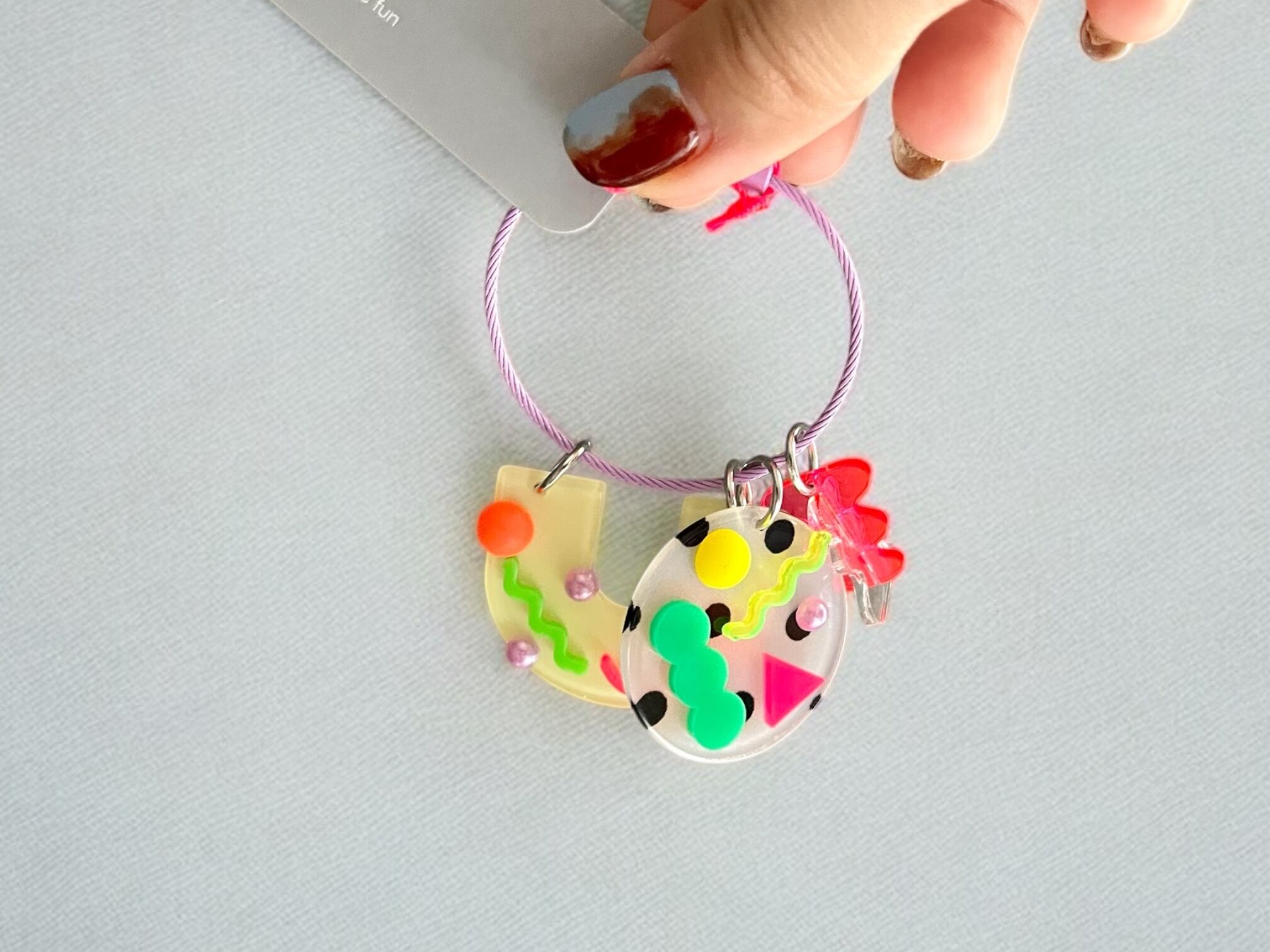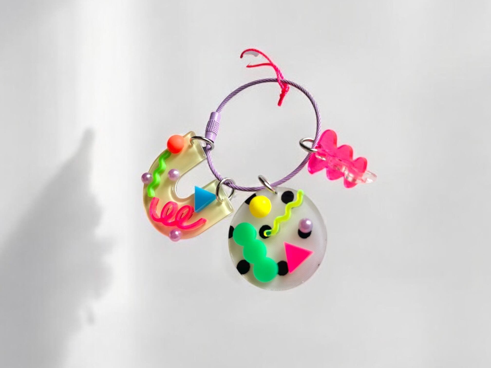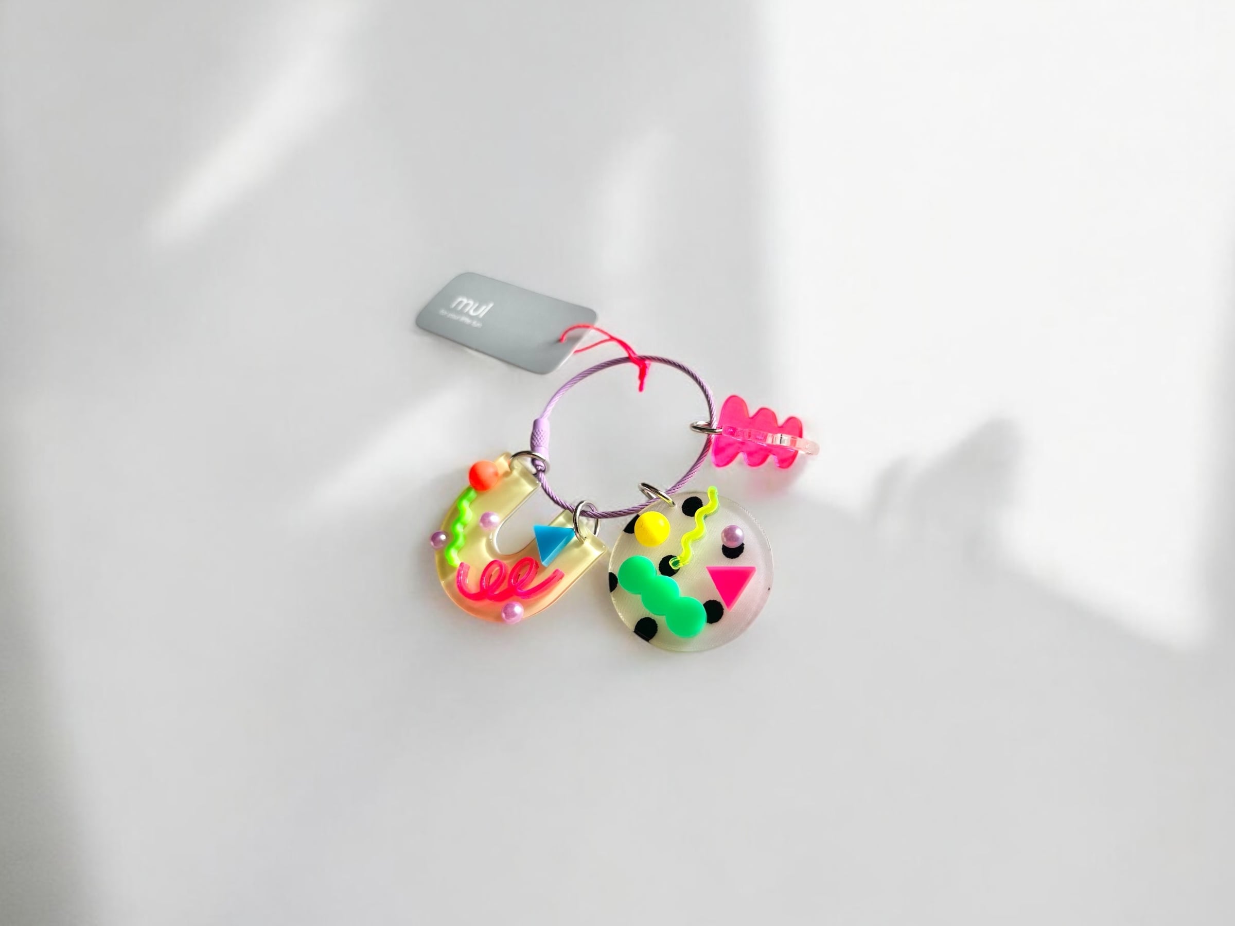 幾何学模様が贅沢に散りばめられたボリューミーなキーチェーンです。