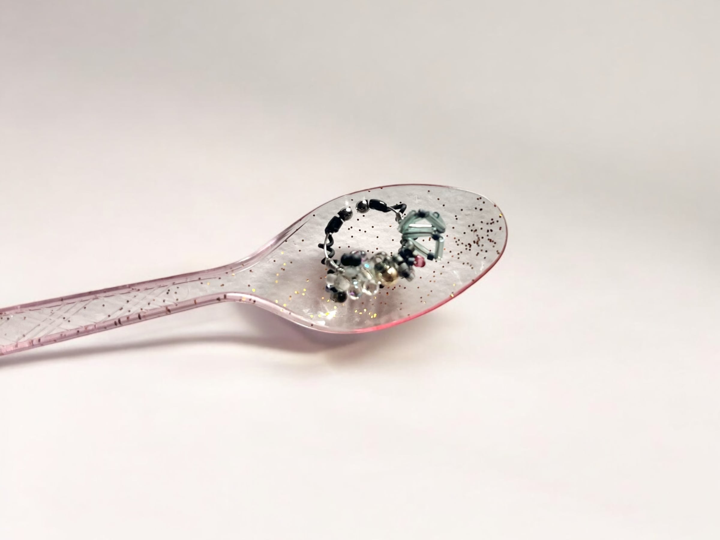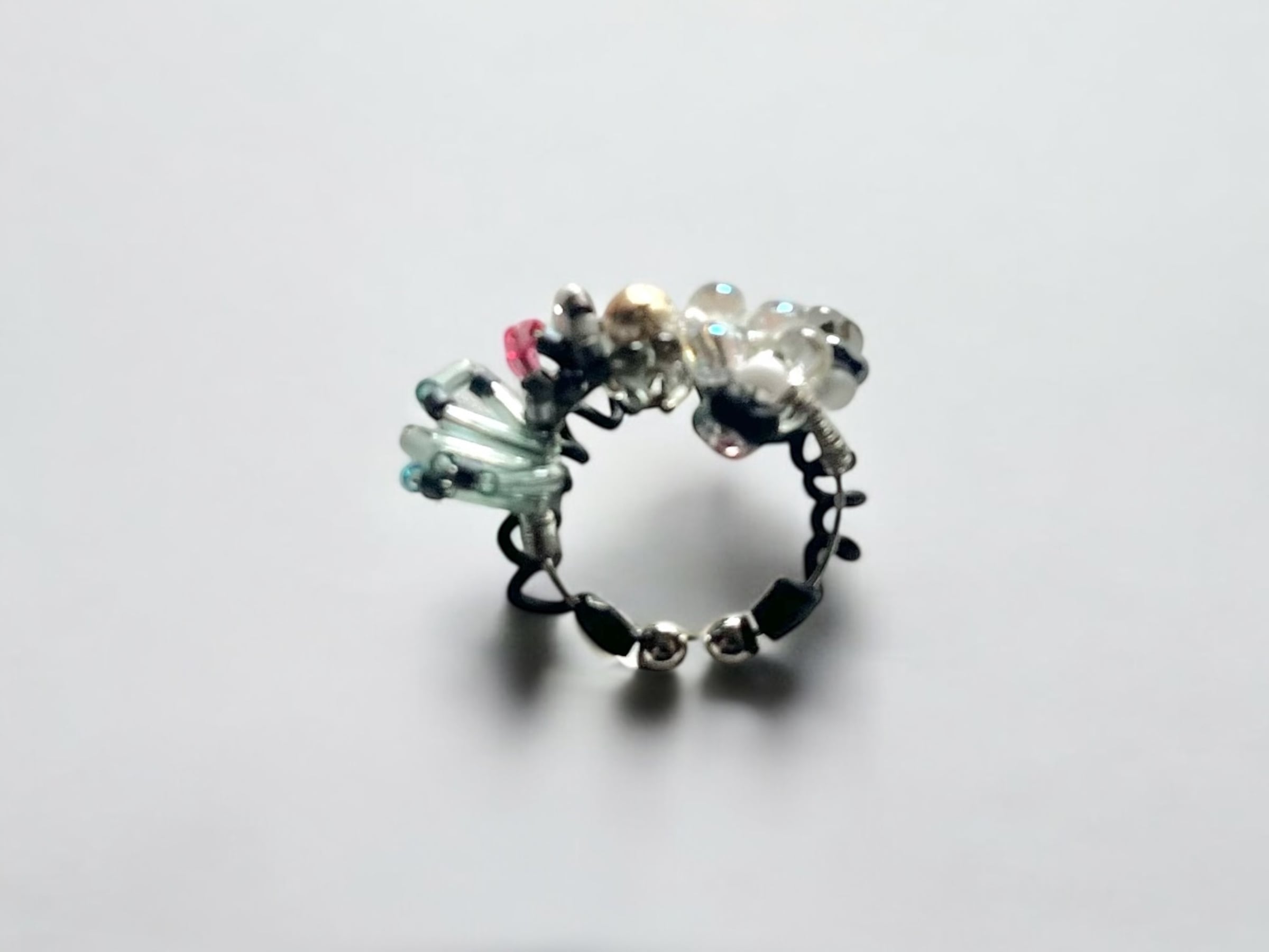 ブラックのくるくるにビーズやスパンコールなどが施されています。