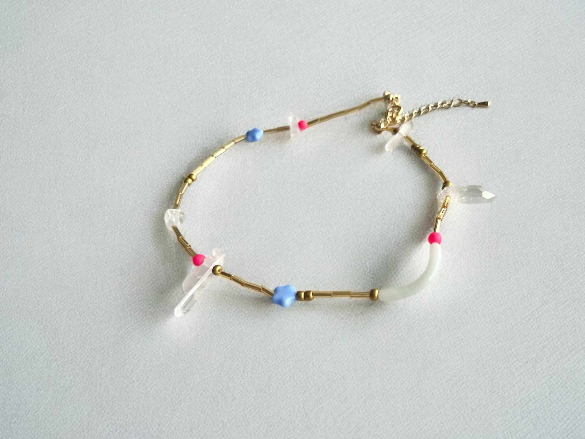 星形のガラスビーズ、天然石、ヴィンテージガラスビーズなどの組み合わせの短めのチョーカー
