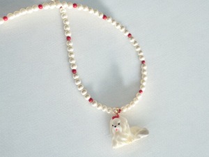 可愛らしいマルチーズとホワイト、イエローパールの組み合わせ