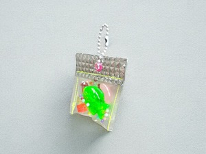 お魚のジャンボビーズにジェリーピンズや雫パーツが入ってます。