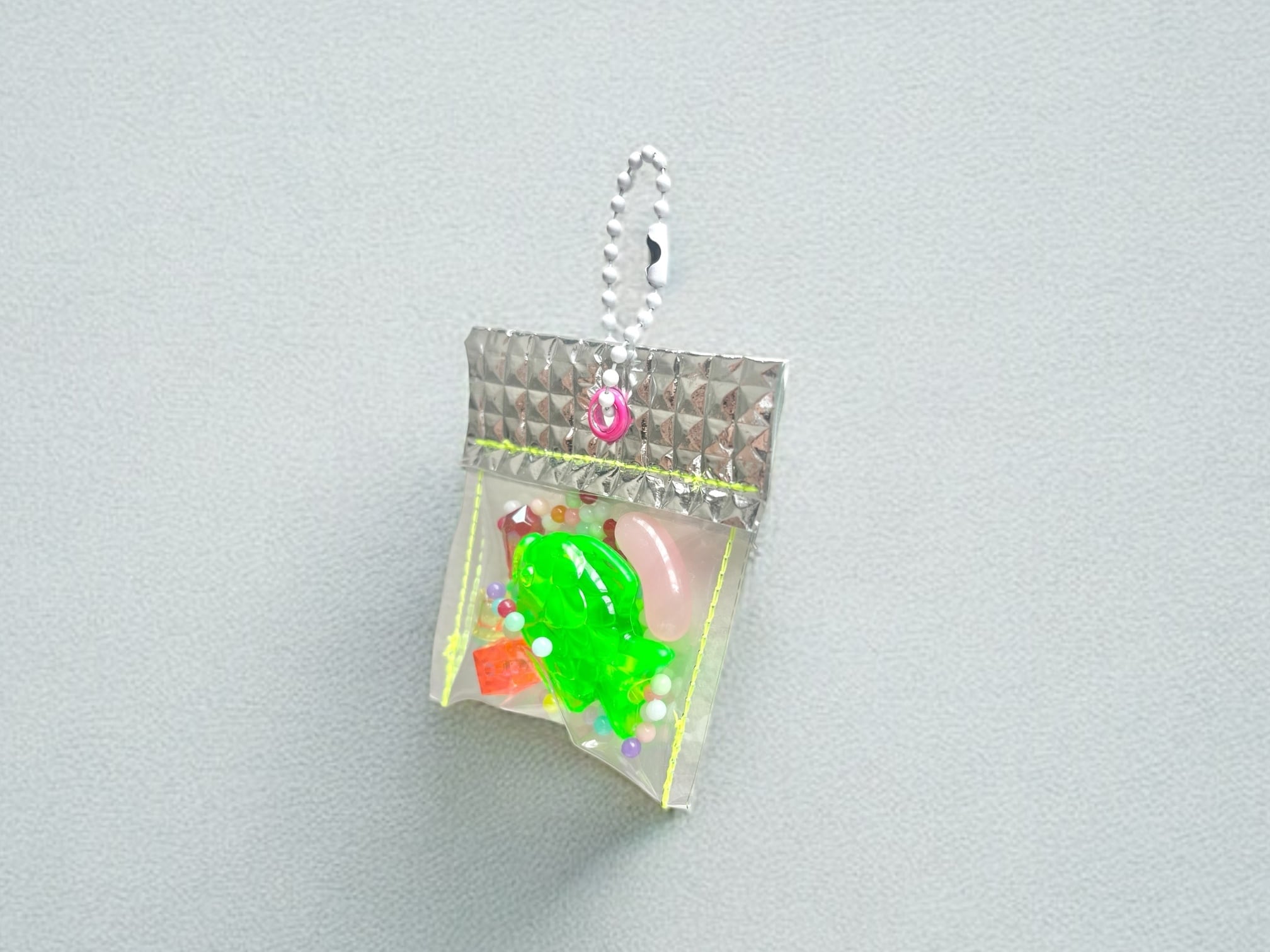 レトロ感のあるカラフルなパーツが閉じ込められたキーホルダー