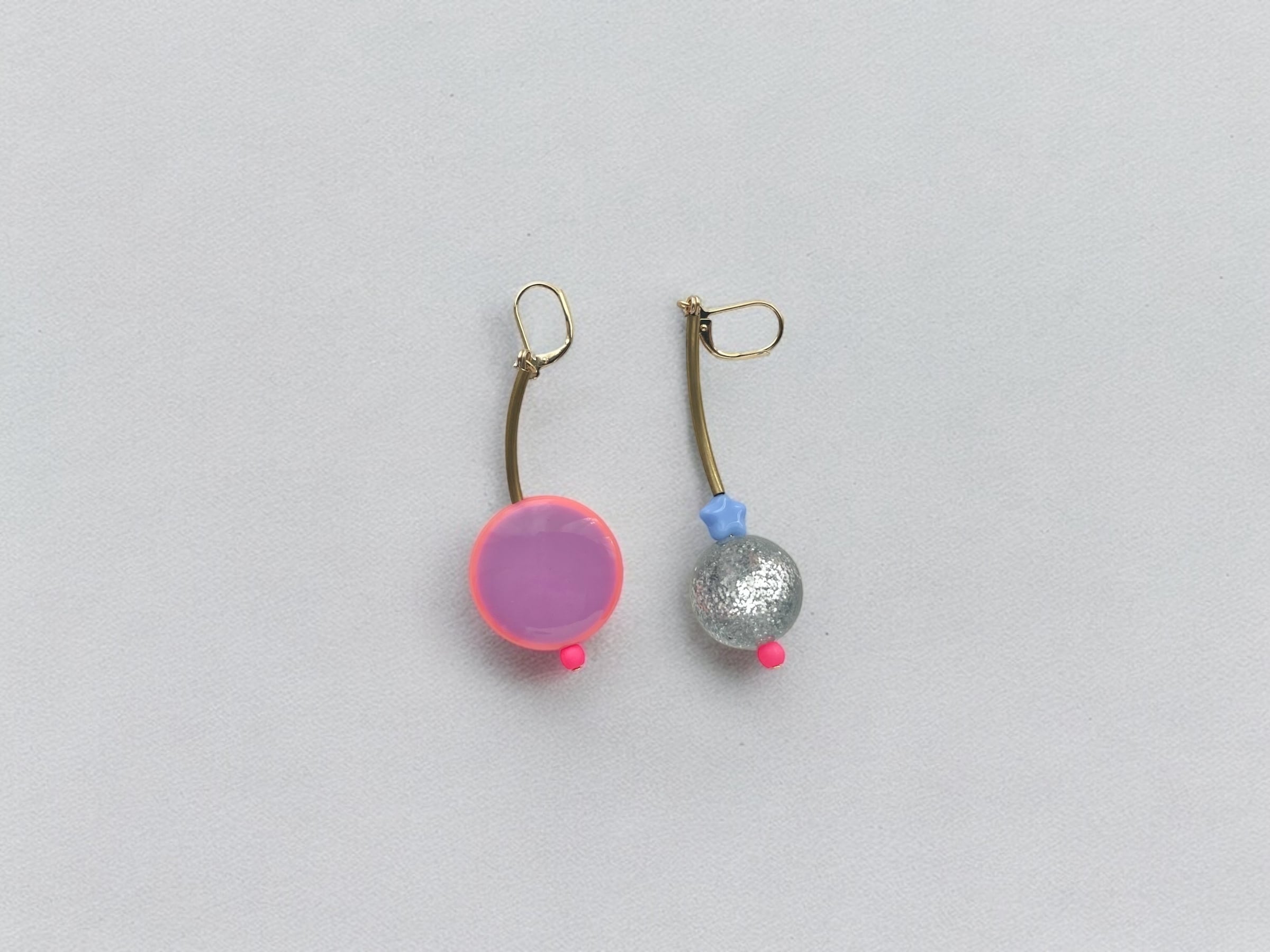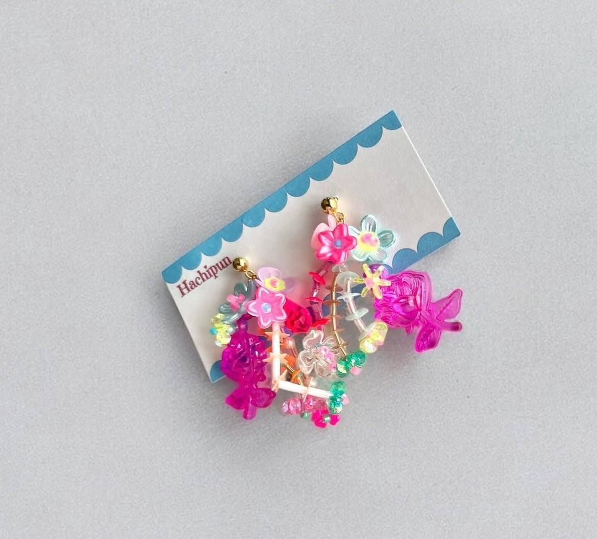 レトロでキッチュでかわいいピアスは商店街によくあるカラフルな飾りのモチーフ