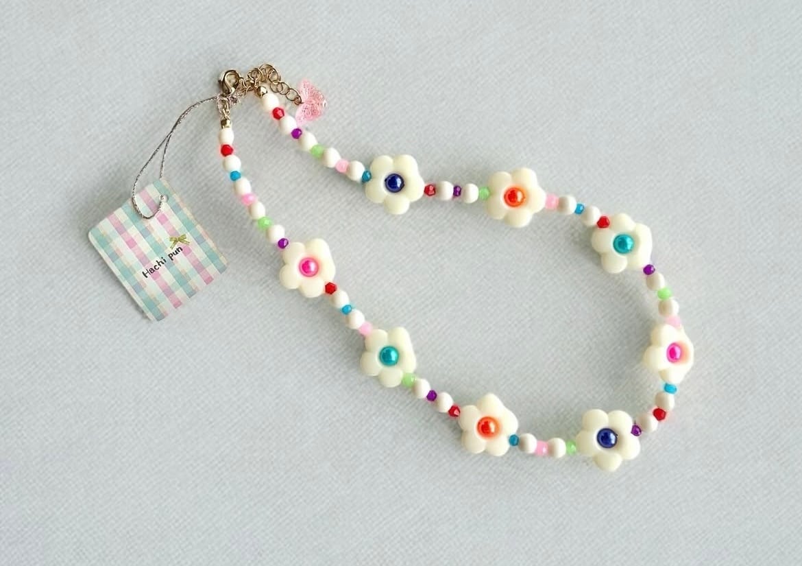 ネオンカラーなどの小さなビーズが並んだかわいいネックカフ