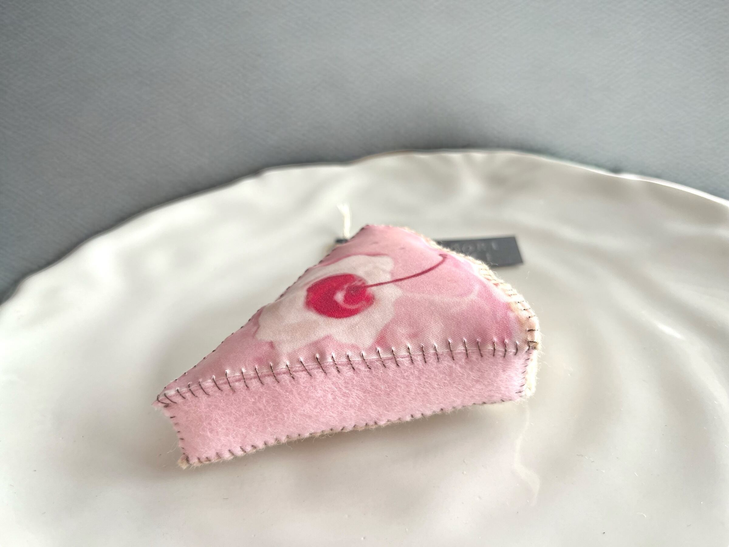 チェリーとホイップクリームの乗ったかわいいピンクケーキのオーナメント
