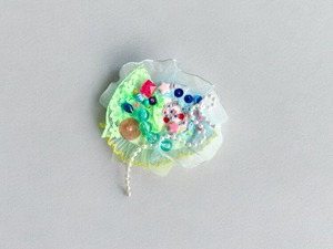 水色、グリーン、イエローと色のグラデーションがかわいいヘアクリップ&ブローチの2wayアイテム
