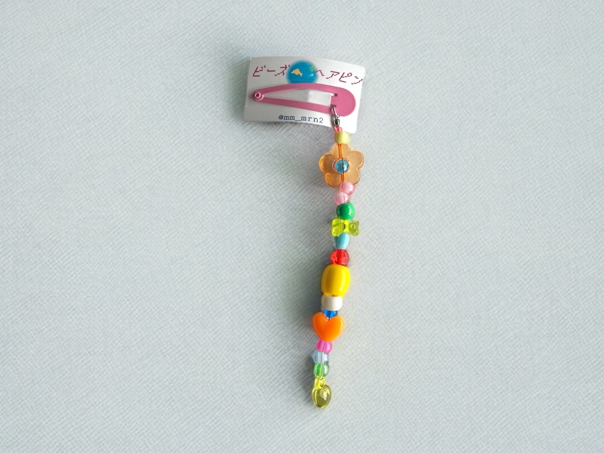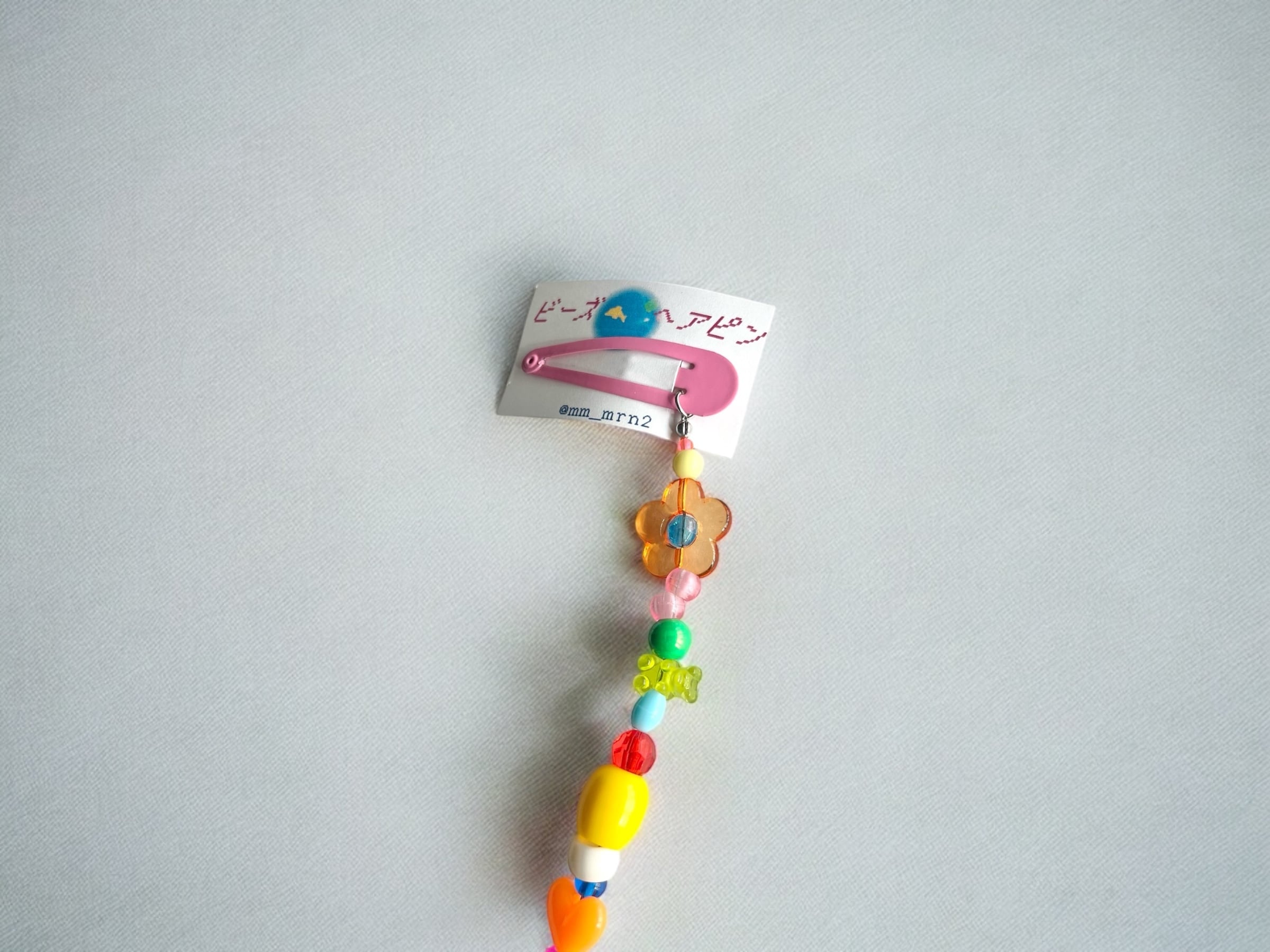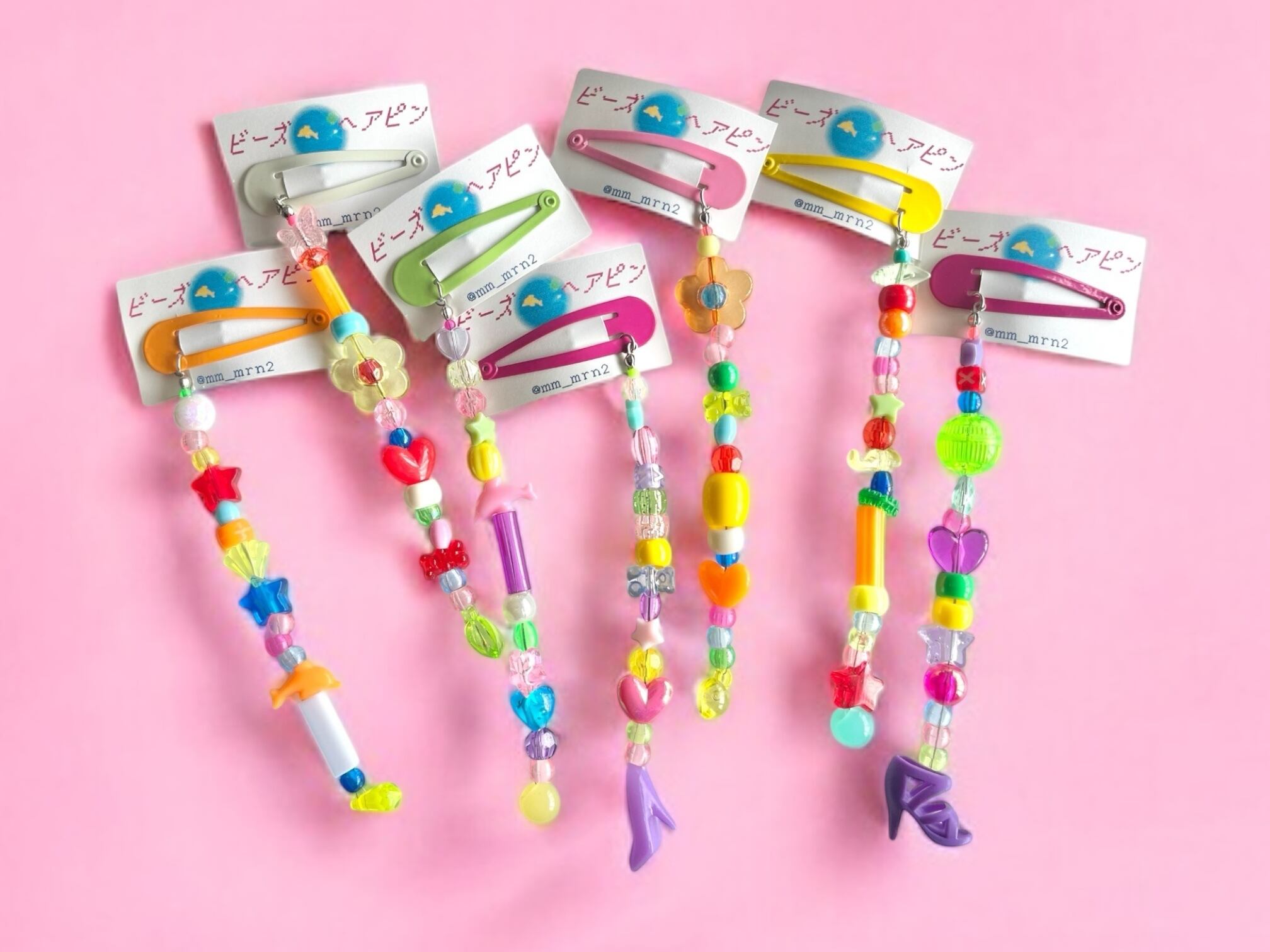 カラフルキッチュなビーズが並んだビーズヘアピン