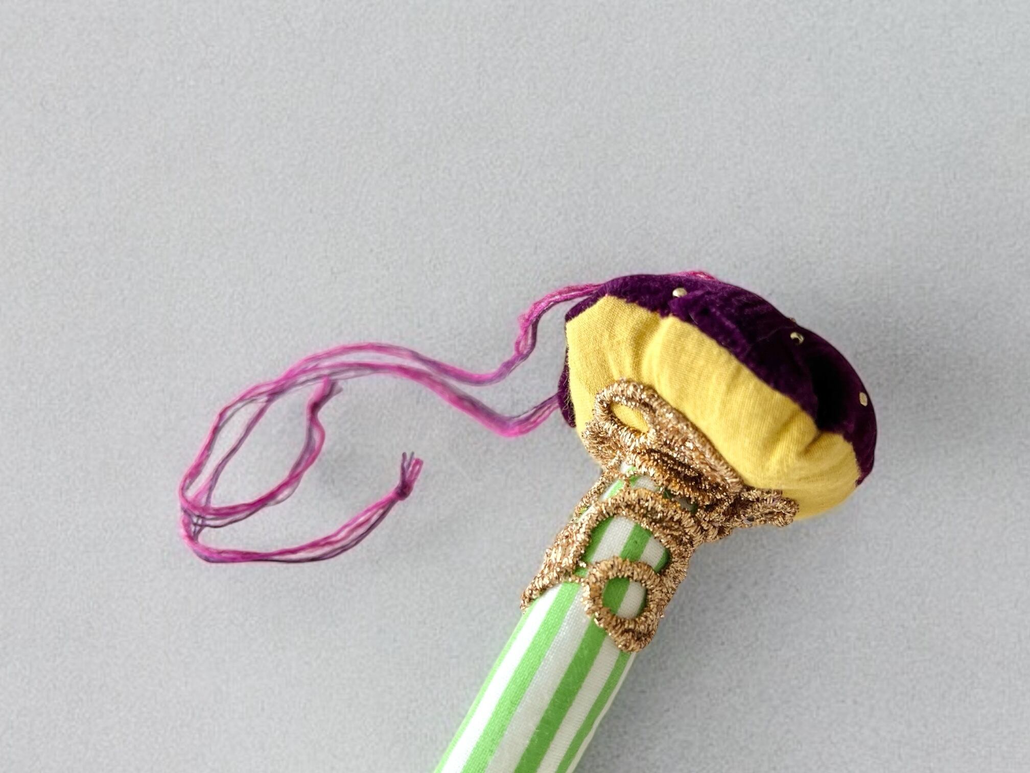 グリーンのストライプの石づきにゴールドが効いてるおしゃれな一点