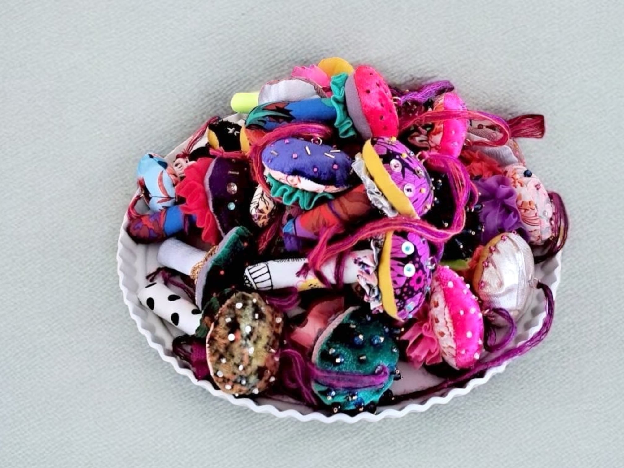 とてもおしゃれなベロア生地に小さなビーズが散りばめられた一点