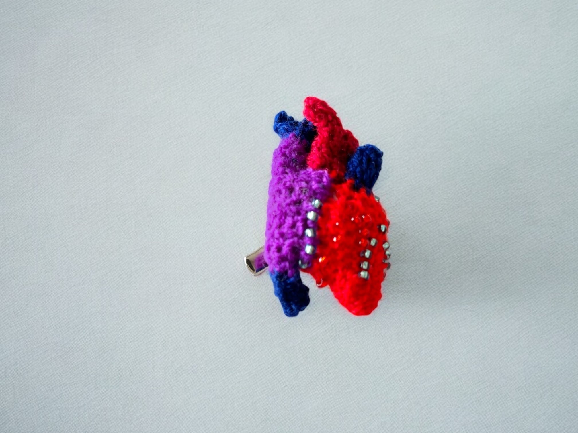ネイビー、レッド、パープルの配色にきらきらとビーズが散りばめられています。