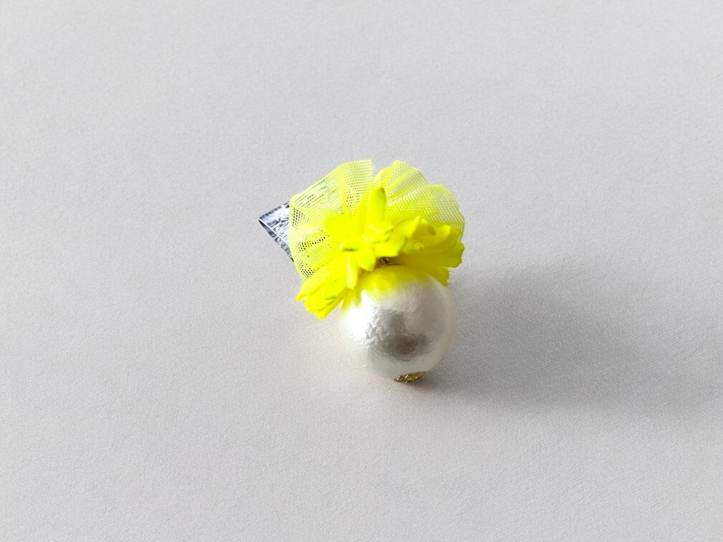 大きなパールとボリューミーなフリル、おしゃれなボタンがかわいいです。
