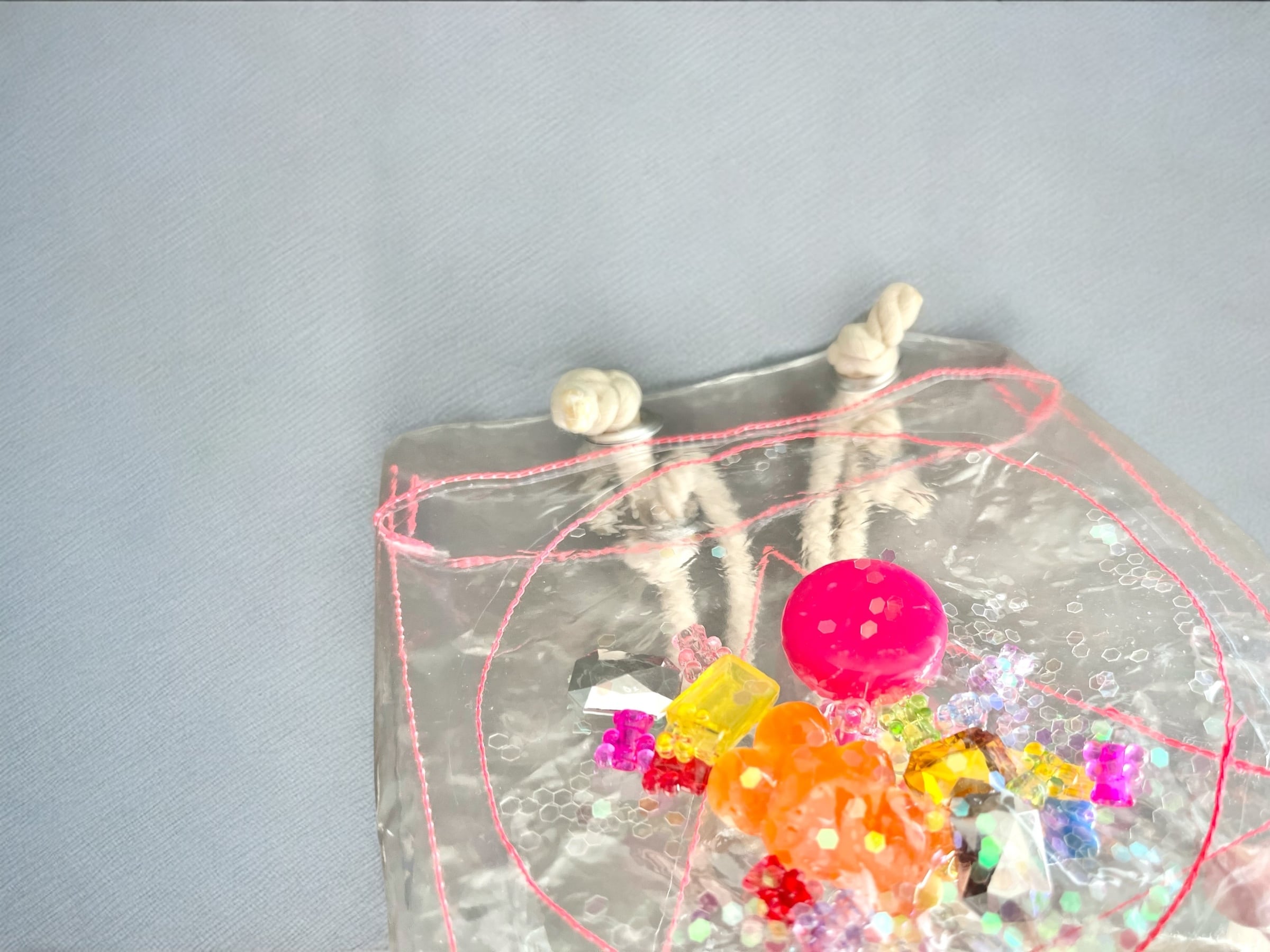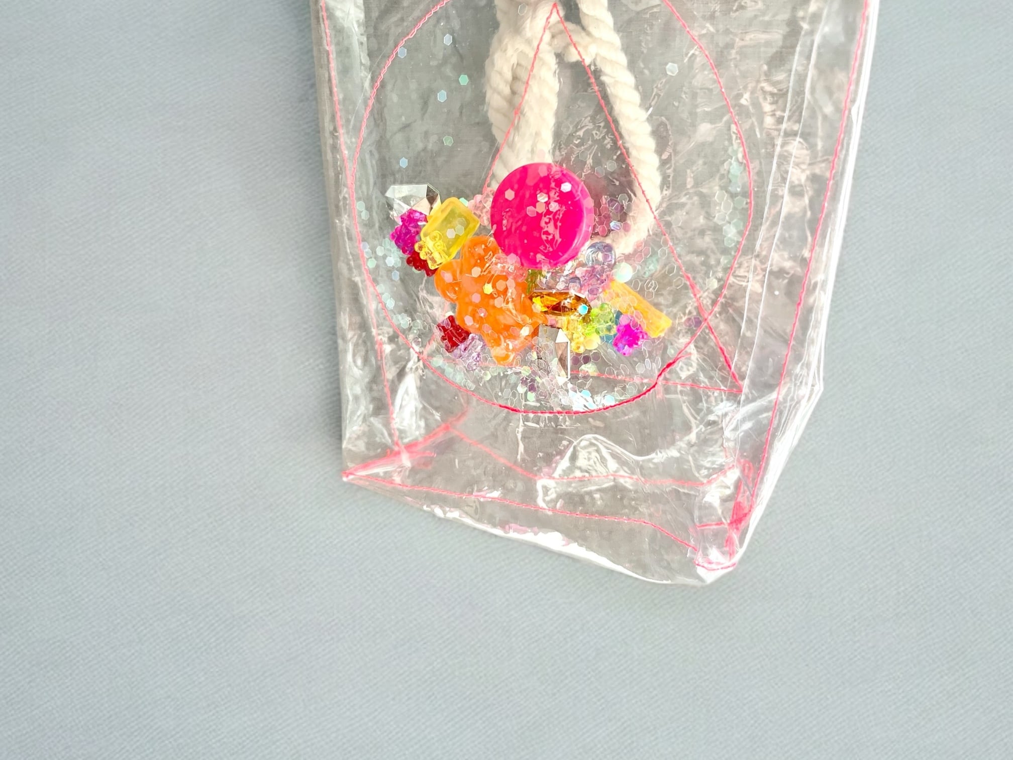 丸中にはオレンジのグミベア、ピンクの丸のジャンボビーズ、
