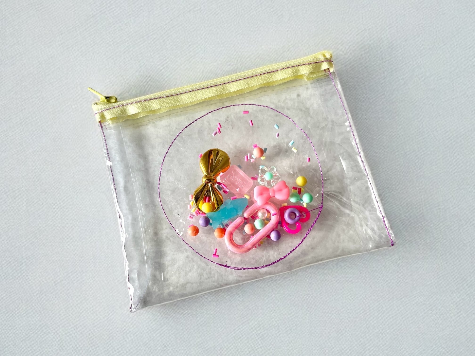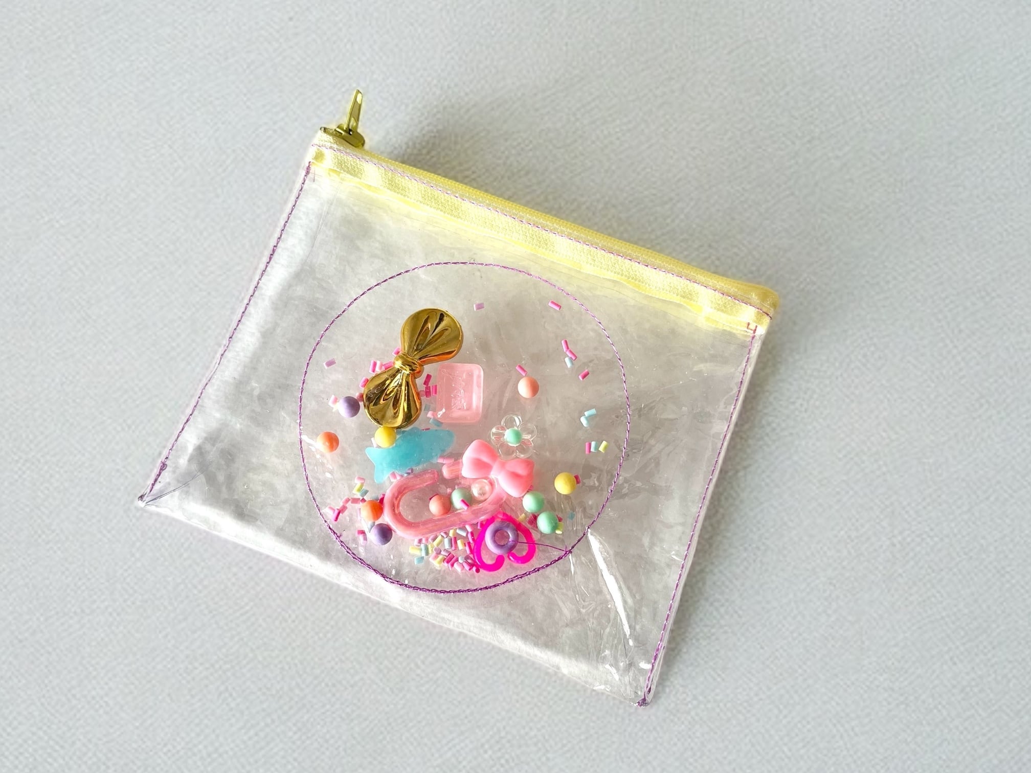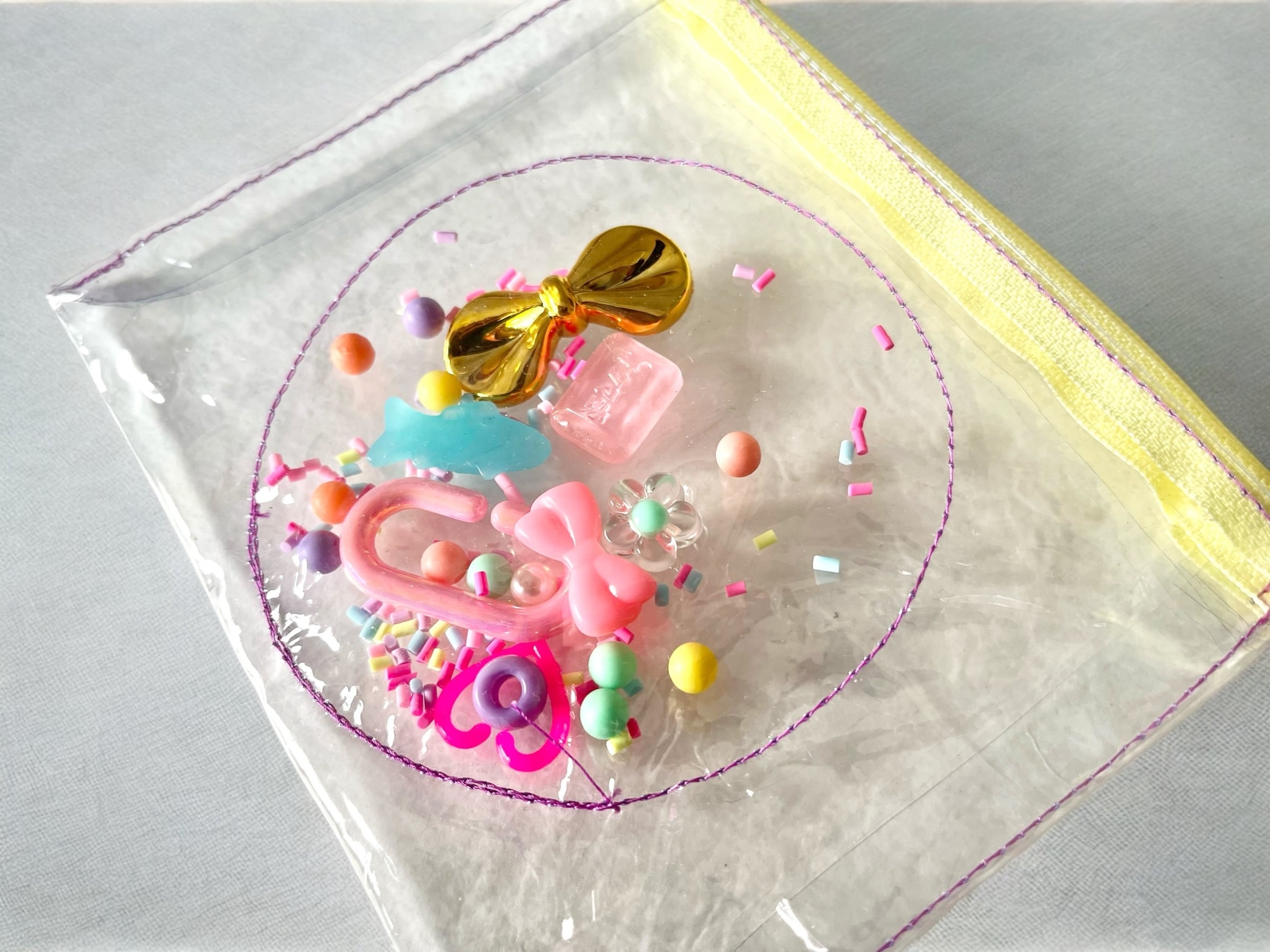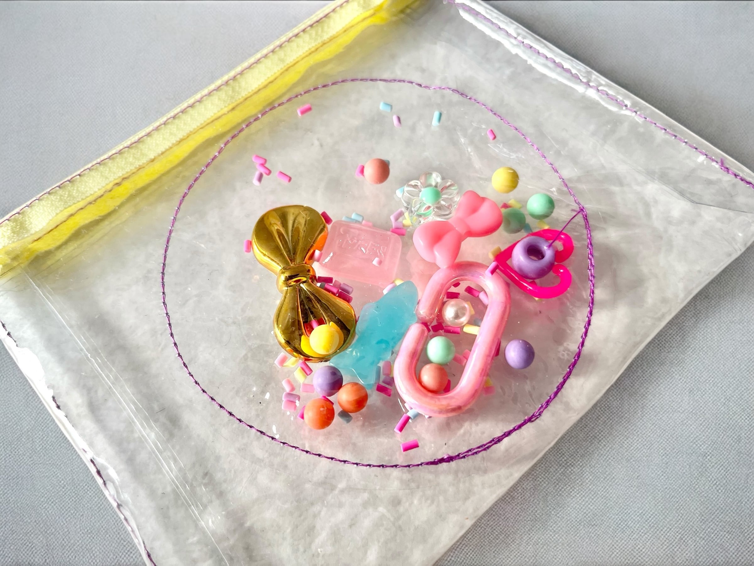 丸の中にはゴールドのリボンやドロップパーツ、プラチェーンやお魚など。
