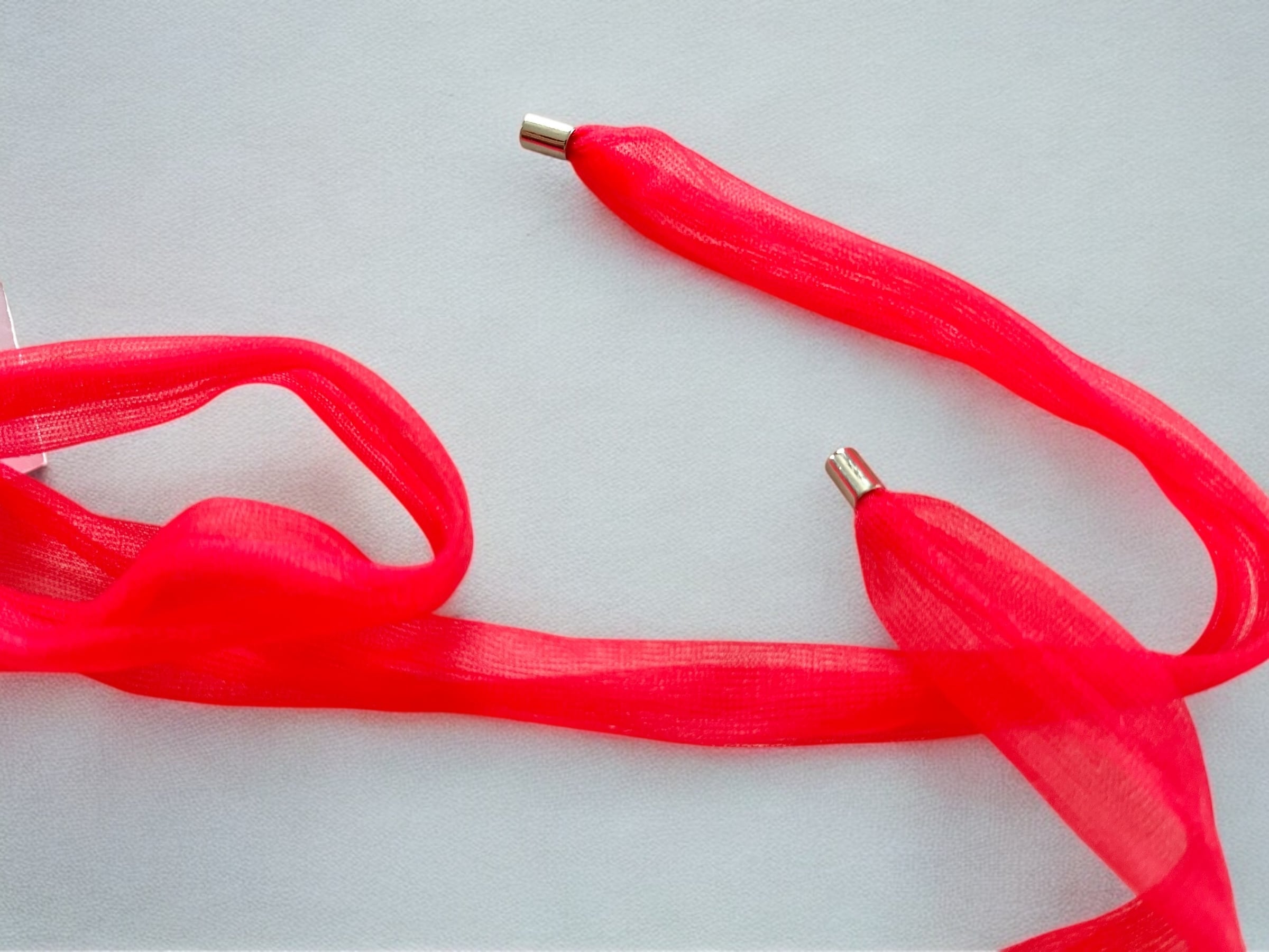 6枚目以降は色違い商品の着用イメージ写真です。写真では色に少しピンク味が混ざっているように見えますが、実際は薄めの赤のリボンになります。