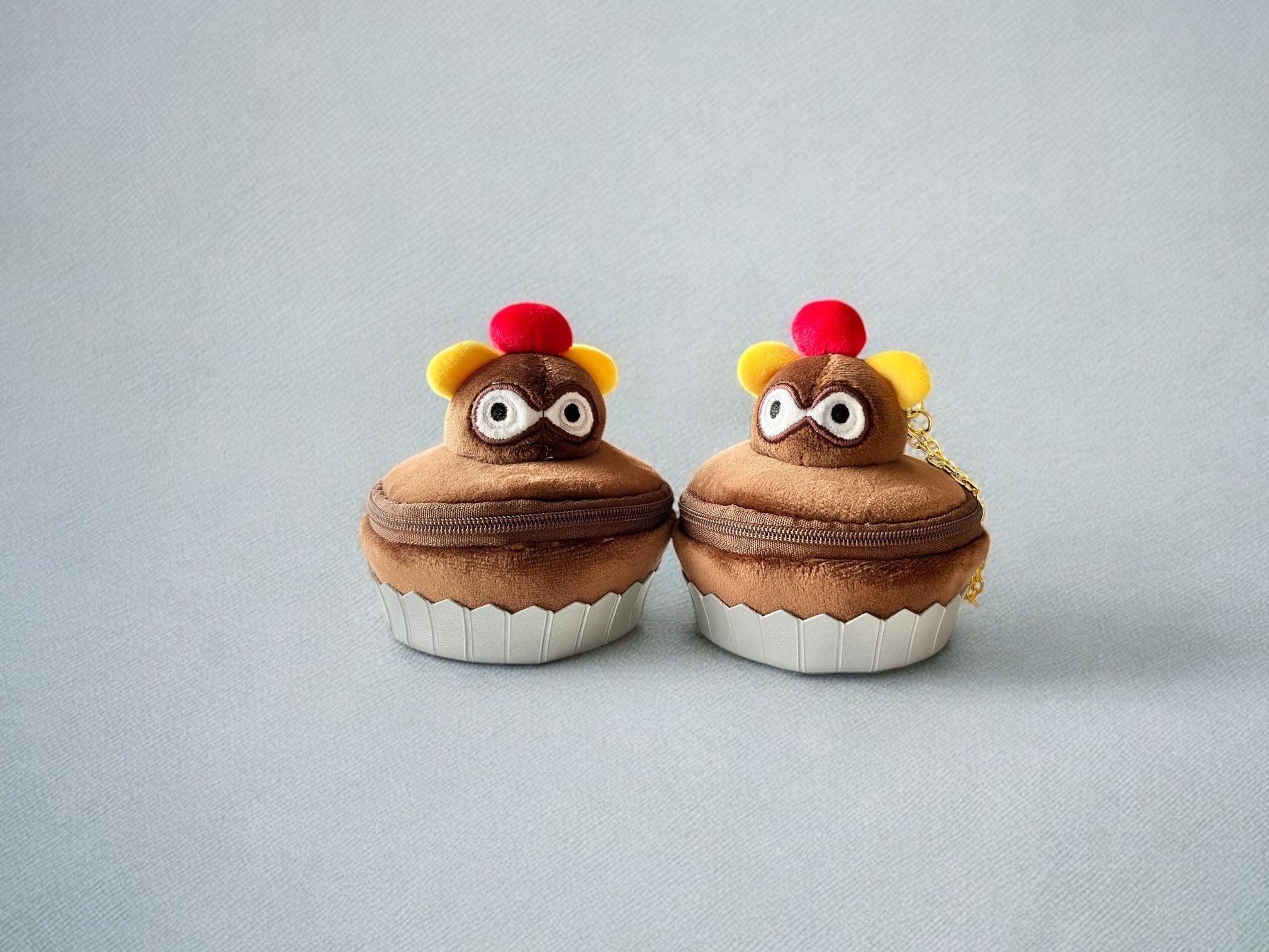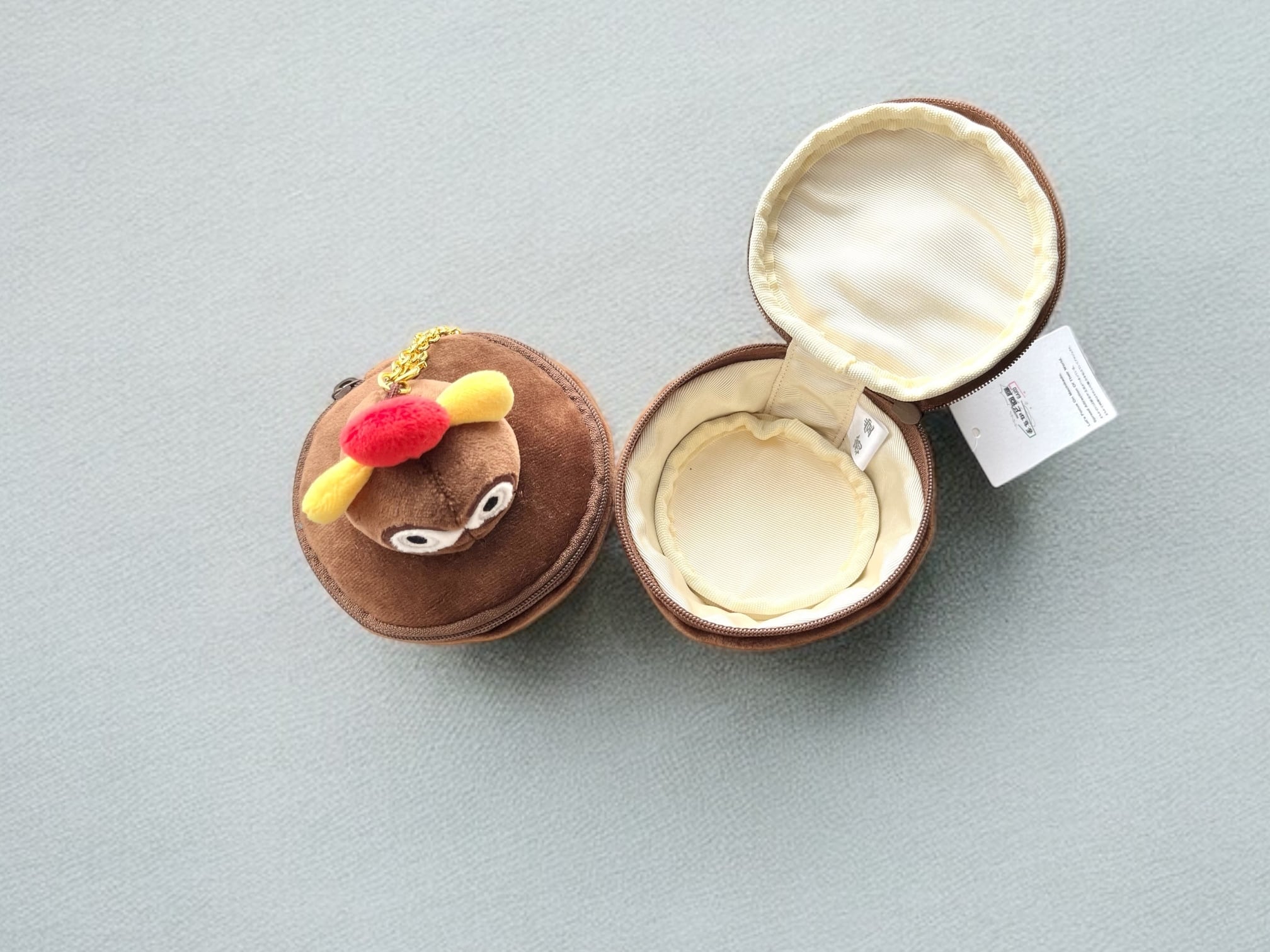 松本で愛され続ける翁堂のたぬきケーキは、昭和30年代にカステラの切れ端を無駄にせずに有効活用するために誕生したそうです。今でも県内外からファンが訪れる翁堂さんのたぬきケーキ。そんなたぬきケーキの愛らしさをぬいぐるみポーチで表現しました。ケーキ同様の上目使いがチャームポイントです。チェーン付きなので、ちょっとした小物を入れてバックチャームとして活用できます。