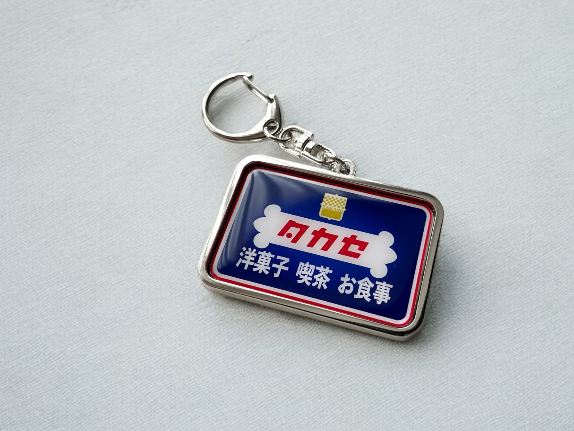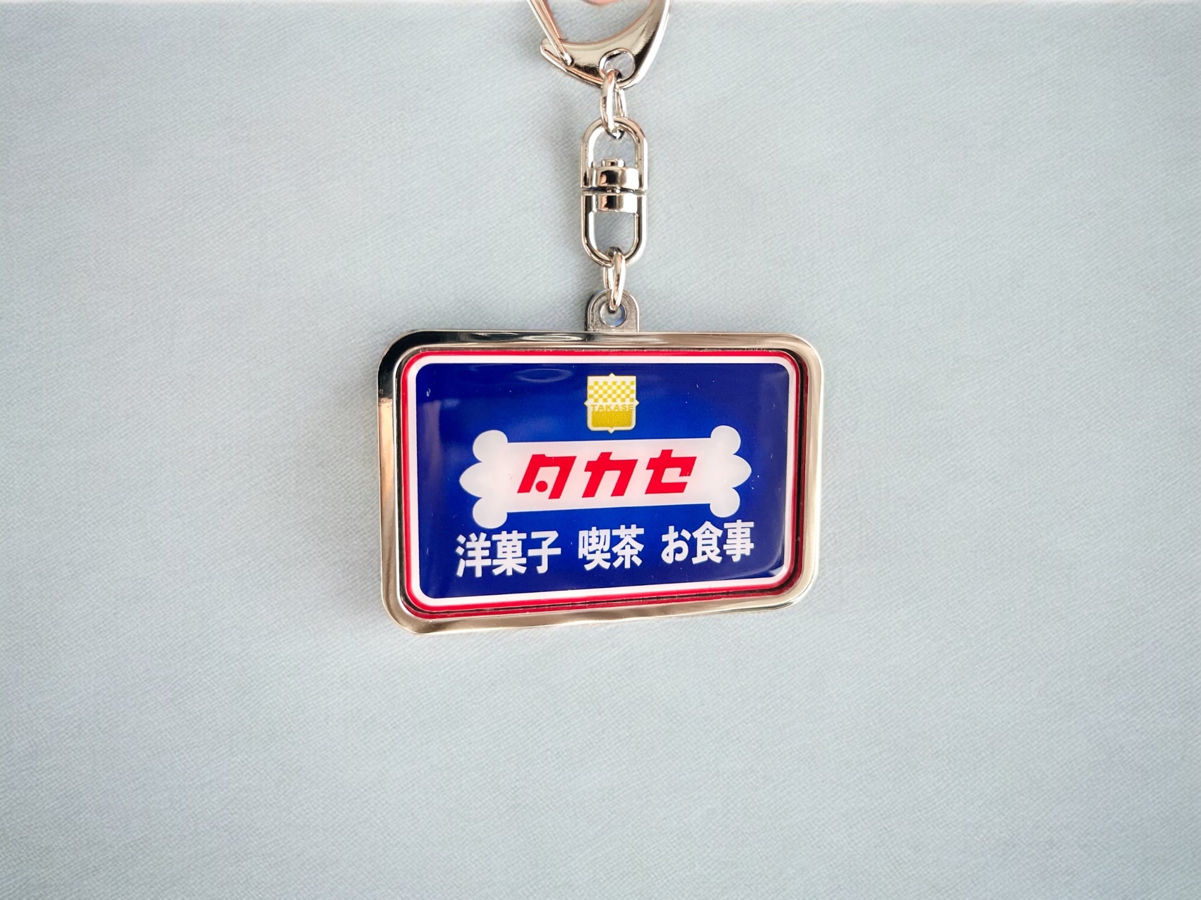 大正9年に創業し、世代を超えて愛され続けている池袋東口の老舗洋菓子店「タカセ」のコラボ雑貨です。パンや洋菓子、カフェはもちろん、池袋本店の入り口に輝く「タカセ」の看板をイメージされる方も多いと思います。まちかど画廊では誰もが入店する際に見かけるこの看板をキーホルダーに仕上げました。