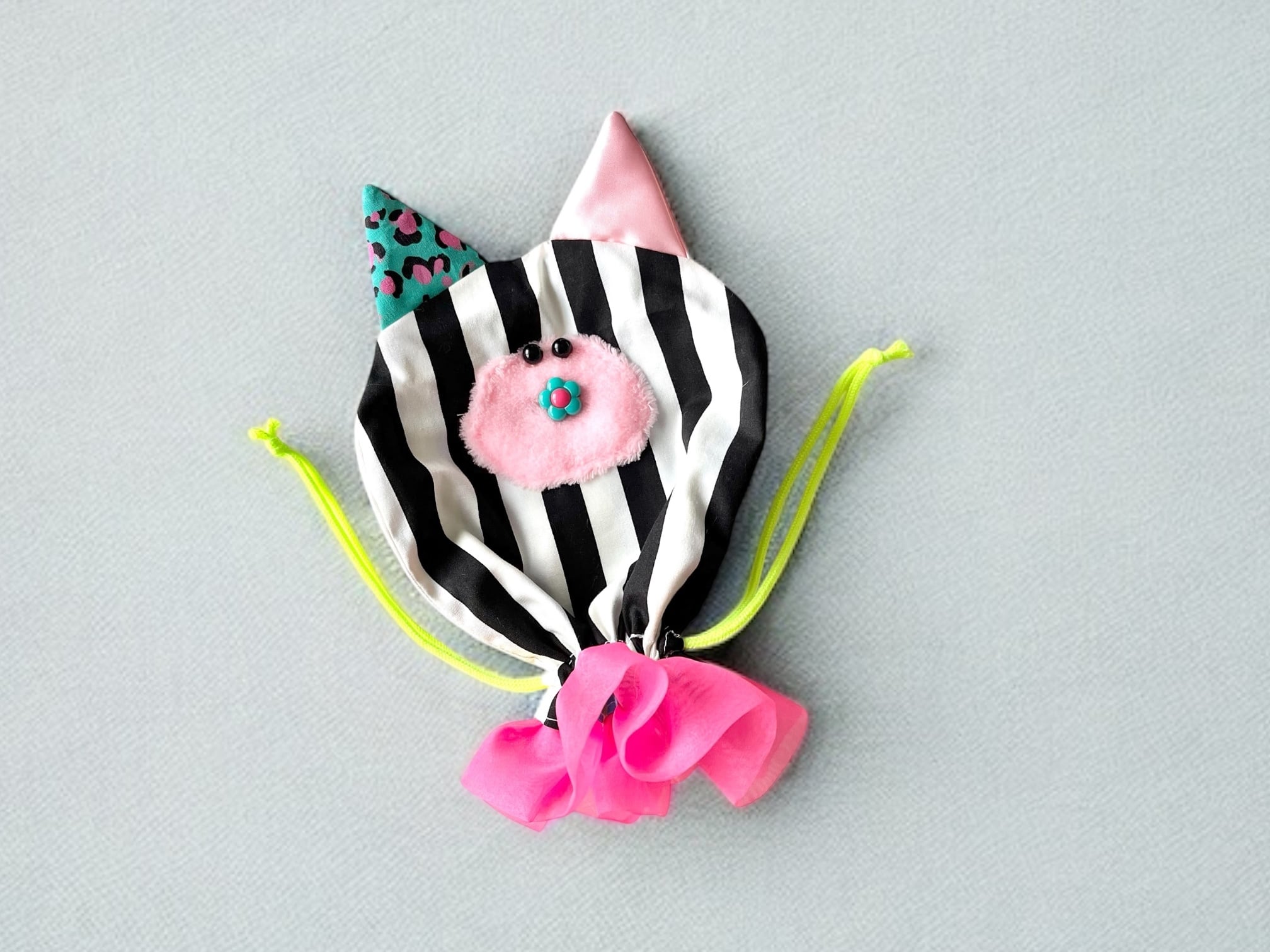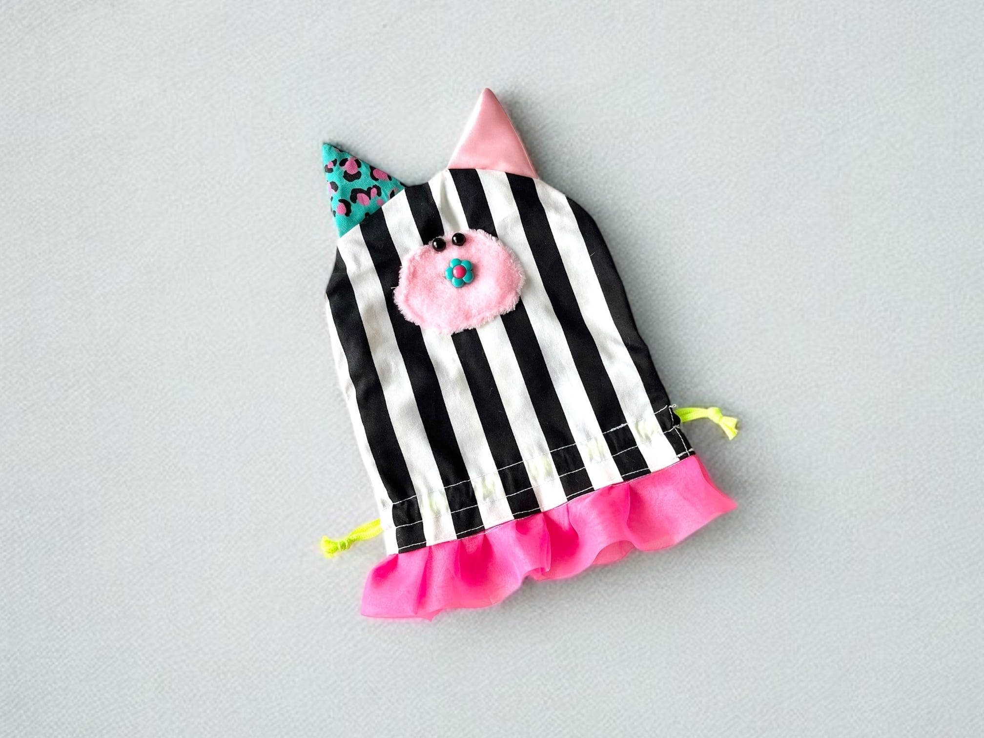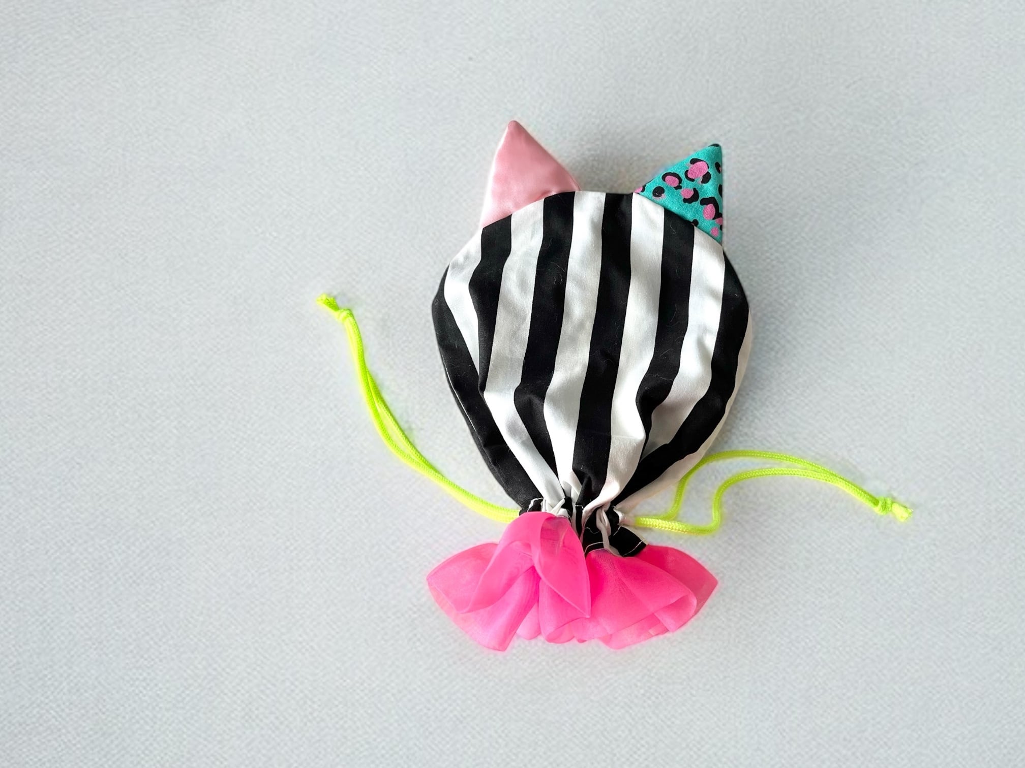 紐をしばるとかわいいネコ型の巾着