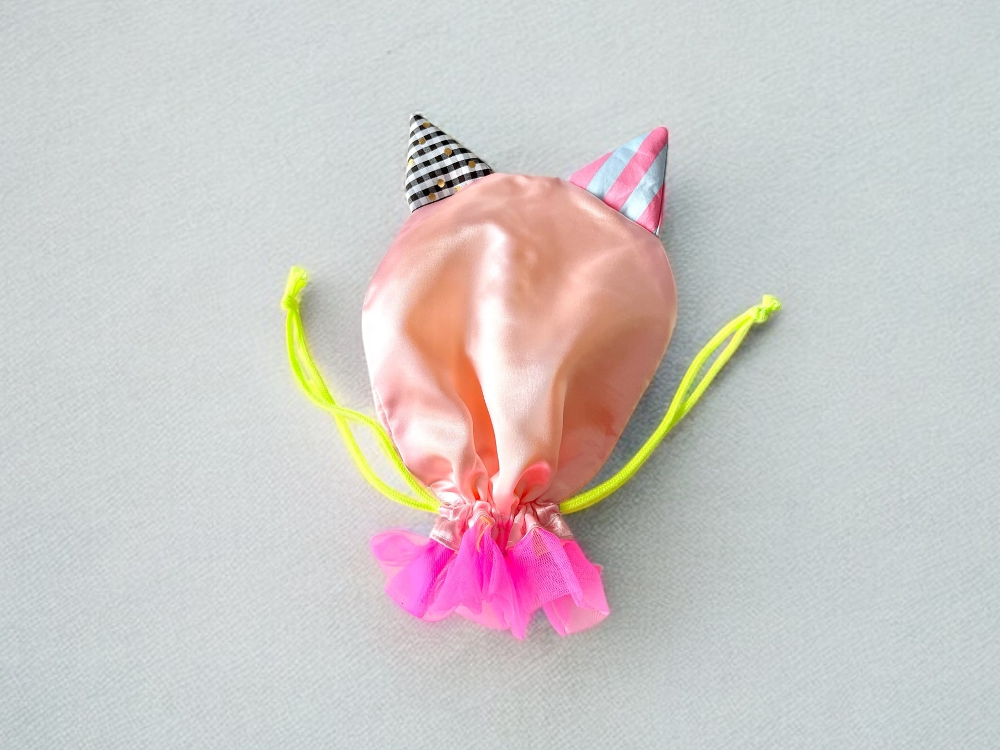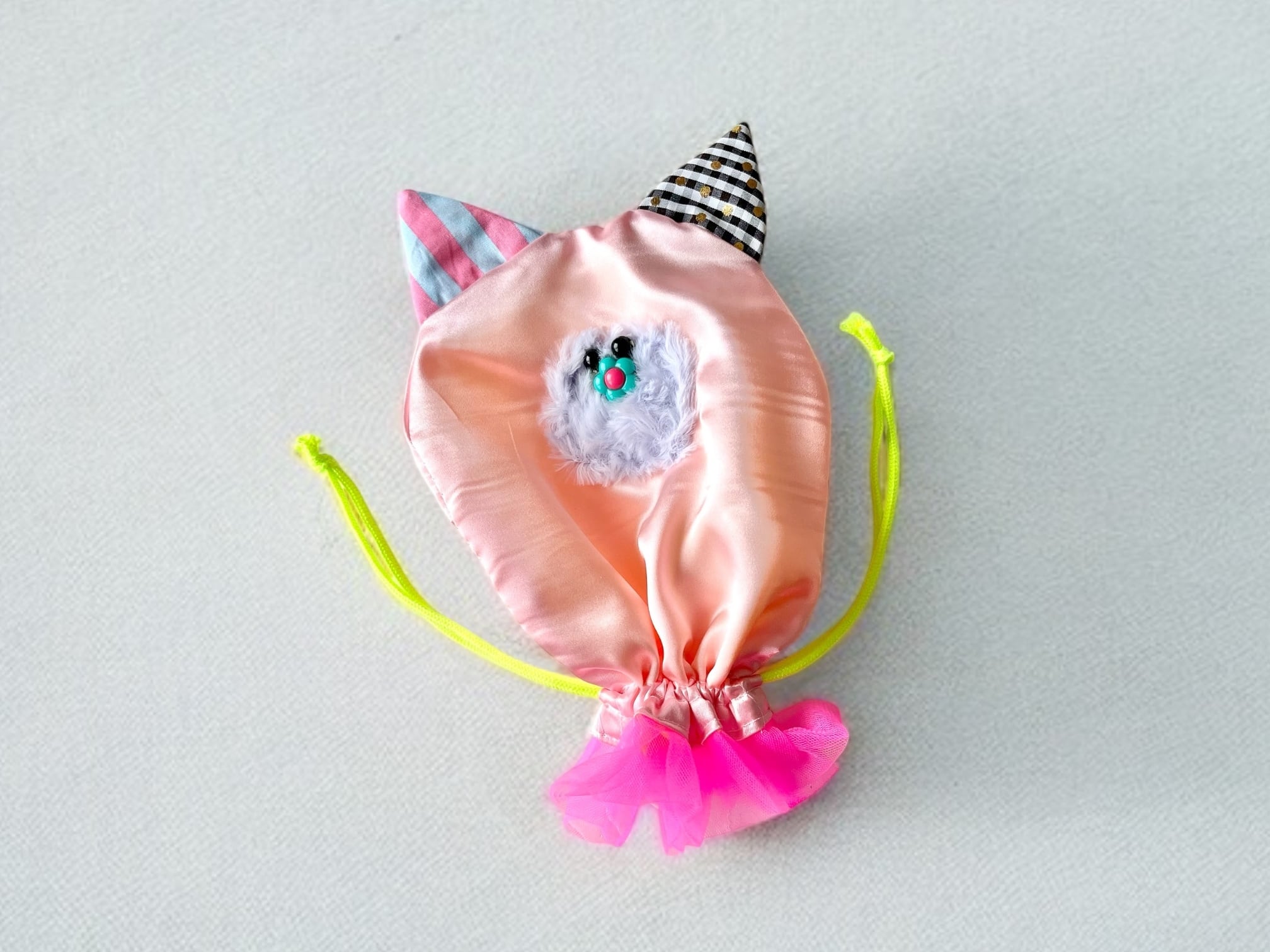 紐をしばるとかわいいネコ型の巾着