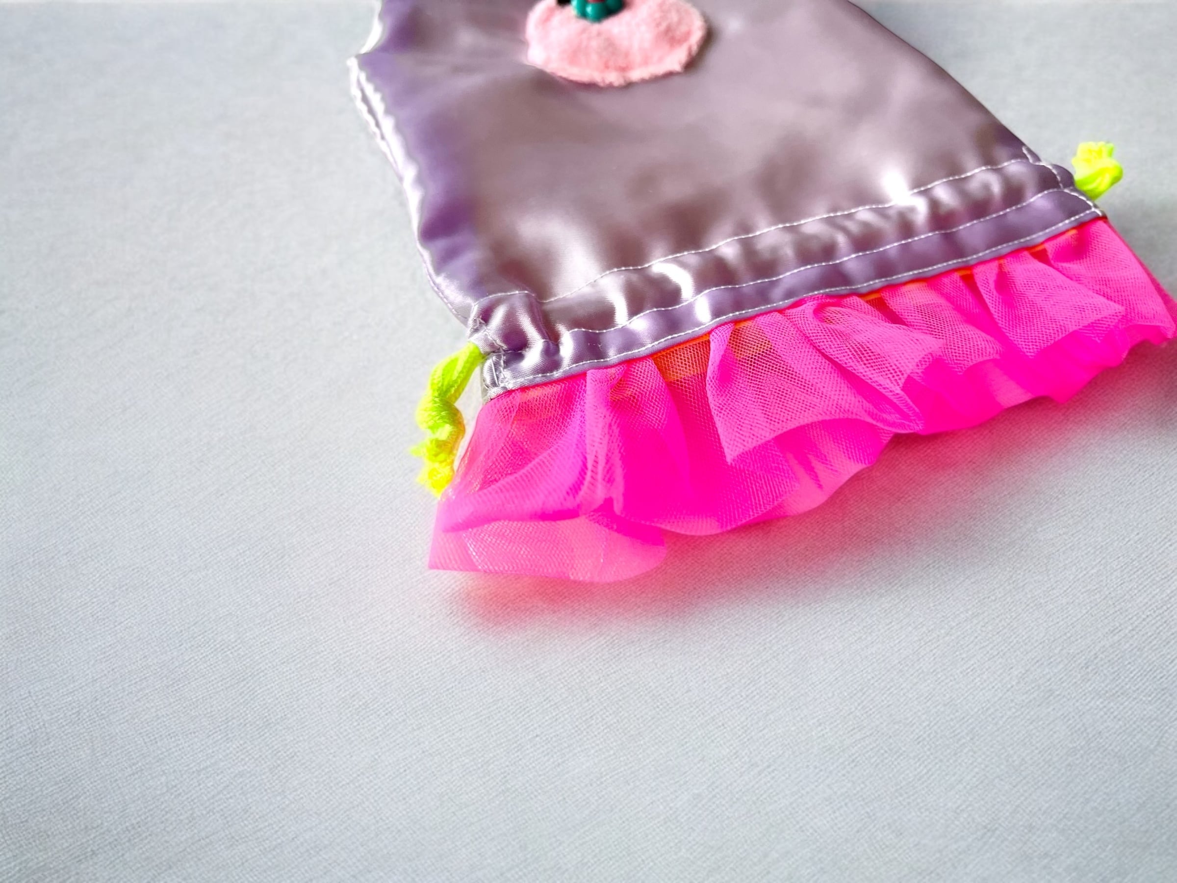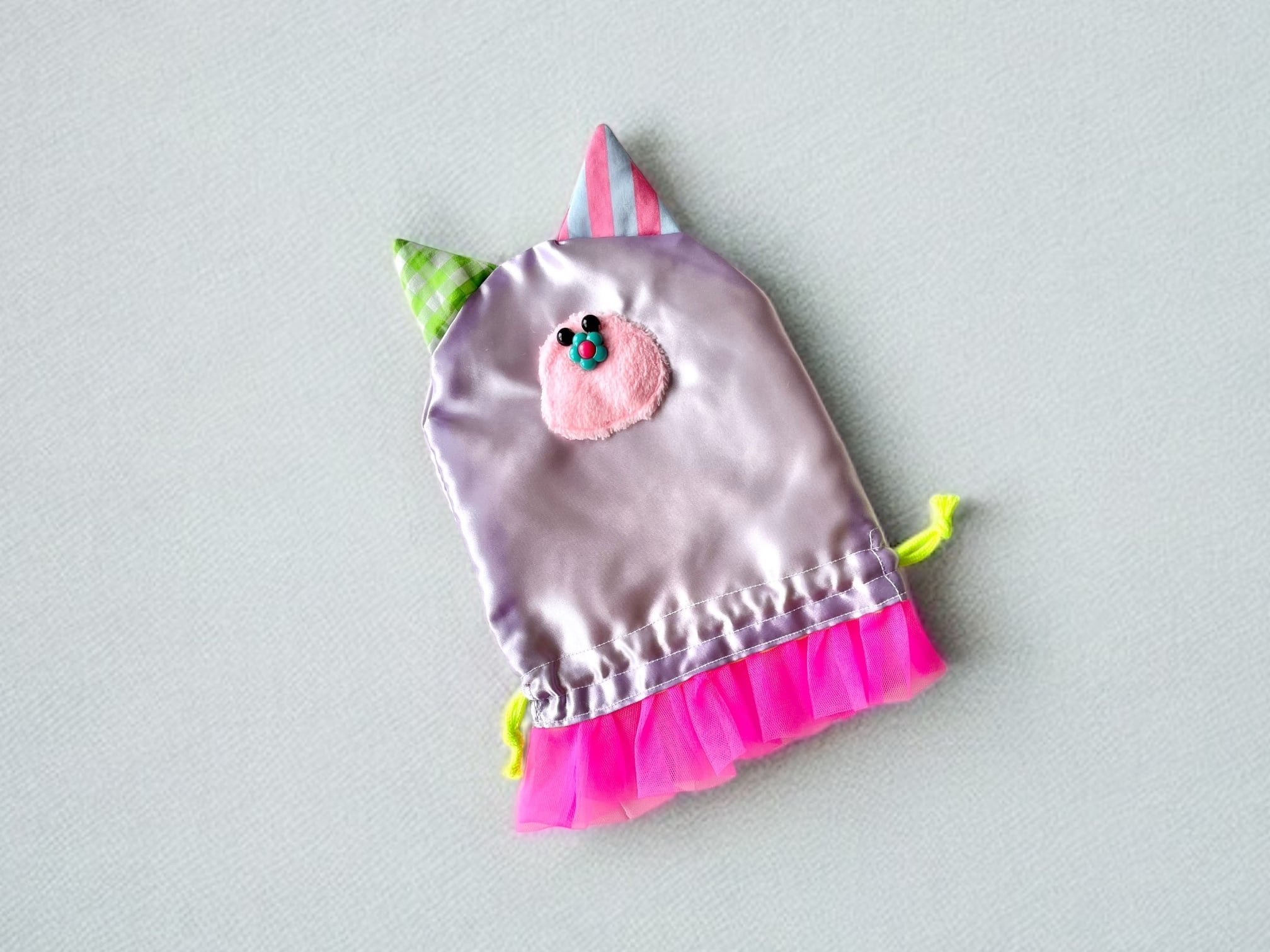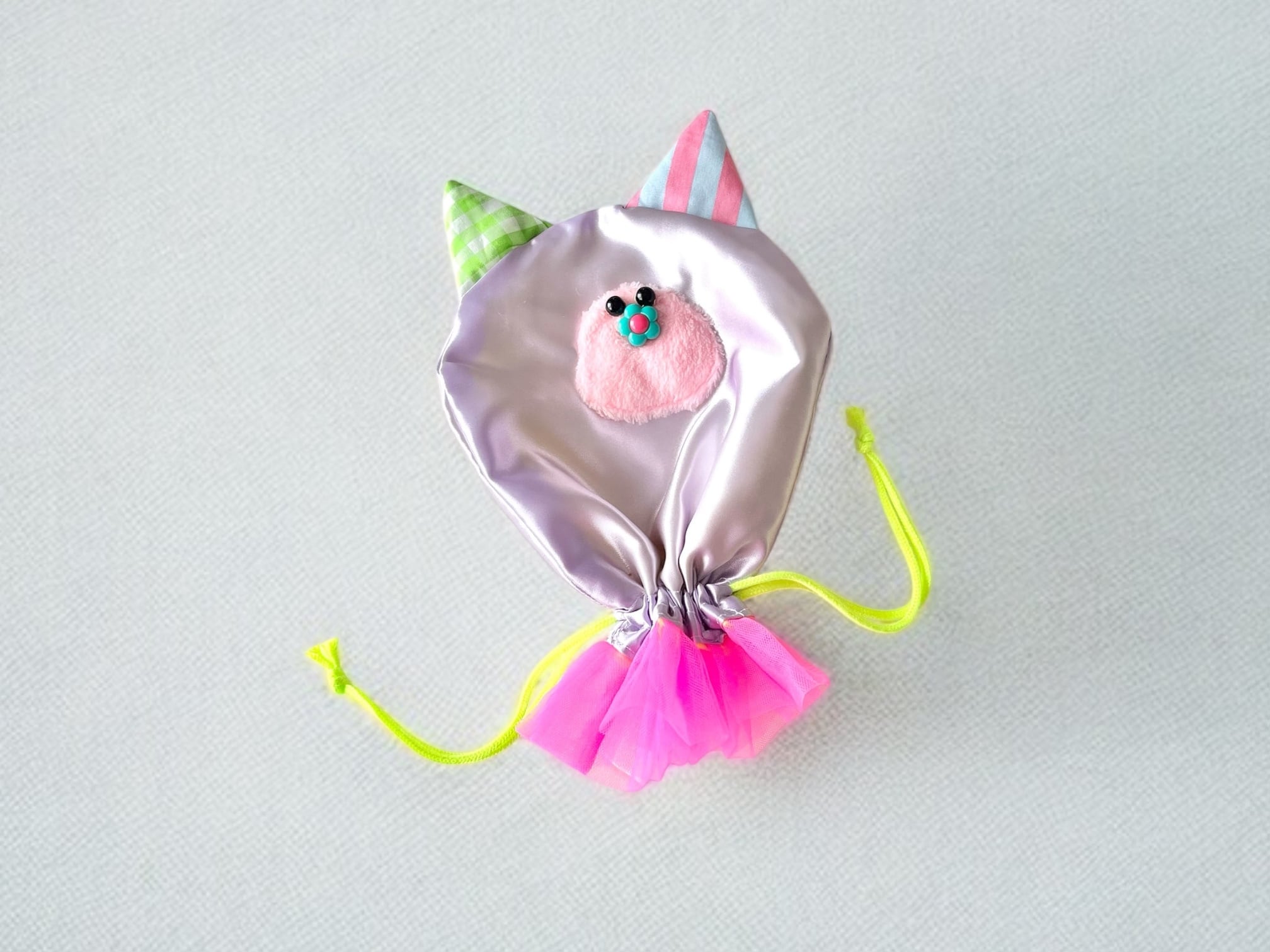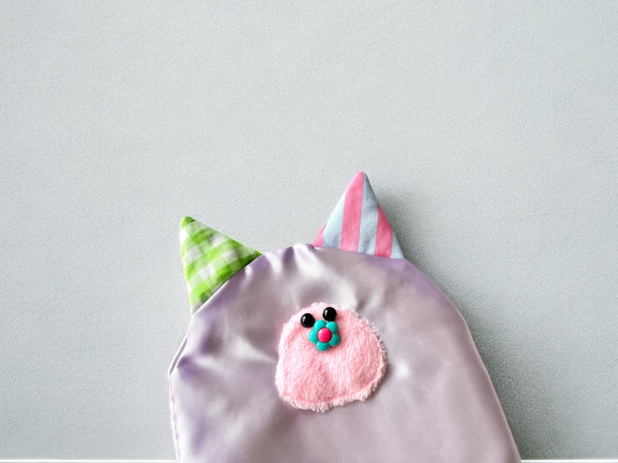 薄いパープルのサテンにかわいいお目目とお鼻