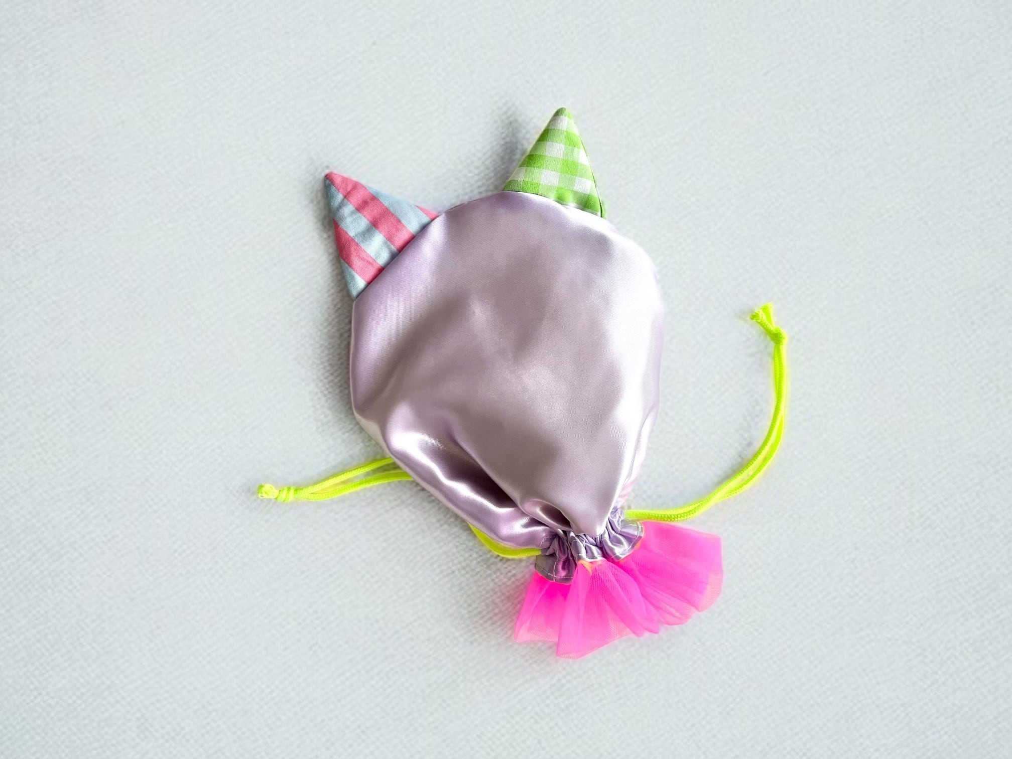 紐をしばるとかわいいネコ型の巾着