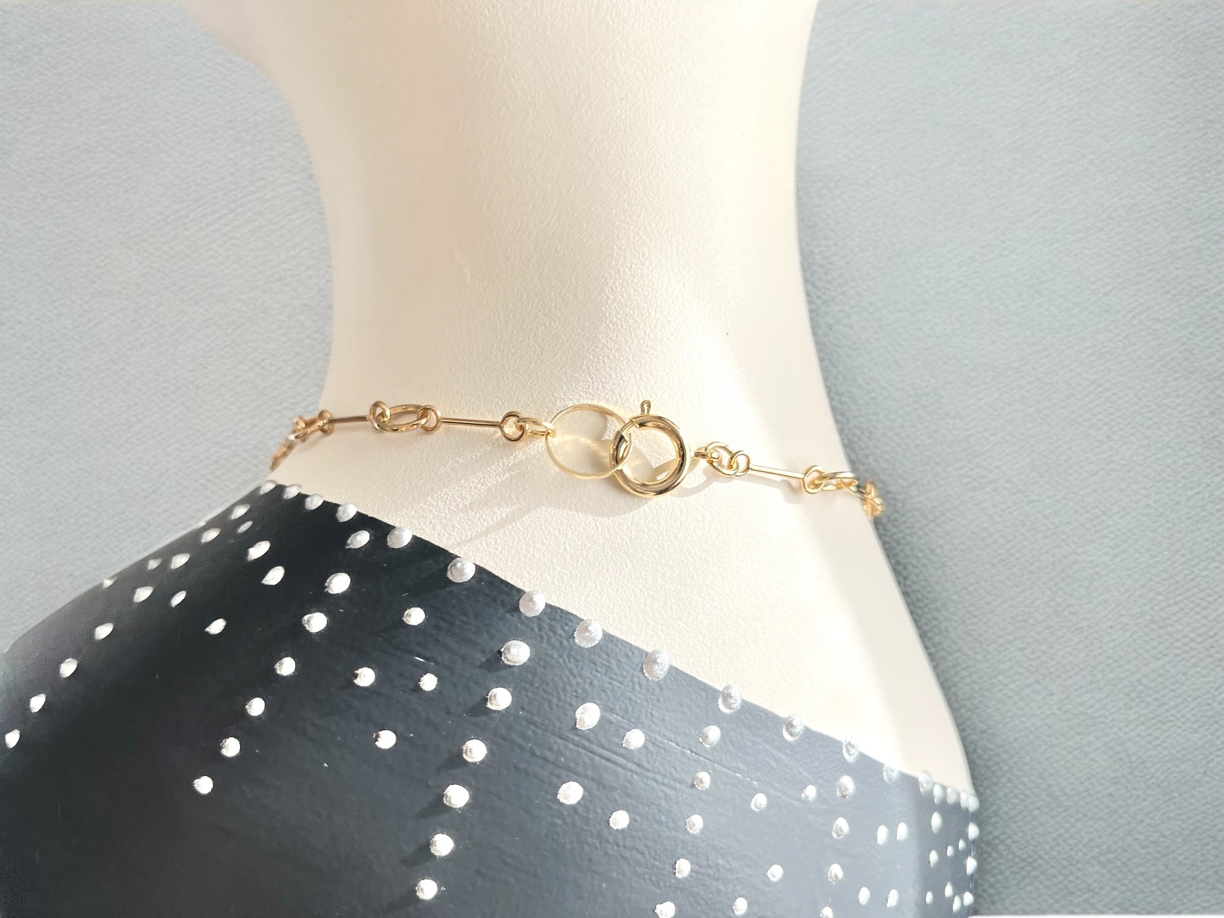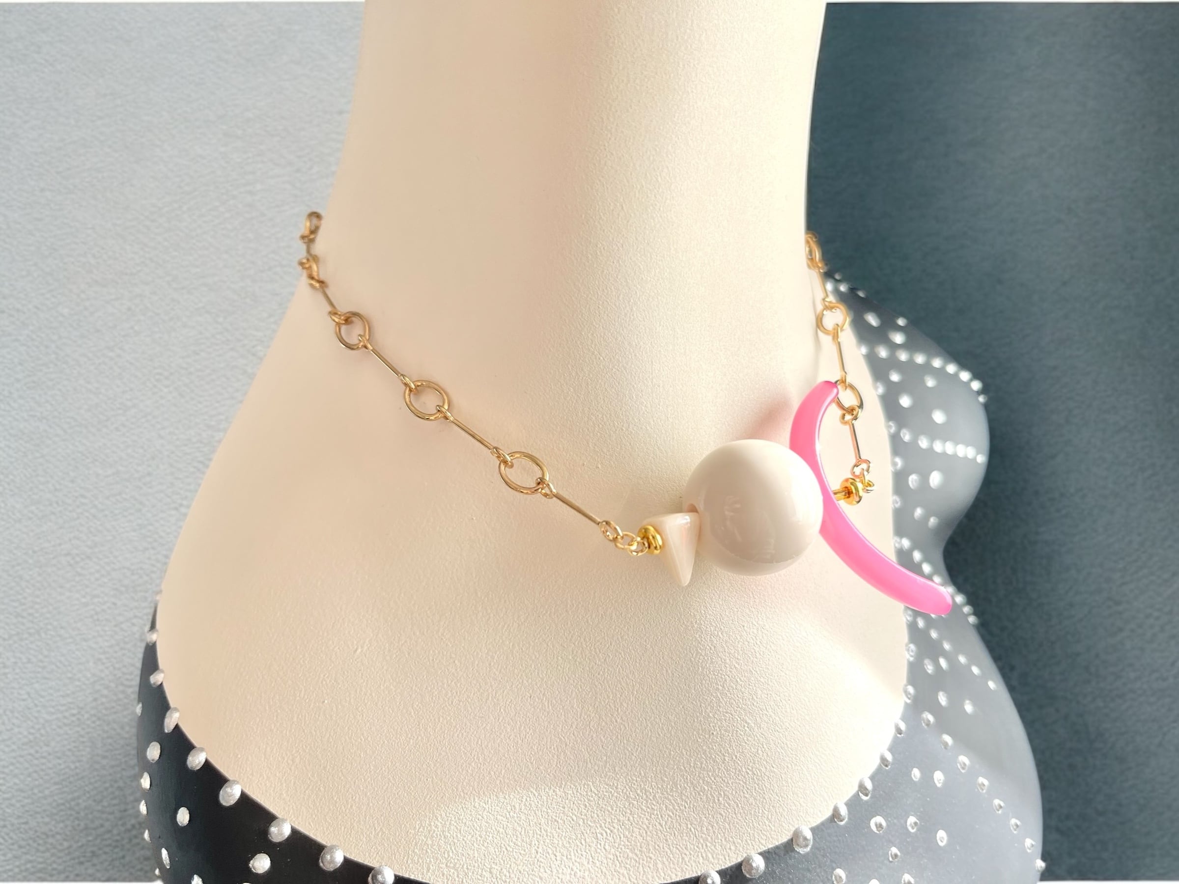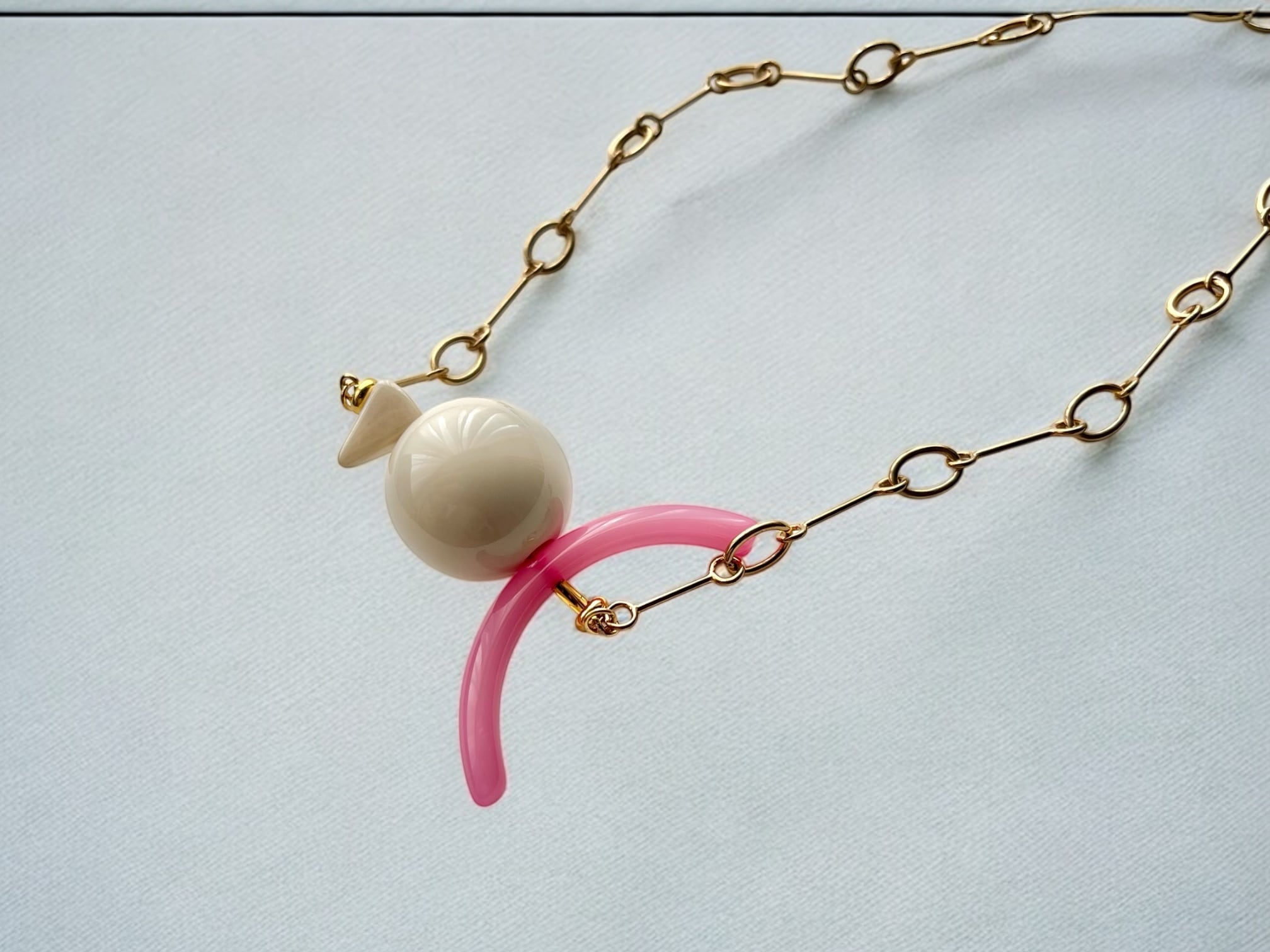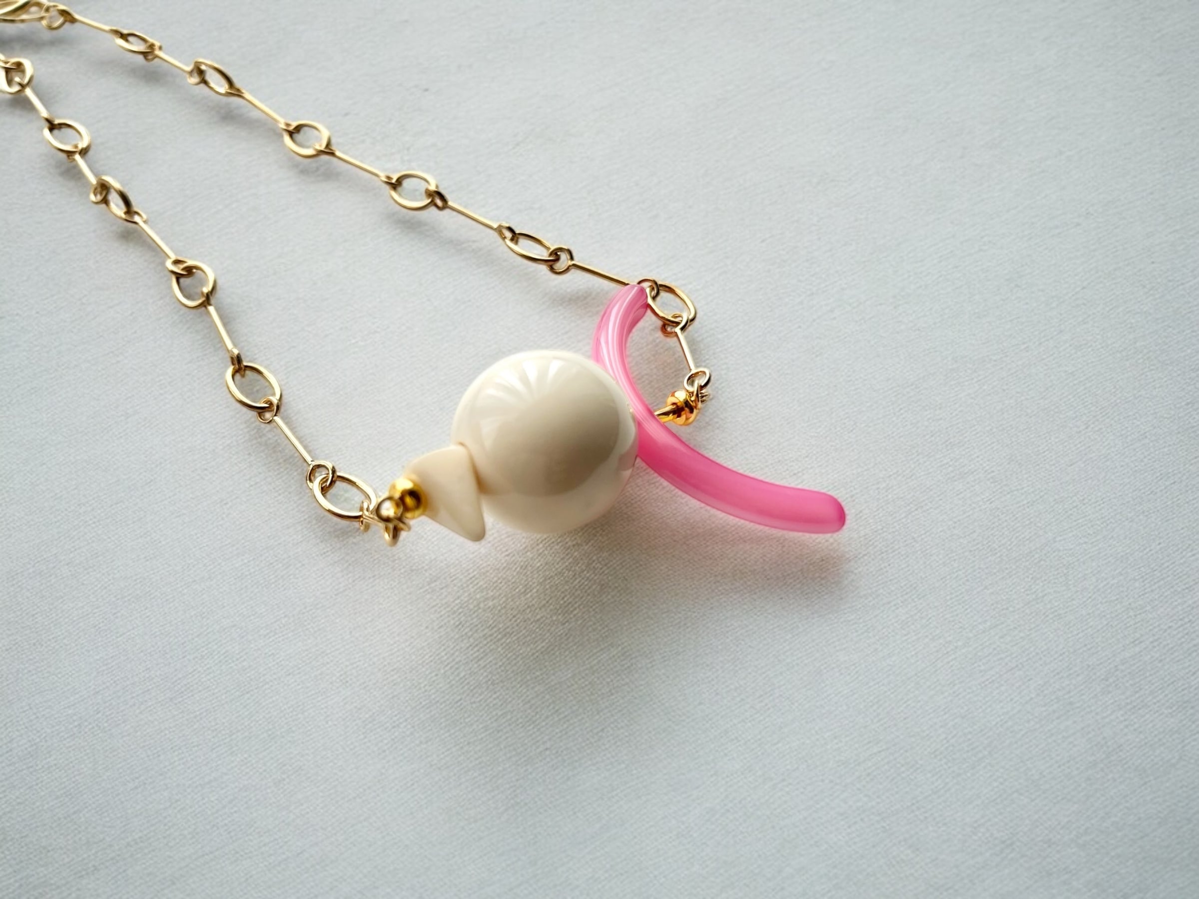 品のあるオーバルフープのチェーンに、デッドストックのイタリアンビーズを合わせたアンバランスネックレス
