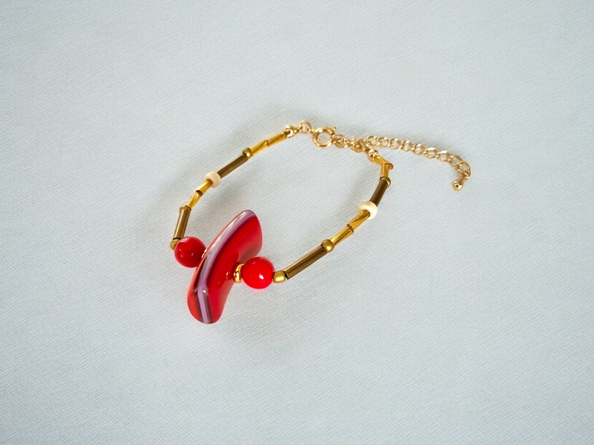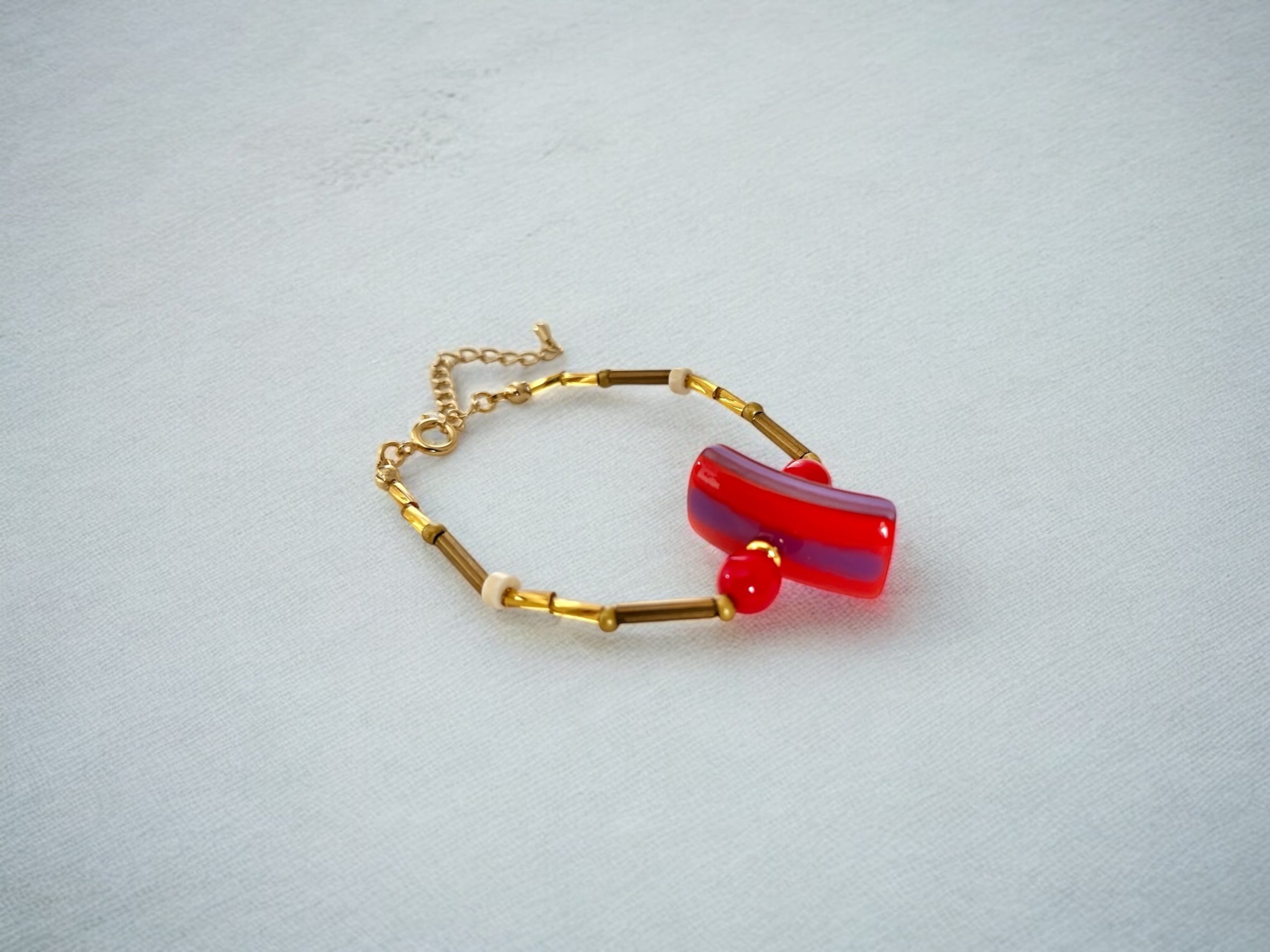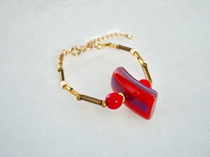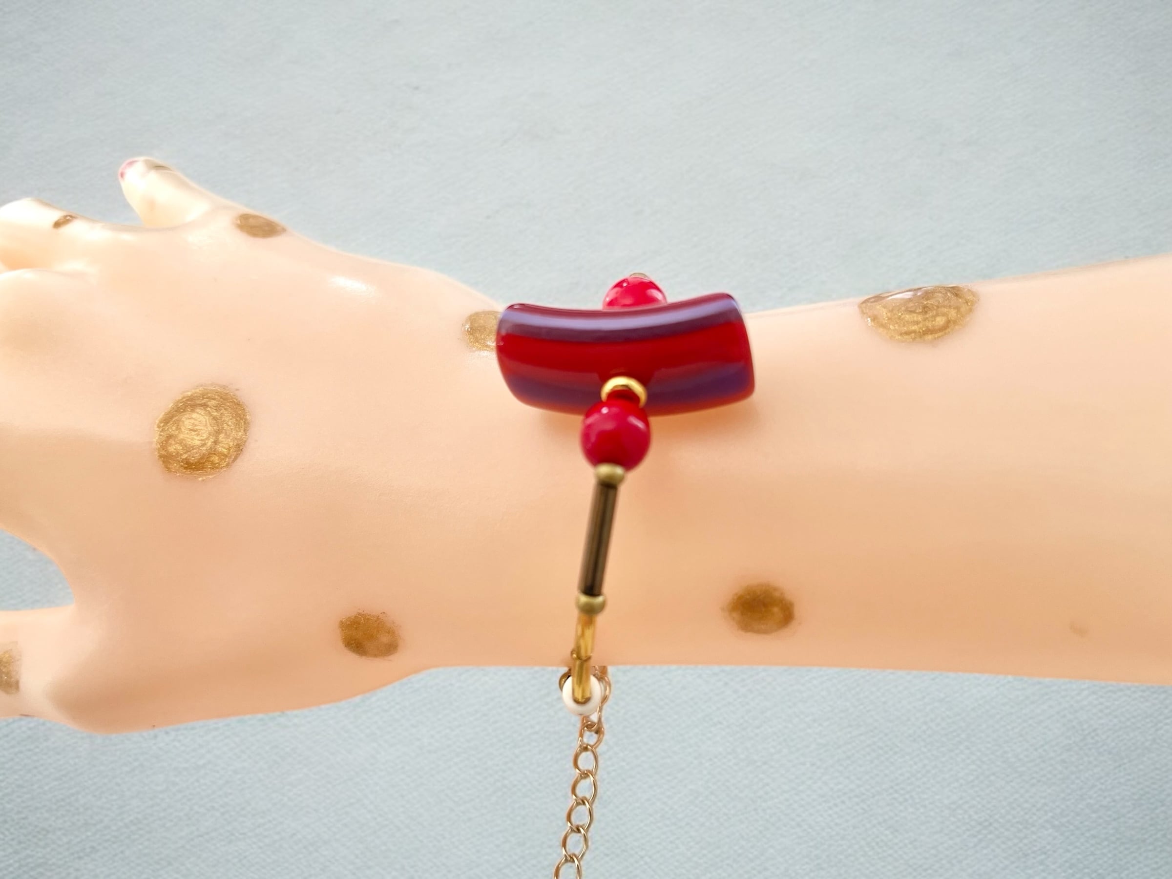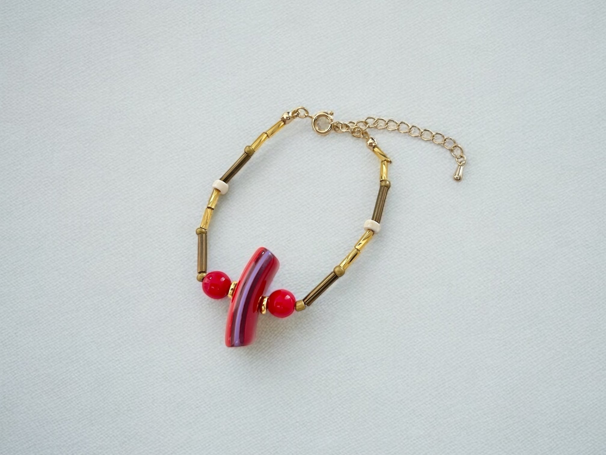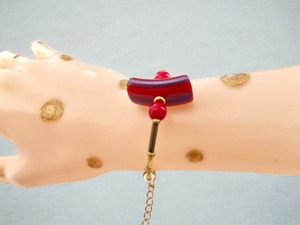 レッド×パープルにゴールドやブラウンのデッドストックビーズを合わせたおしゃれなブレスレット