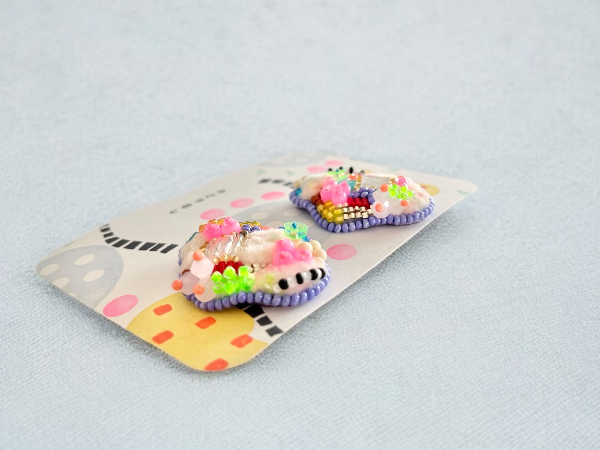 縁取りのパープルビーズがとてもかわいい。