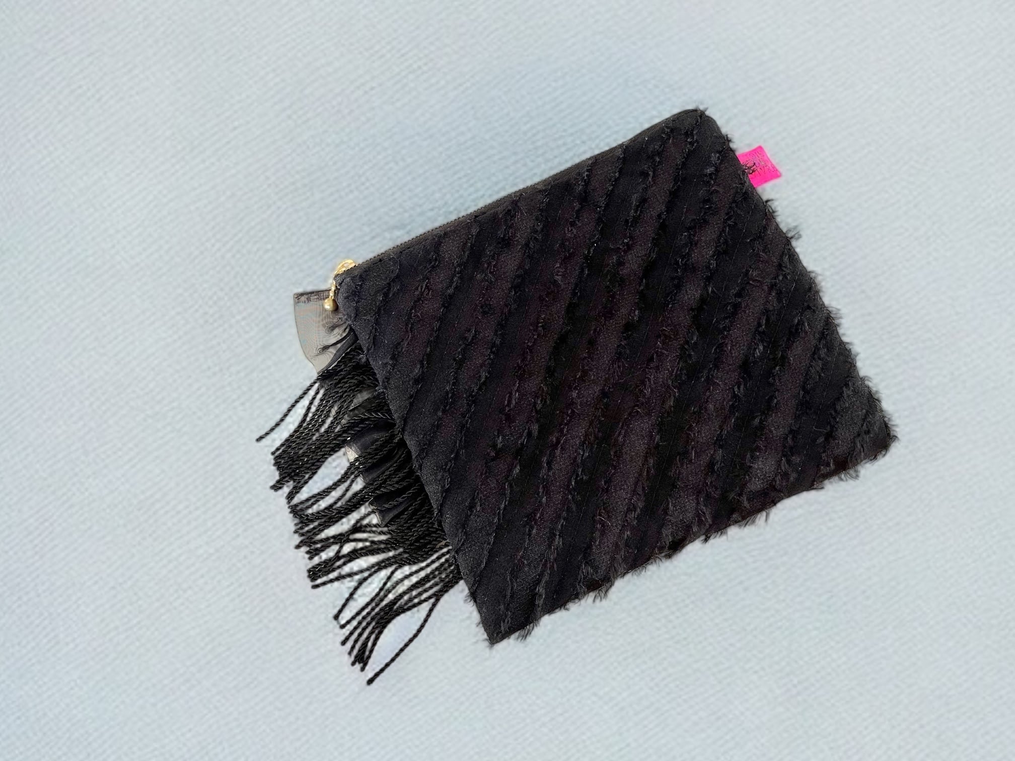 ブラックのチュールフリル、ブラックタッセルが施されたデザイン性の高いおしゃれなポーチです。