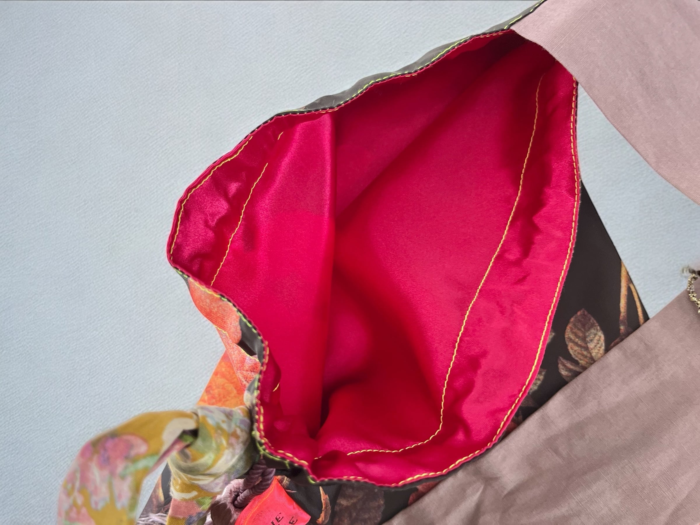 裏地は鮮やかなサテンレッド