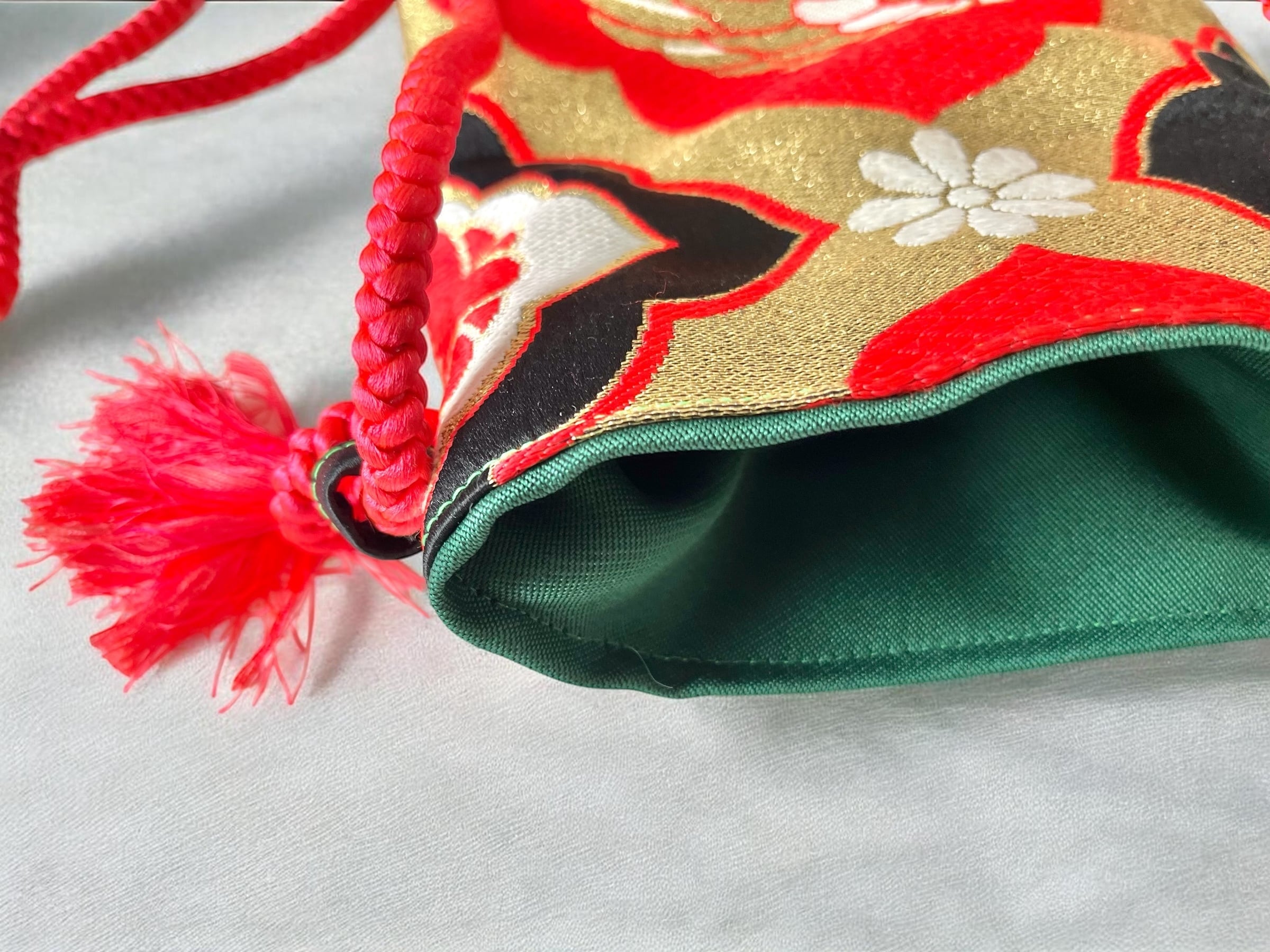 とてもおしゃれで綺麗な和柄に裏地はグリーン