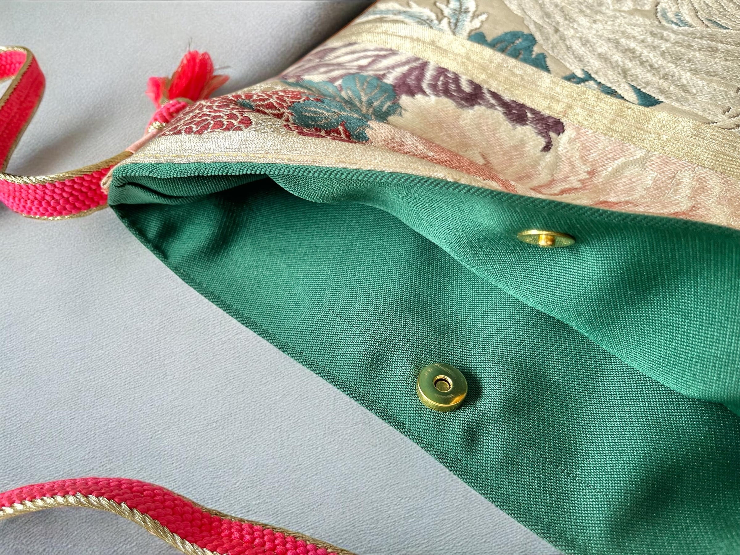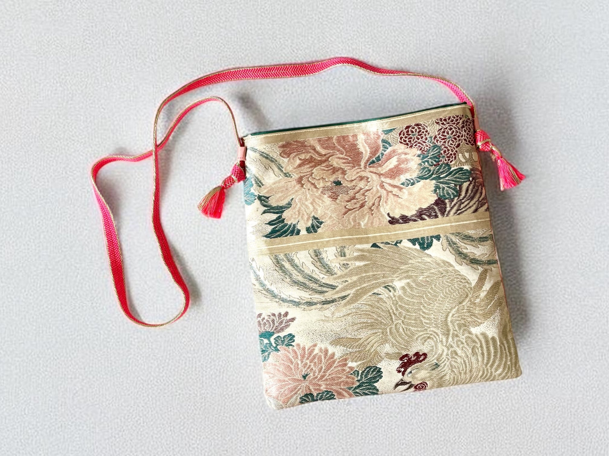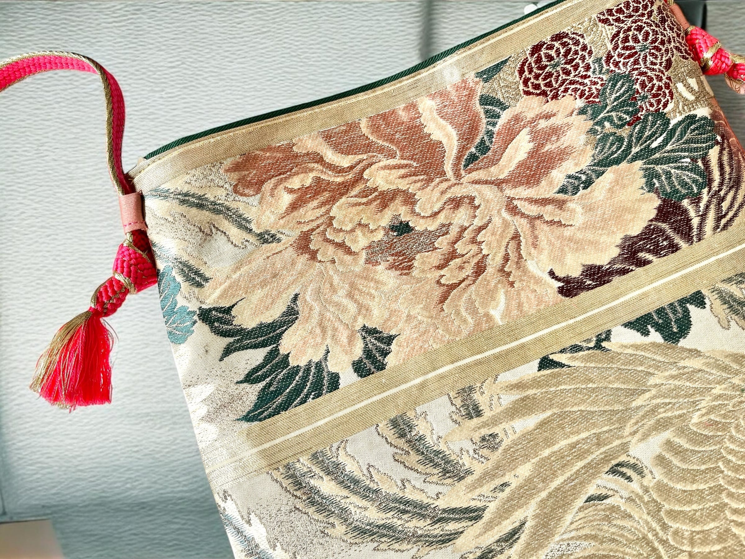 ヴィンテージの古帯から出来たおしゃれな大きめなOBIショルダー