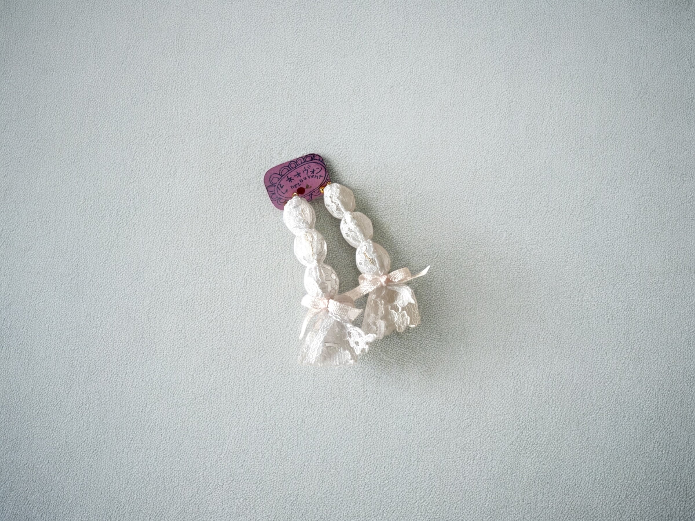 三つのビーズがホワイトレースで包まれた三つ編み風のかわいいデザイン