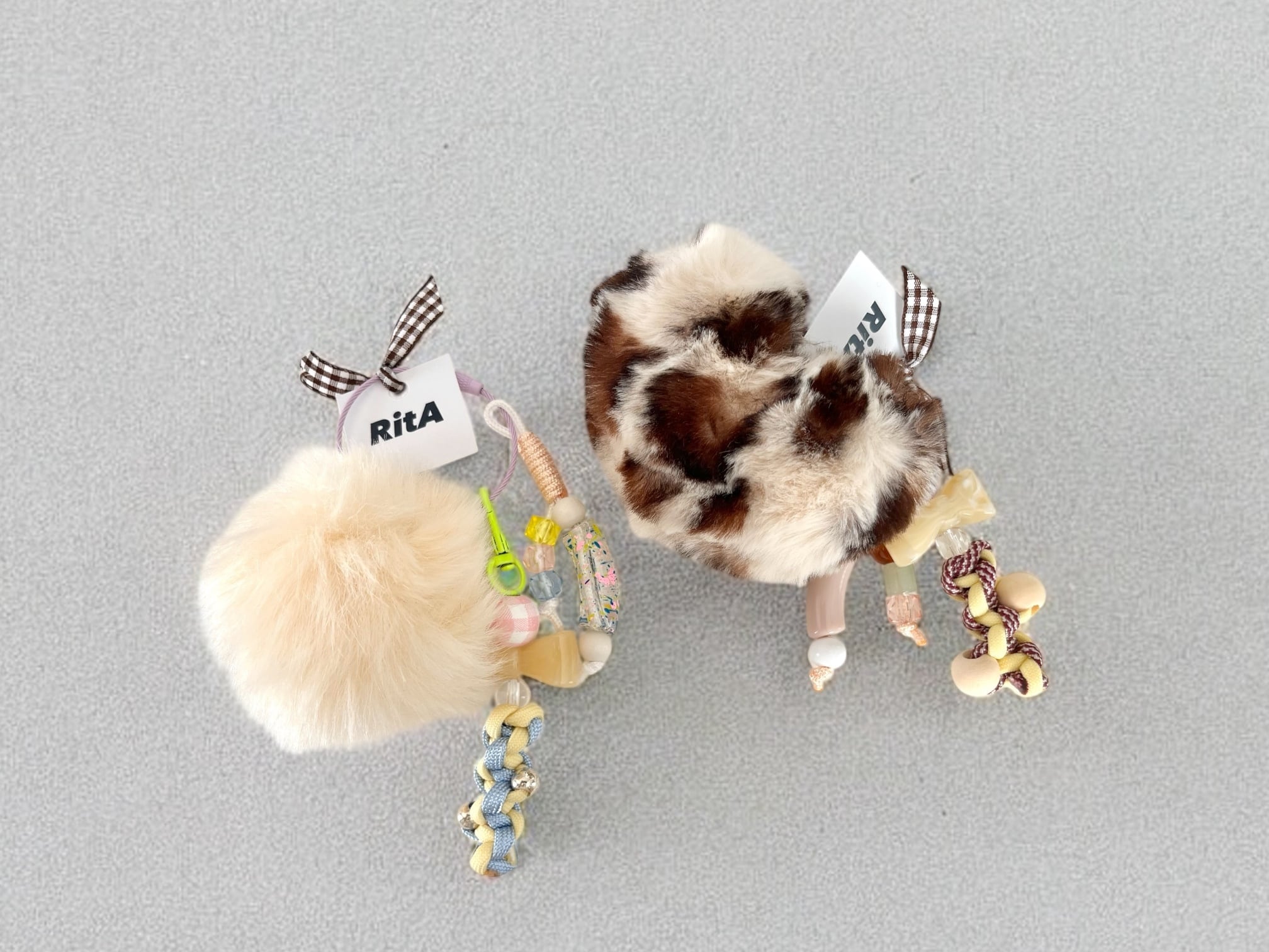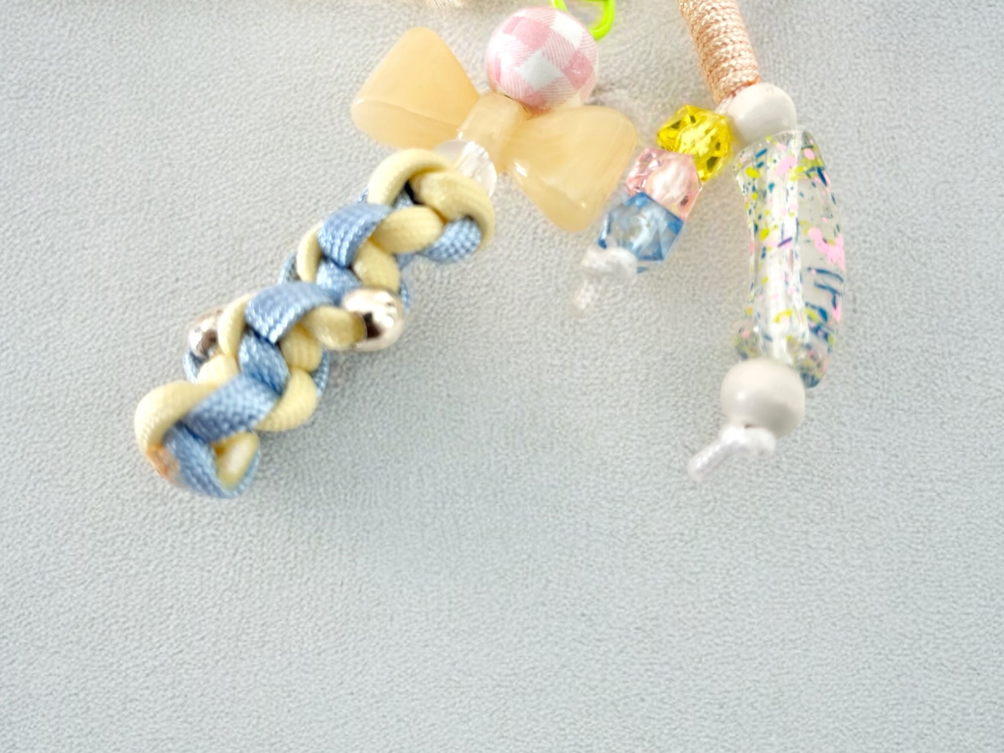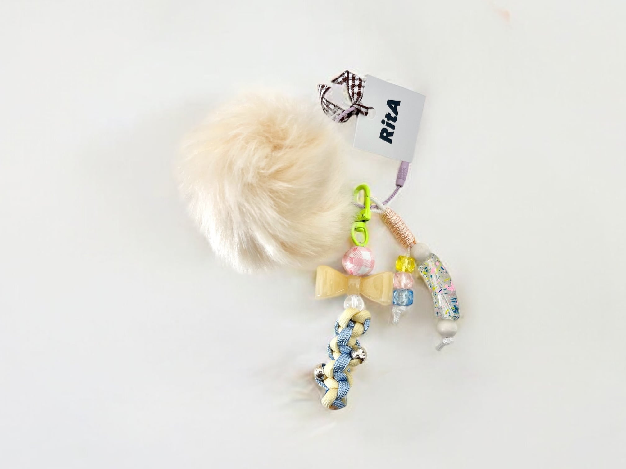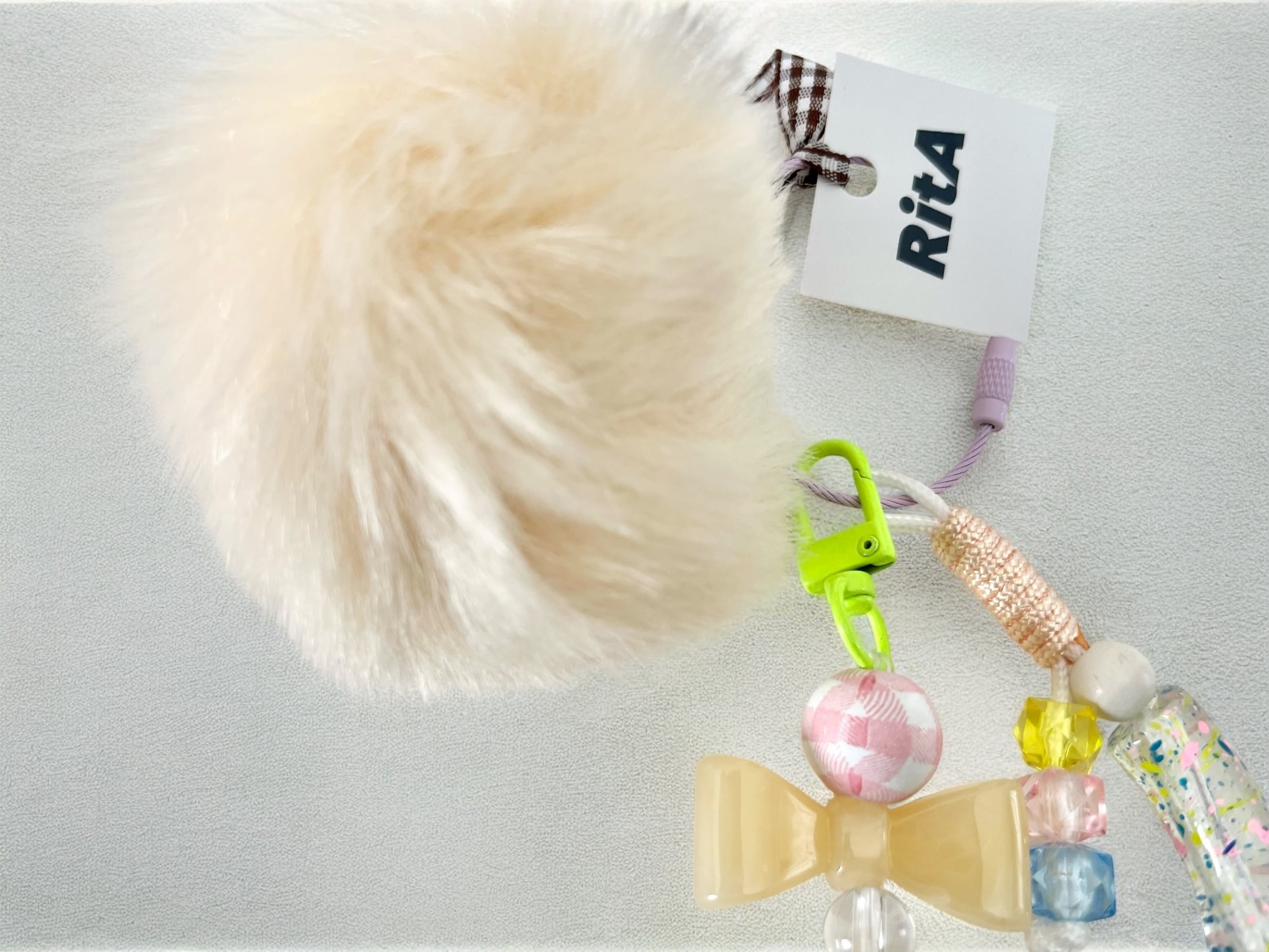 大きなポンポンにパープルのリング、パステルカラーコードのかわいい組み合わせ