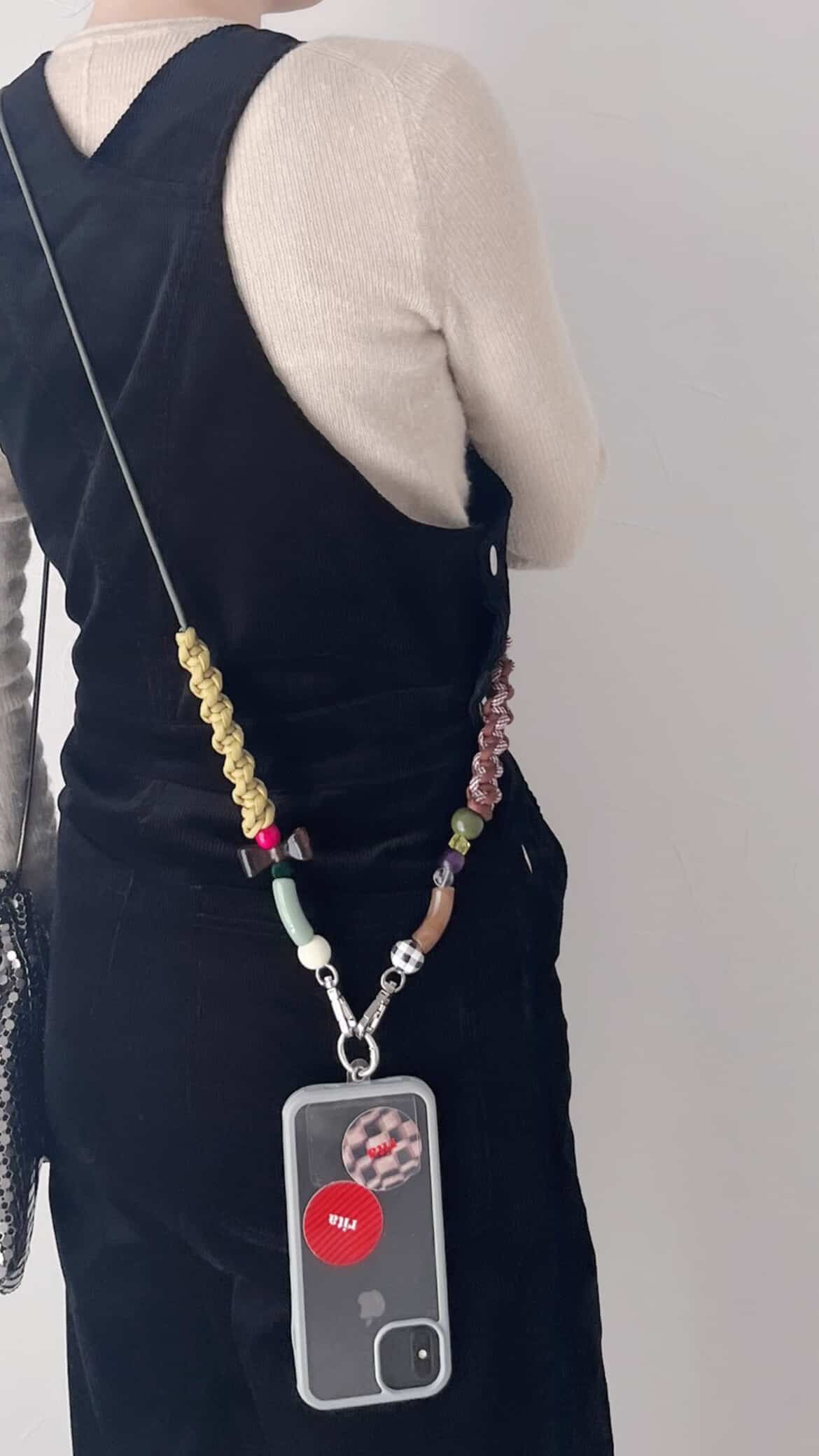長めのストラップなので、肩や首にかけておしゃれアイテムとして活躍してくれます。