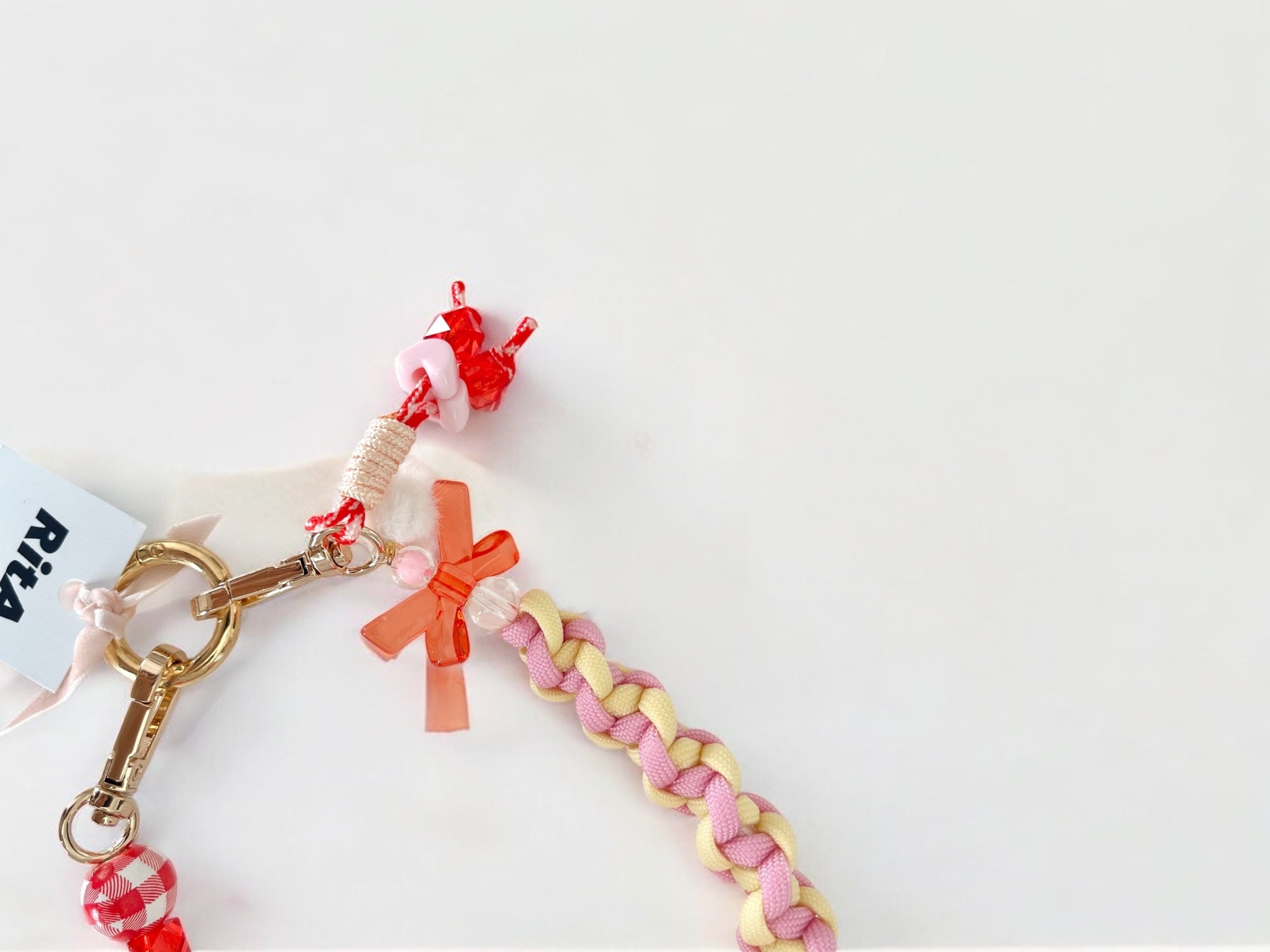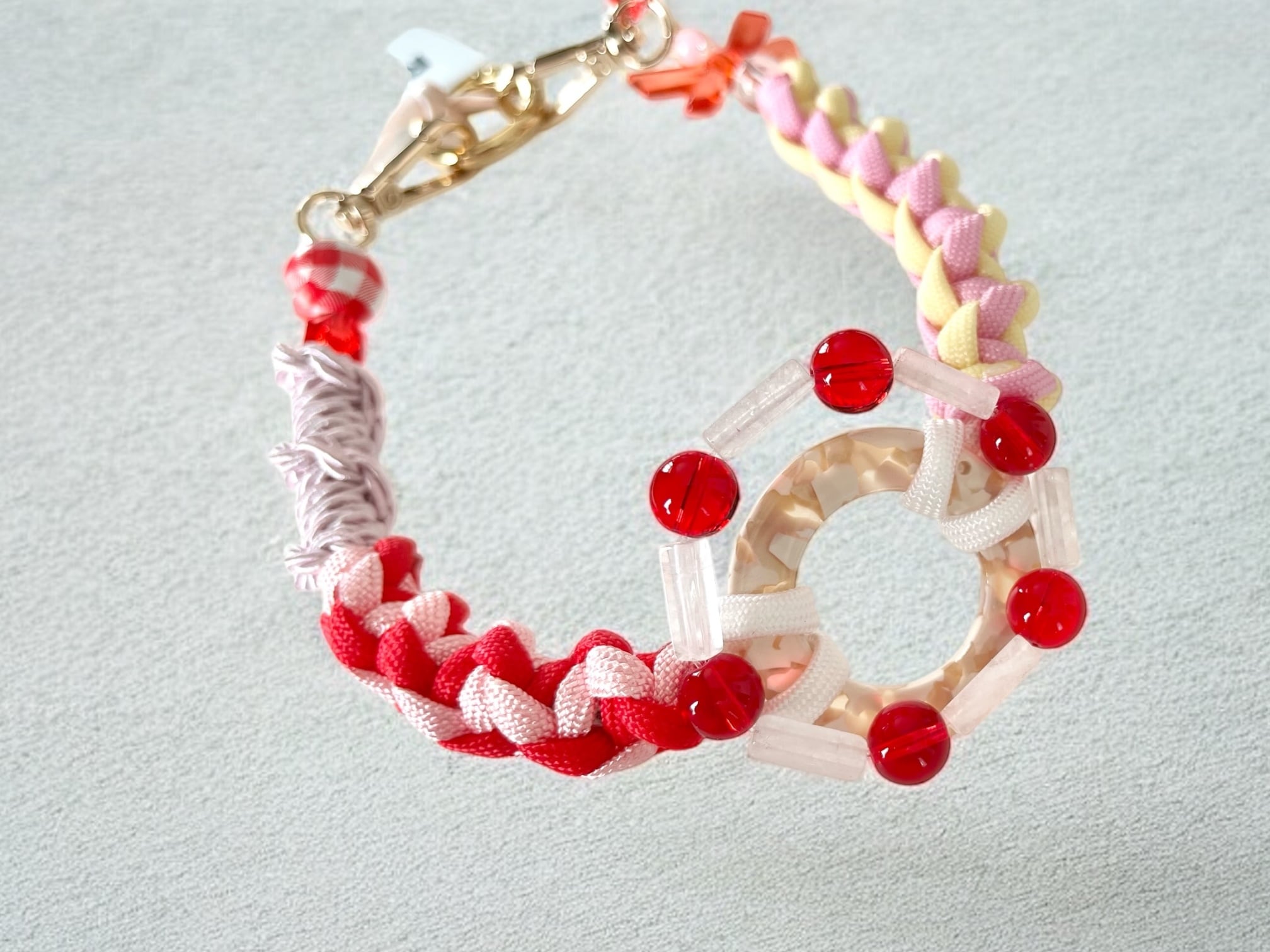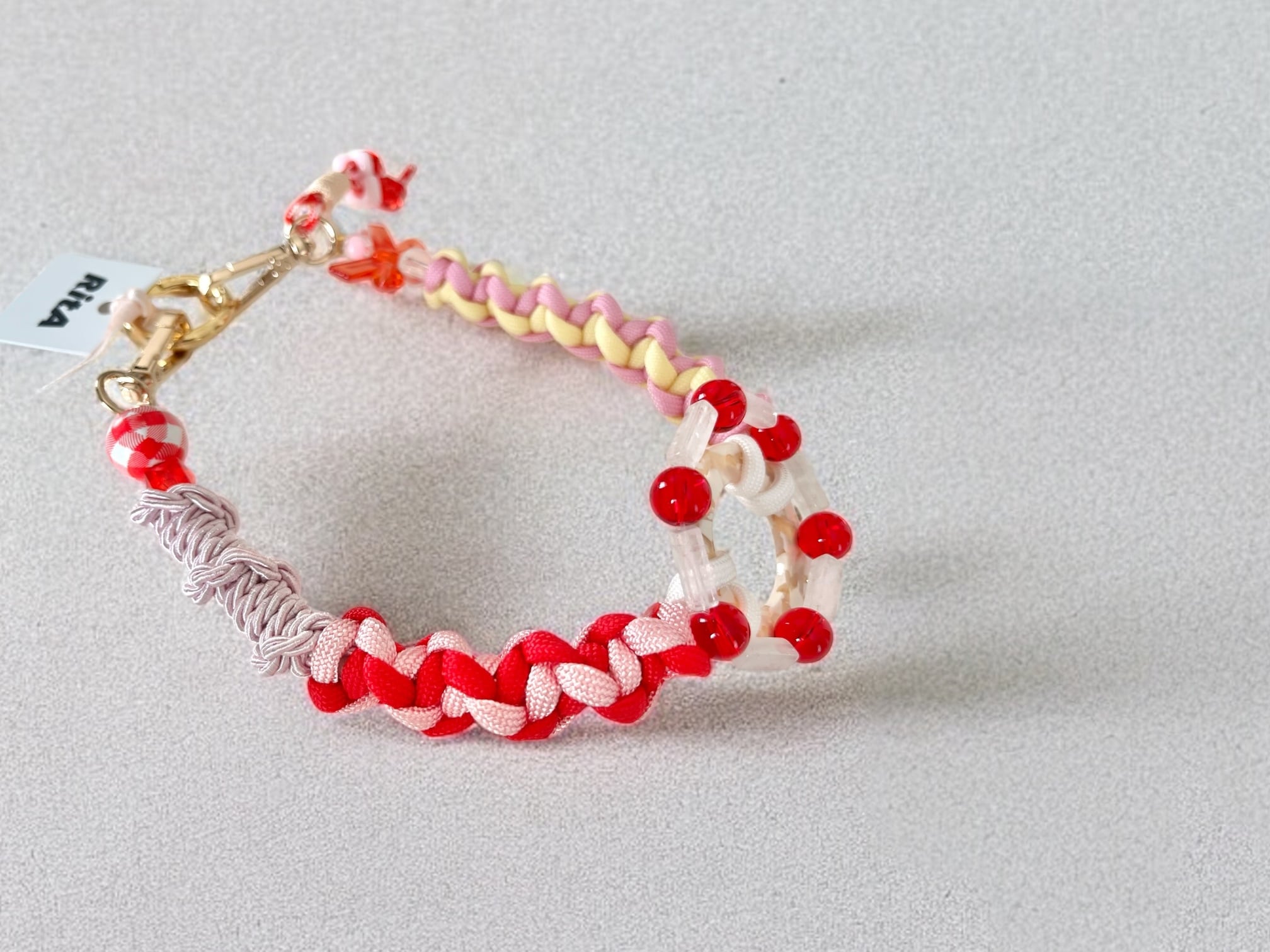 ピンク、レッド、クリームカラーの組み合わせがレトロかわいい一点