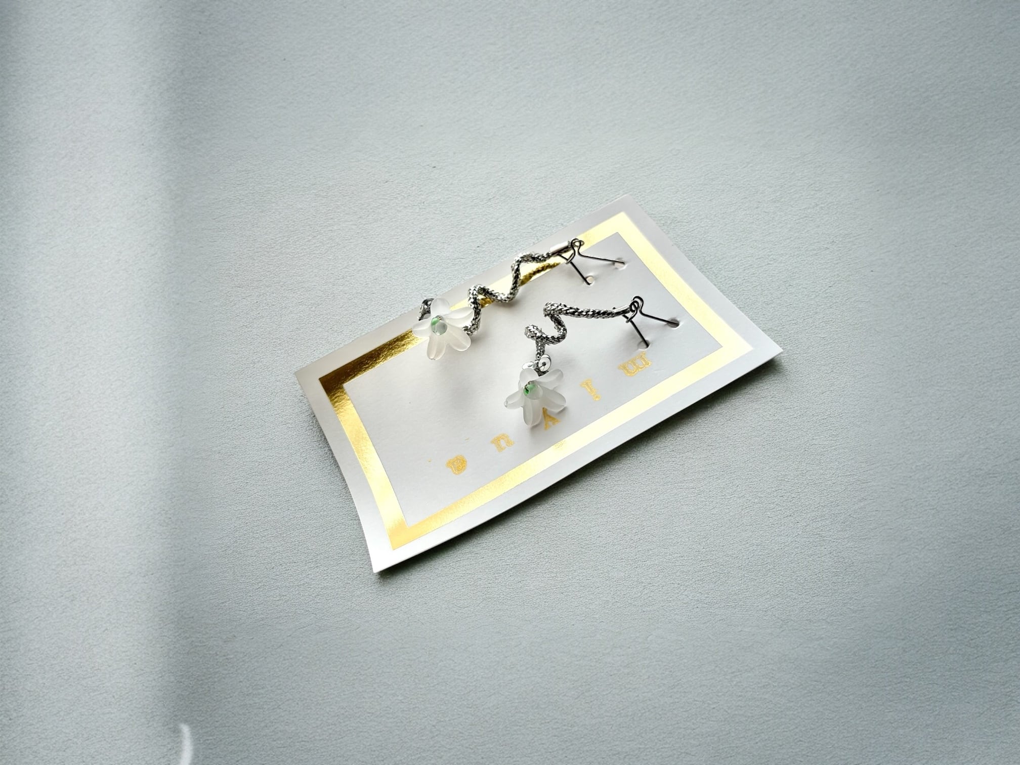 リュネビル刺繍というフランス発祥の技法や手縫いのマントゥース技法を用いてモチーフを製作。ヴィンテージビーズや現代のマテリアルを組み合わせ、1点物のアクセサリーを作っています。