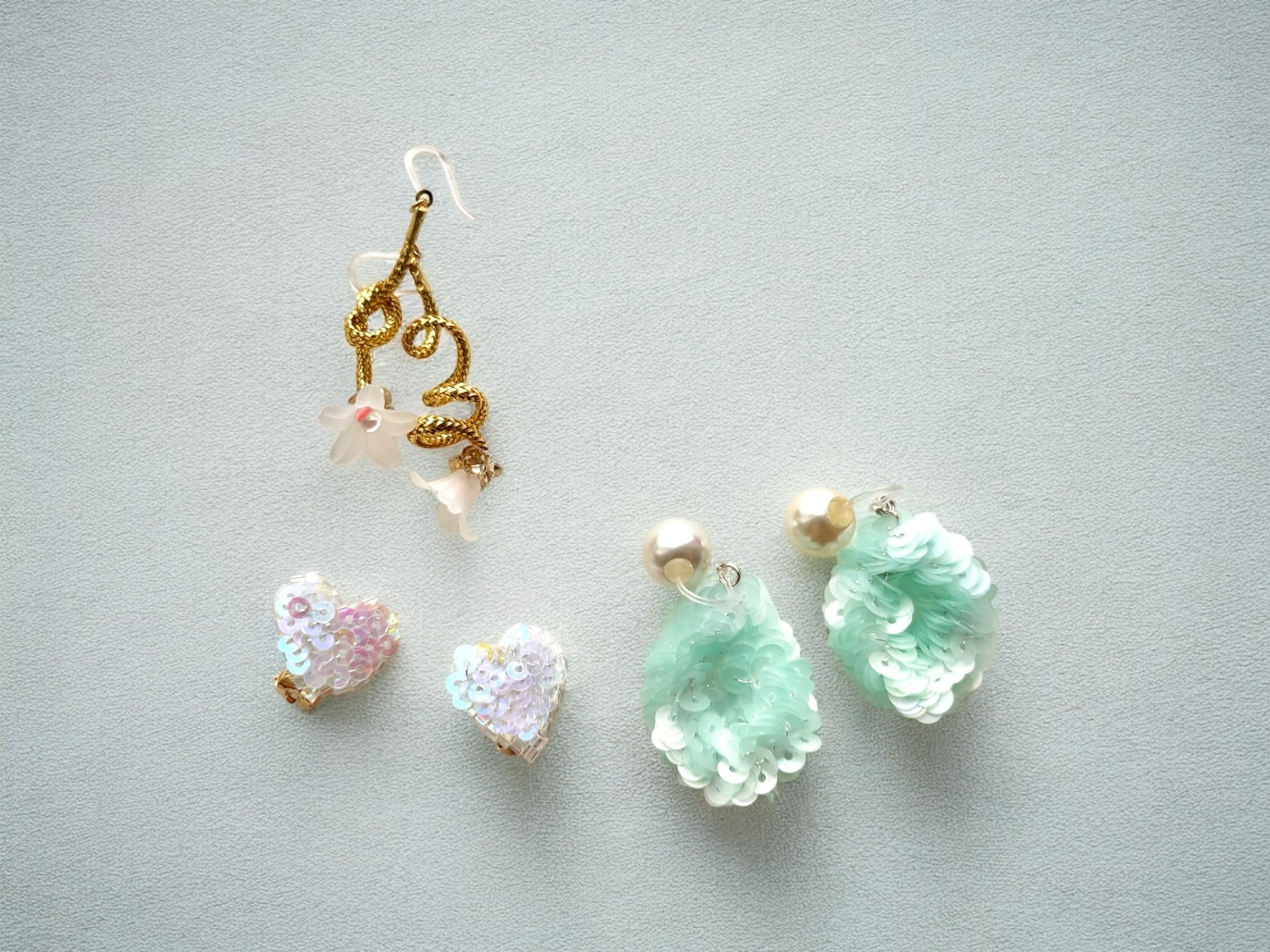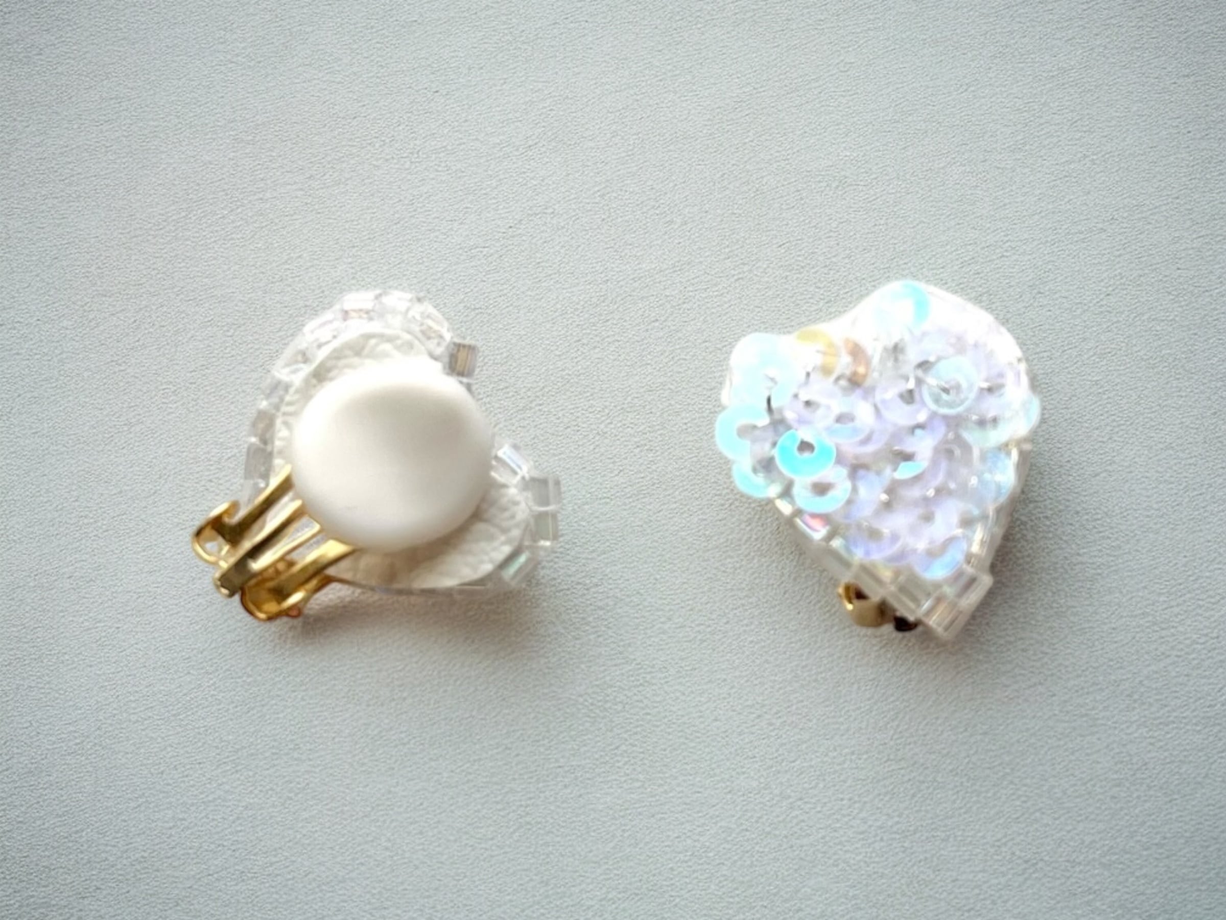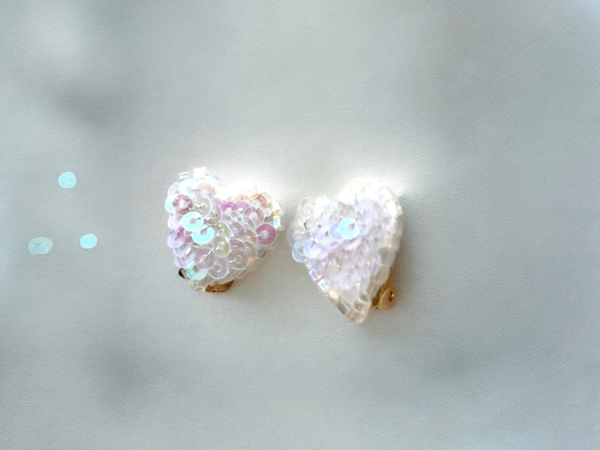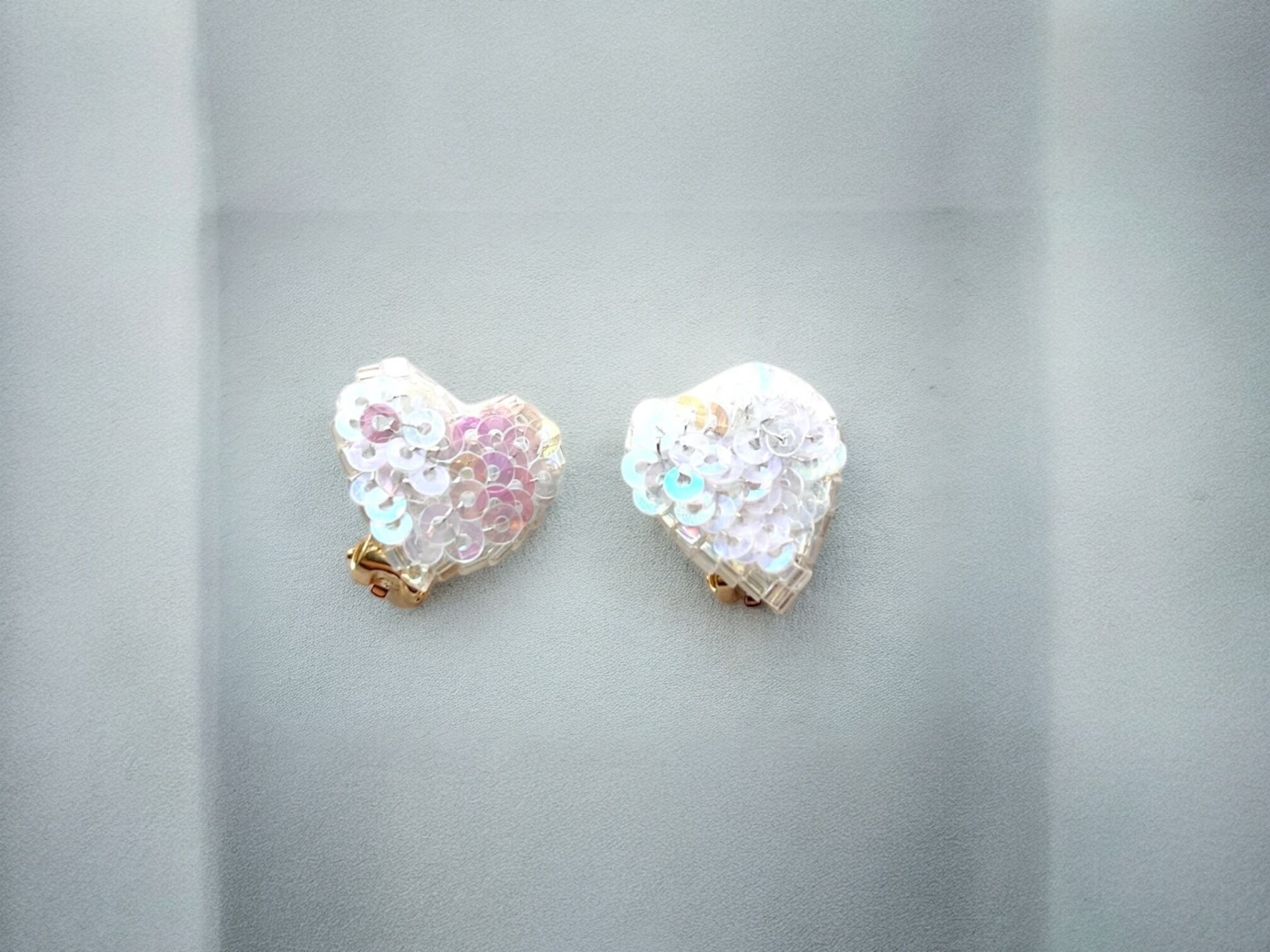 オーロラカラーのスパンコールのハートのイヤリング